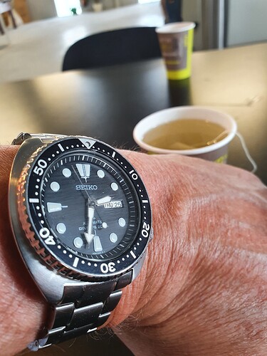 Lekker de voetjes de lucht in en een kop koffie erbij terwijl de heren m’n bolide van nieuwe zooltjes voorzien!