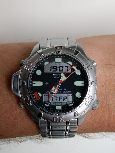 Ja, op zich prima, maar ik ben geen fan van stalen banden in het algemeen. Alhoewel de ladder bracelet wel mooi is, vind ik het horloge op leer mooier. Er is nog een racing strap in de maak, maar duurt nog even. Nu op een standaard zwarte Horween shell cordovan.