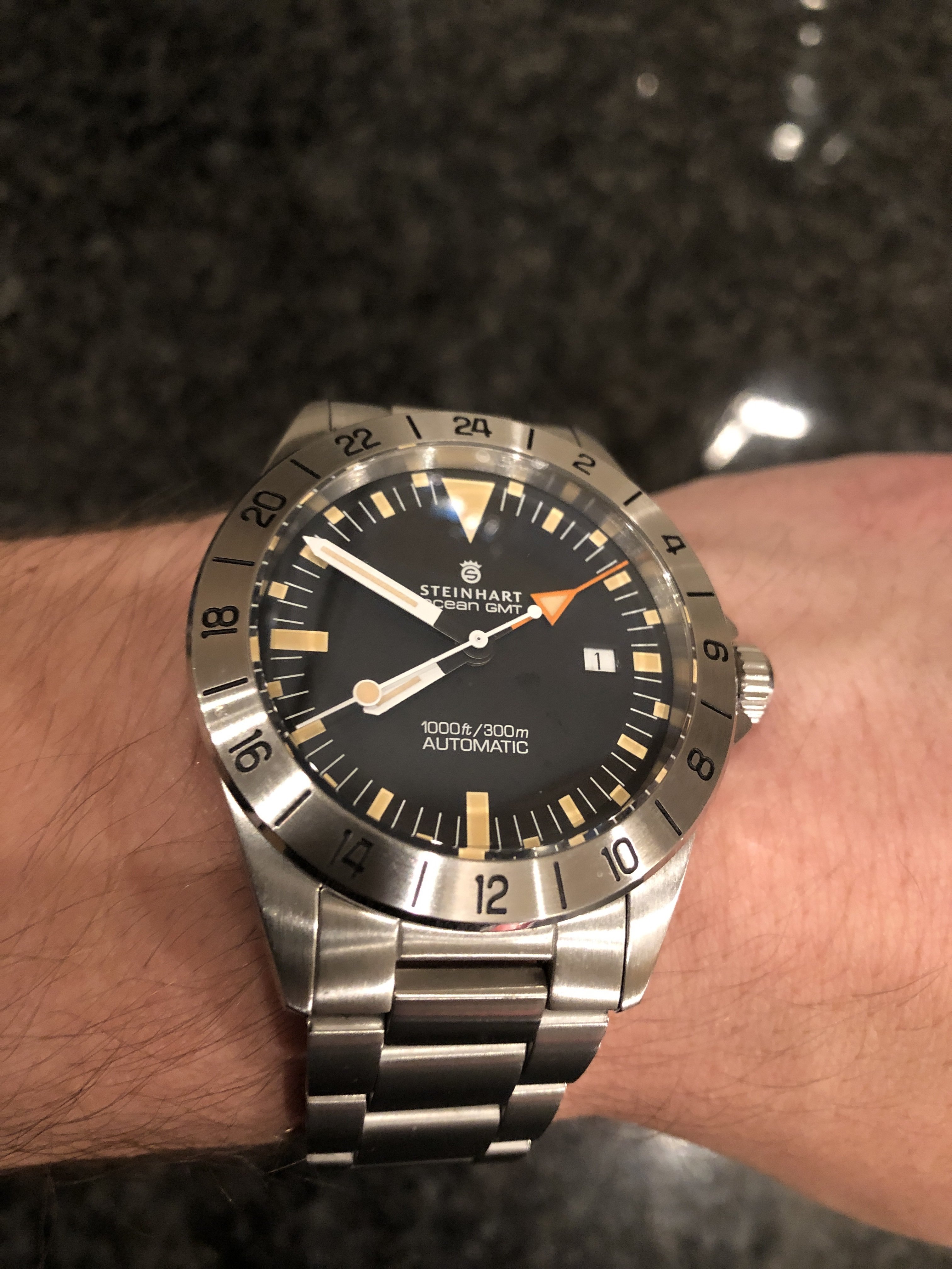 Vandaag m’n Steinhart Ocean GMT. Heerlijk horloge, maar overweeg hem toch te flipperen. Nu nog gewoon lekker om de pols.
