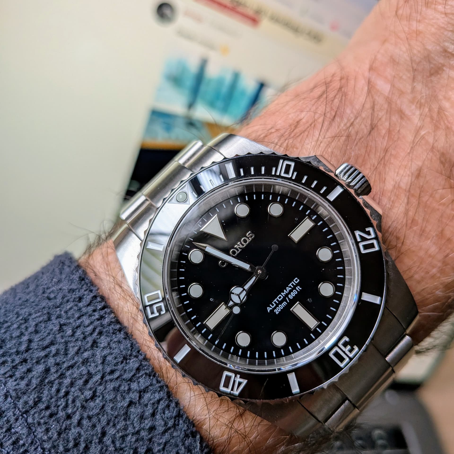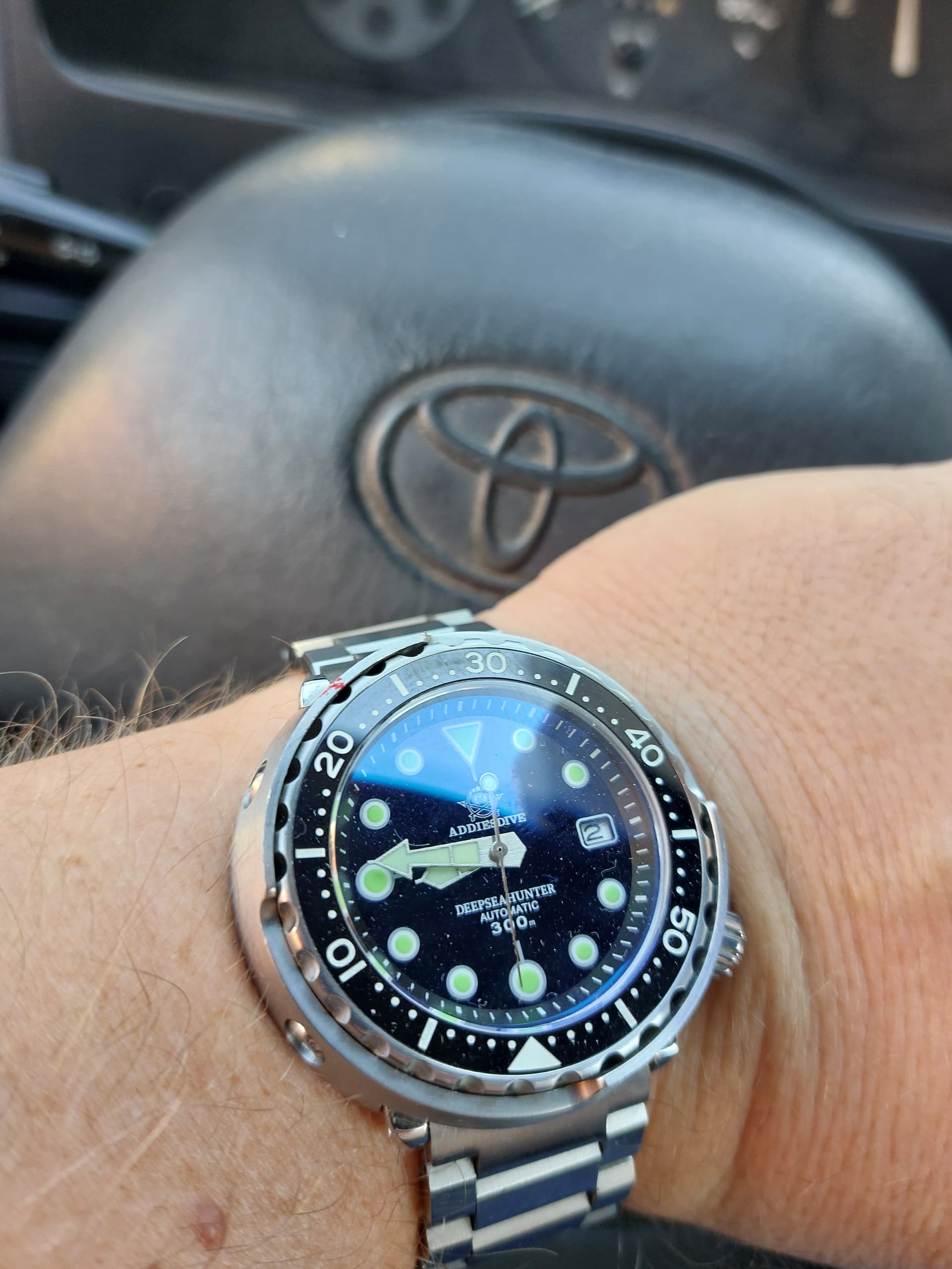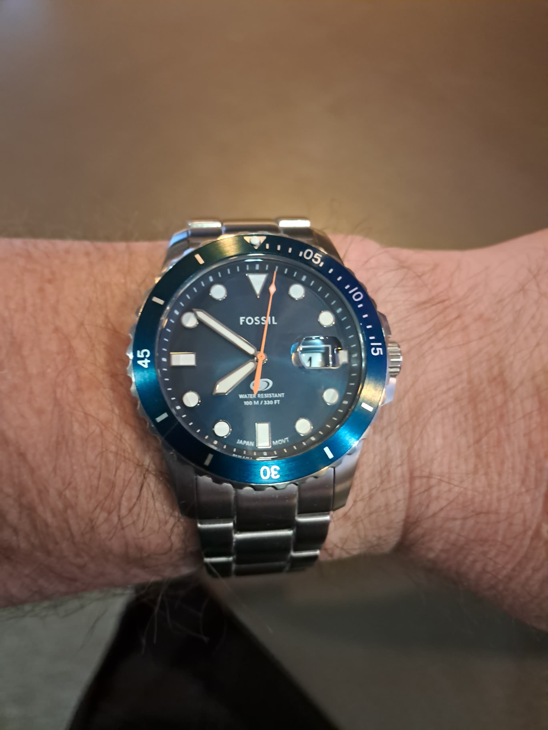 De laatste aanwinst, hier via HF gekocht (thnx Bob!), een Fossil voor op het werk. Moet nogal eens onder auto’s kijken etc, dus zonde als dan een van de Seiko’s over de grond schaaft. En Fossil’s hebben zich in t verleden al vaker bewezen als heerlijk horloge voor op het werk.