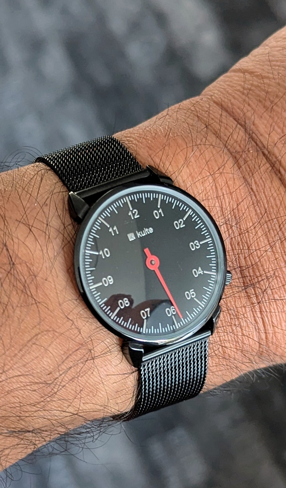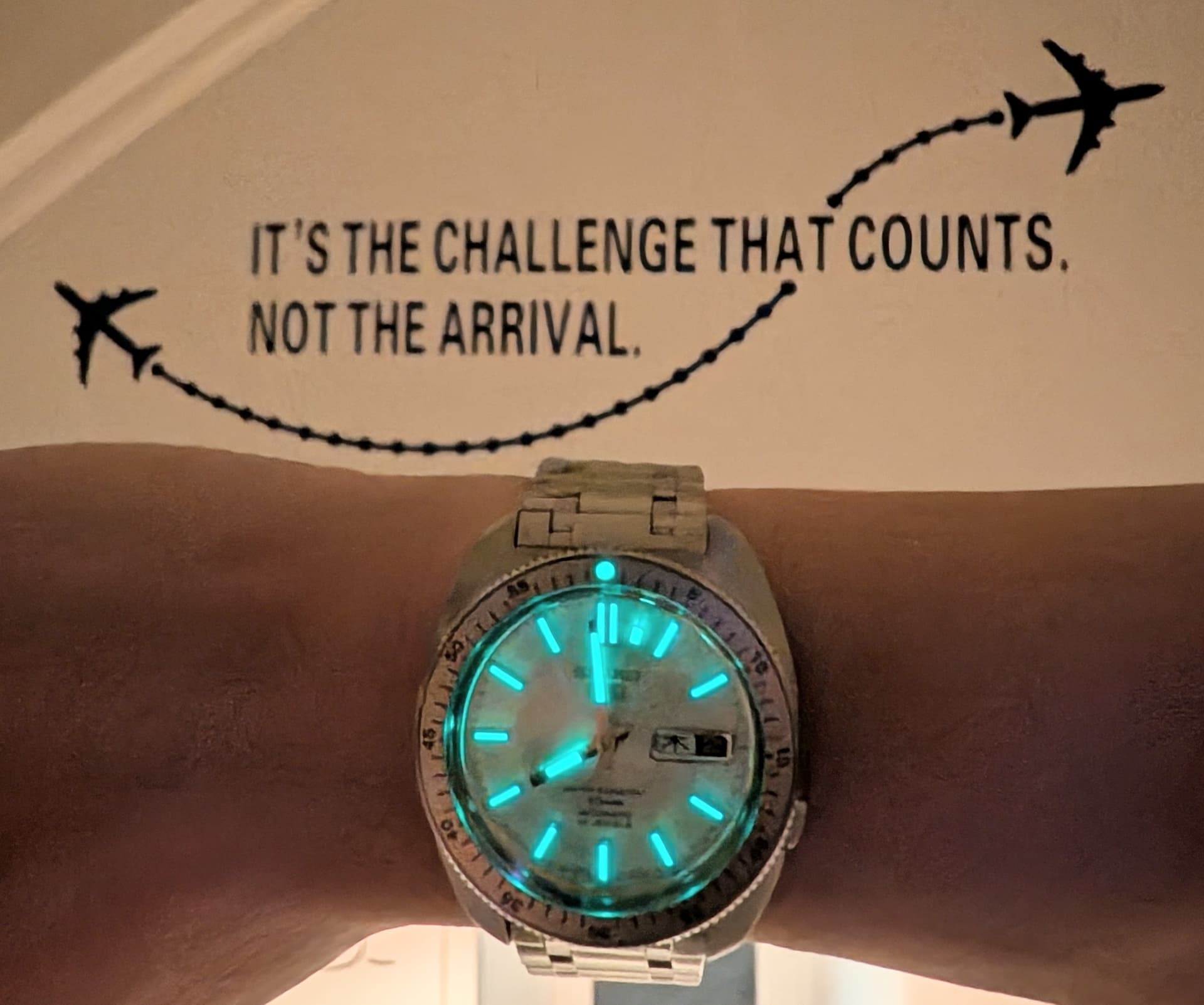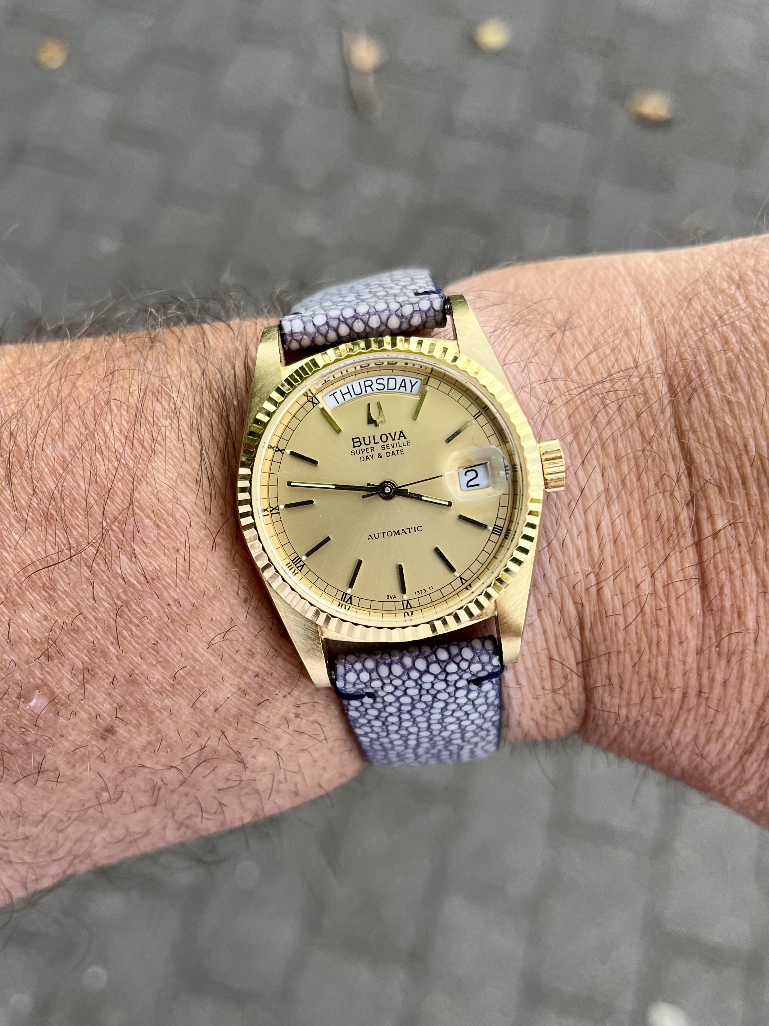 Plakmerk, check, deukje in de wijzerplaat, check, stof onder het glas, check…maar op één of andere manier erg charmant (wat mij betreft).