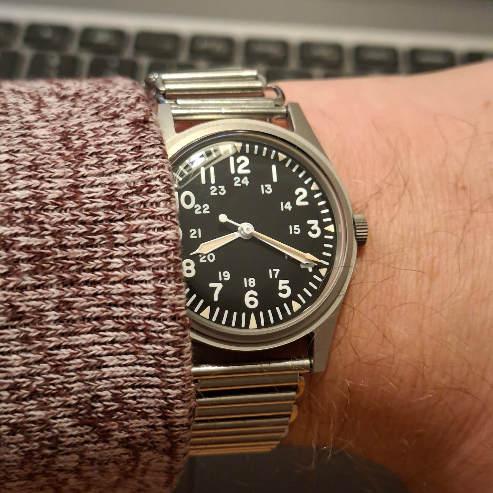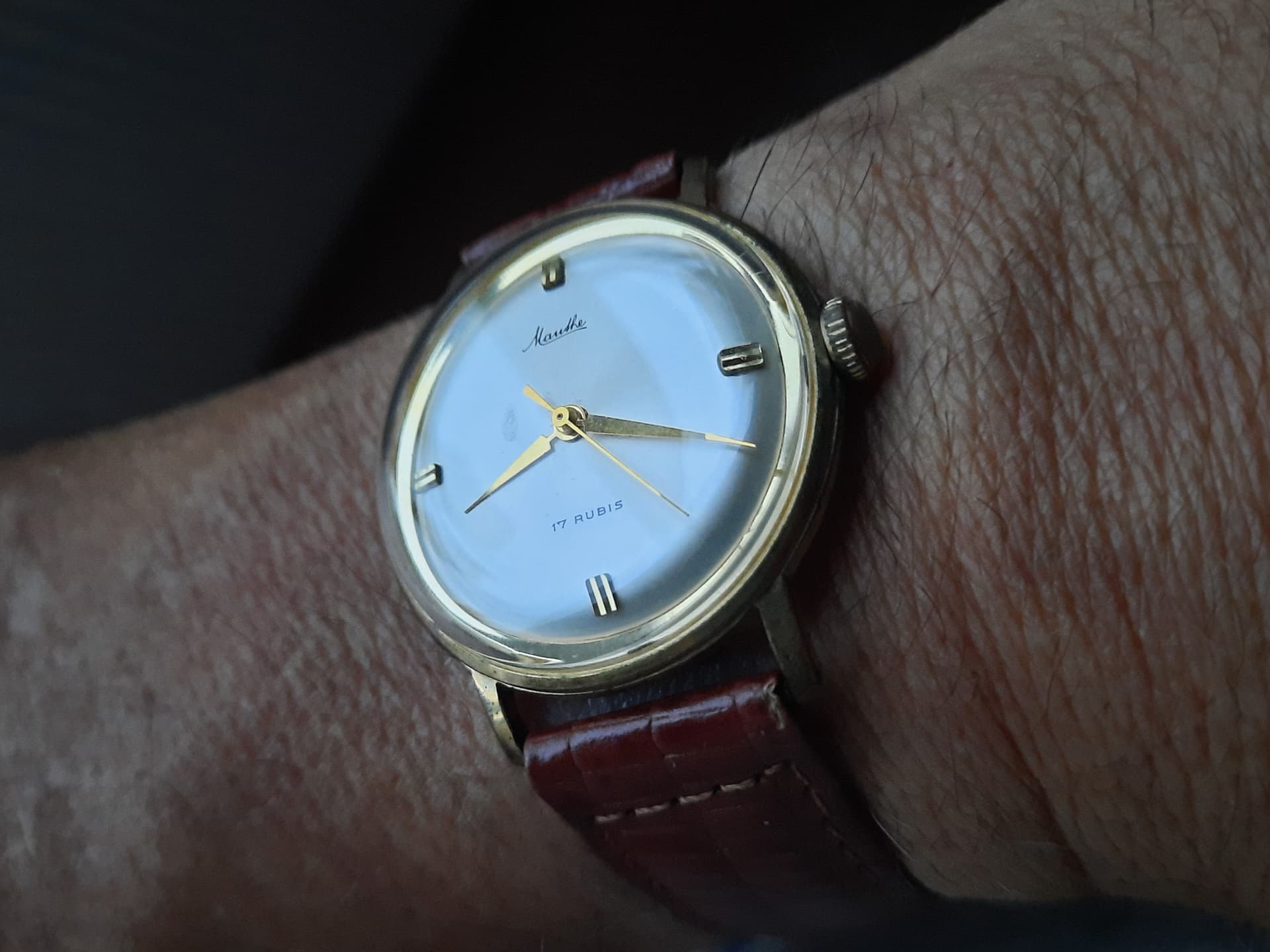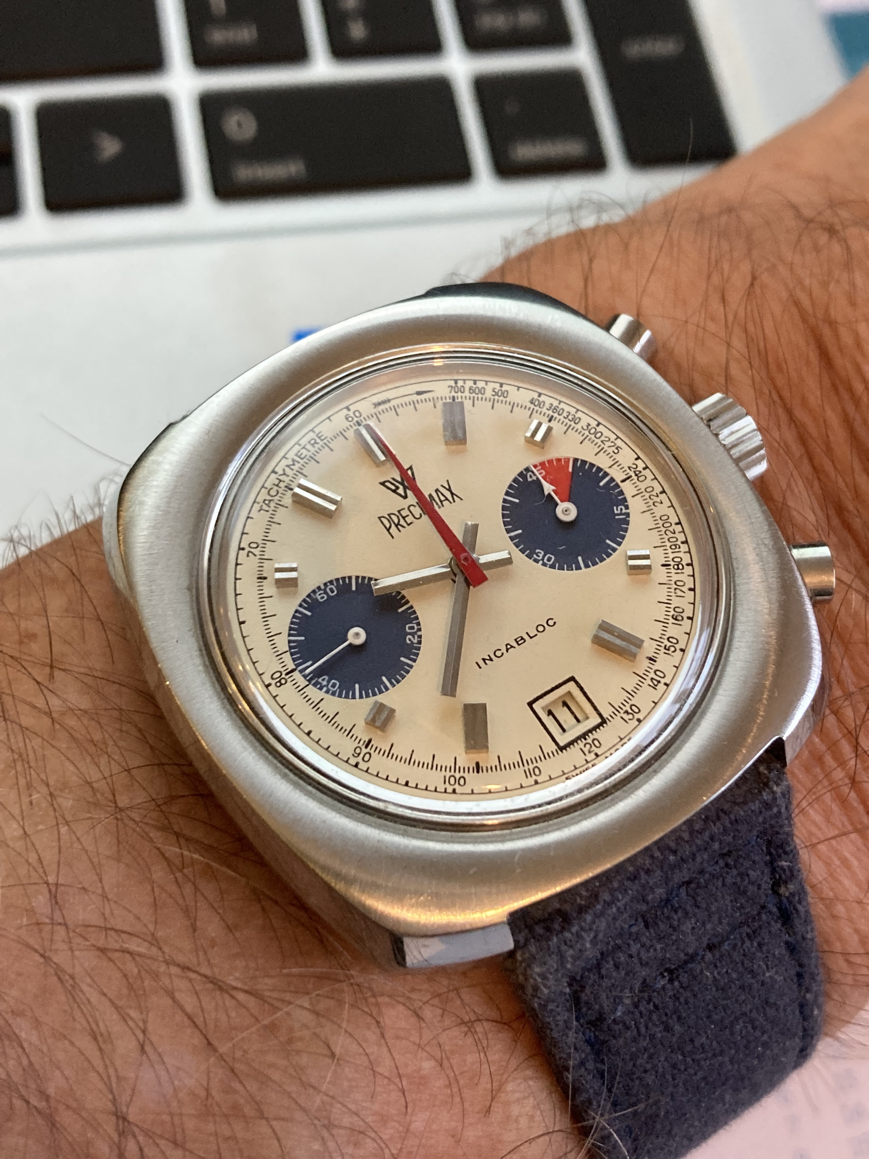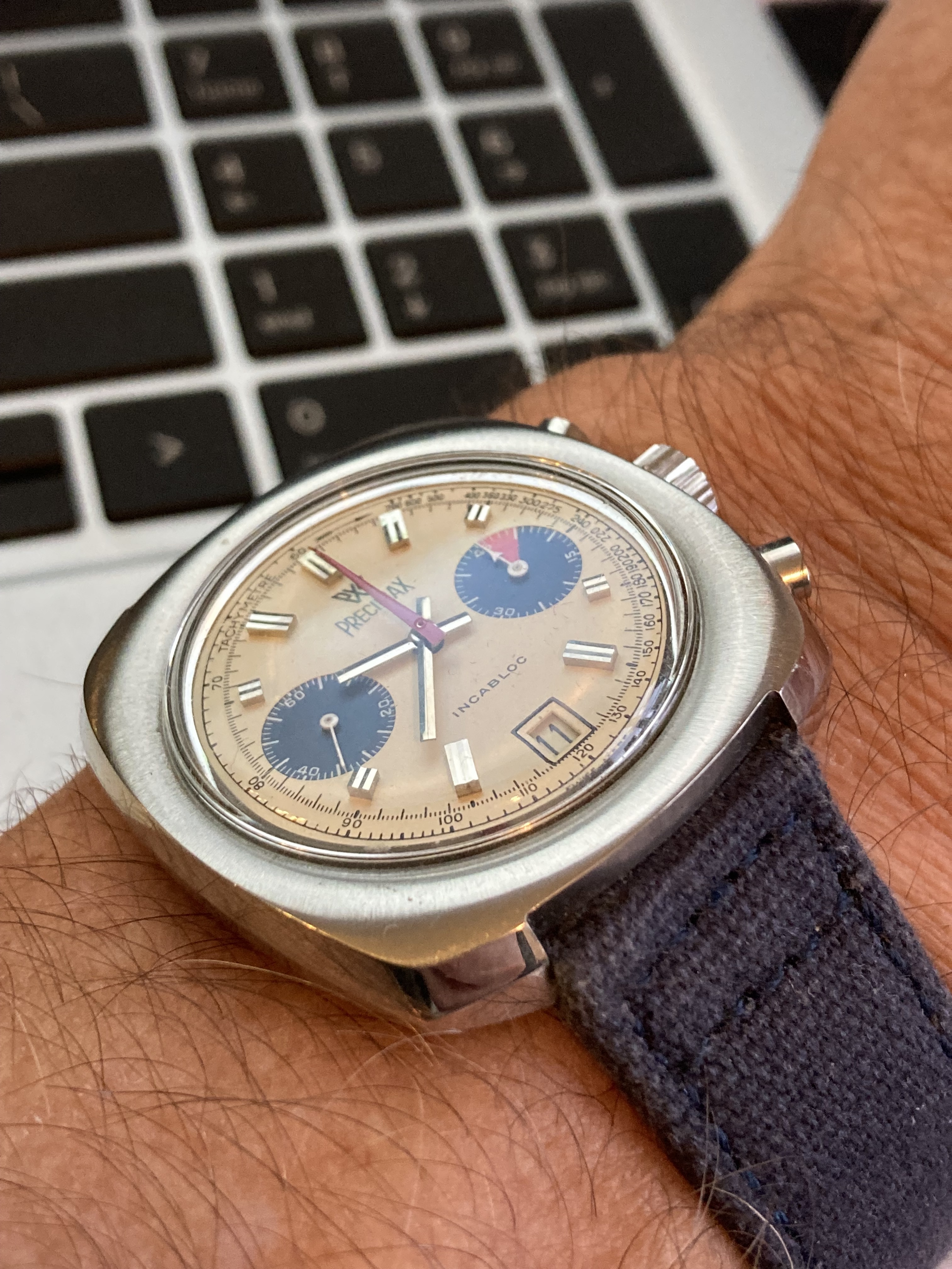 Vandaag heb ik de Precimax om: een leuke old timer met een mooi binnenwerkje van Valjoux.