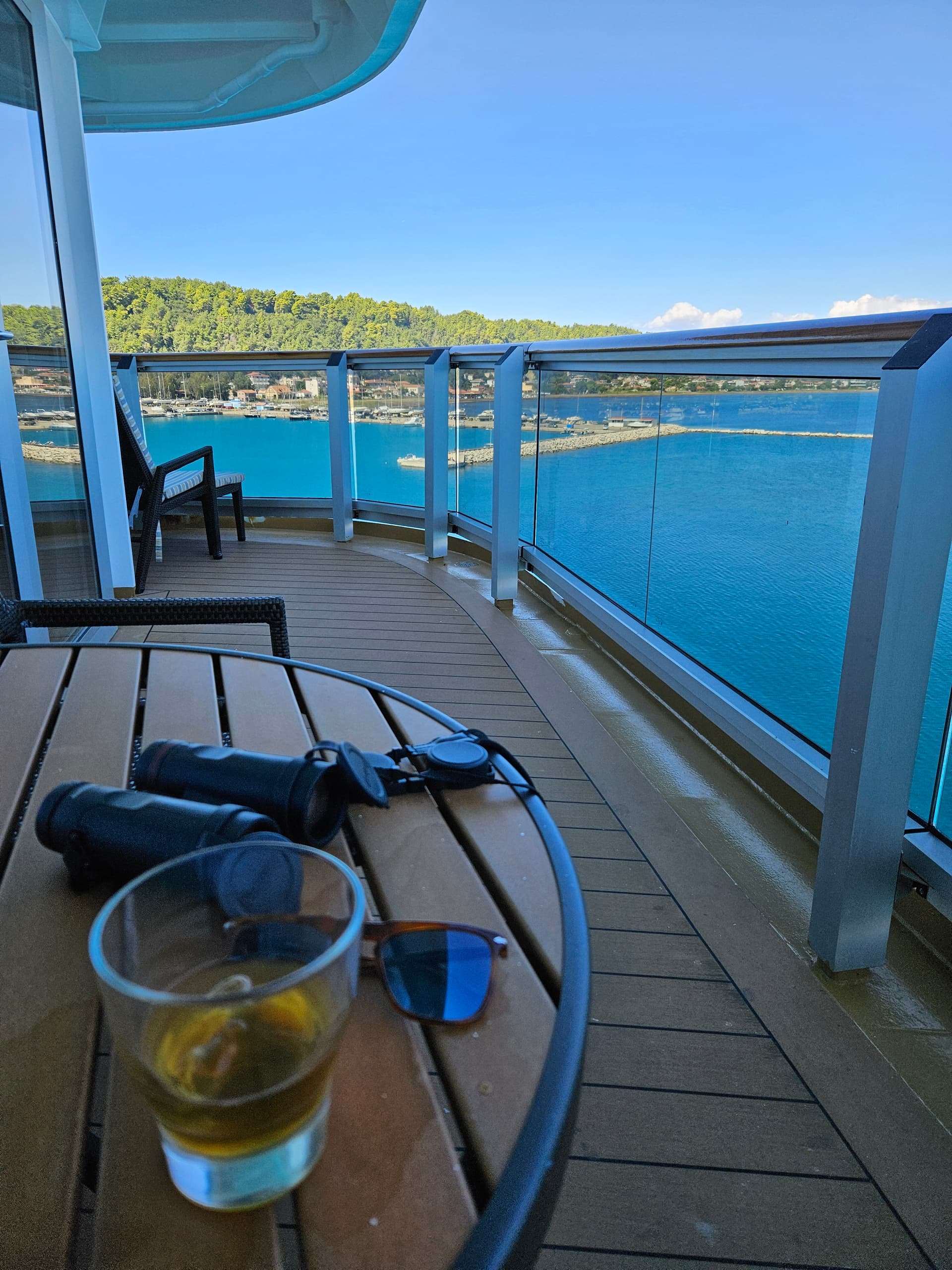 Met een Old Fashioned in de hand genieten van zon en uitzicht, op het balcon van onze suite. Cheers!