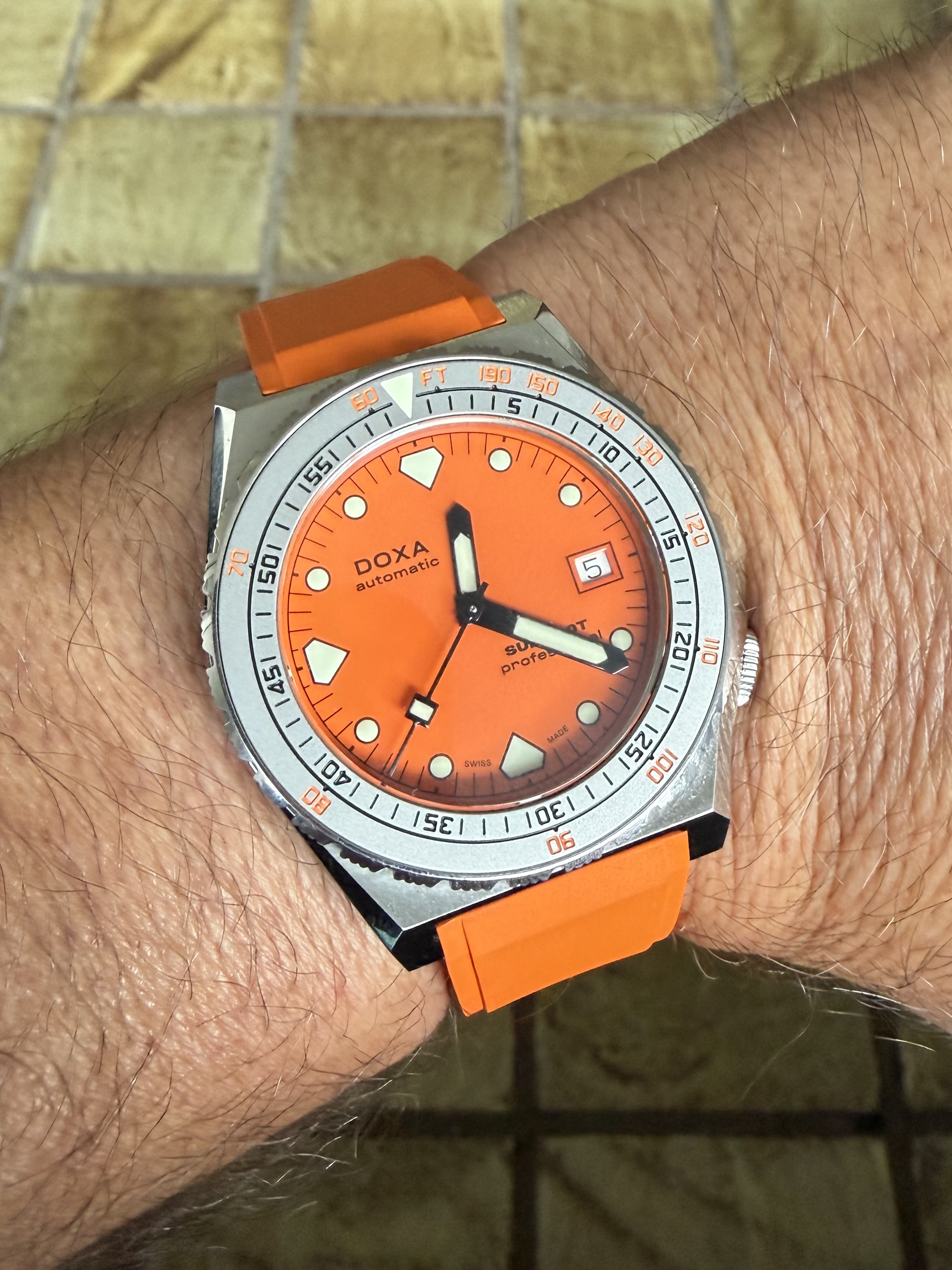 Wist niet dat Doxa einzeigers maakte. Wat onhandig als je aan het duiken bent.