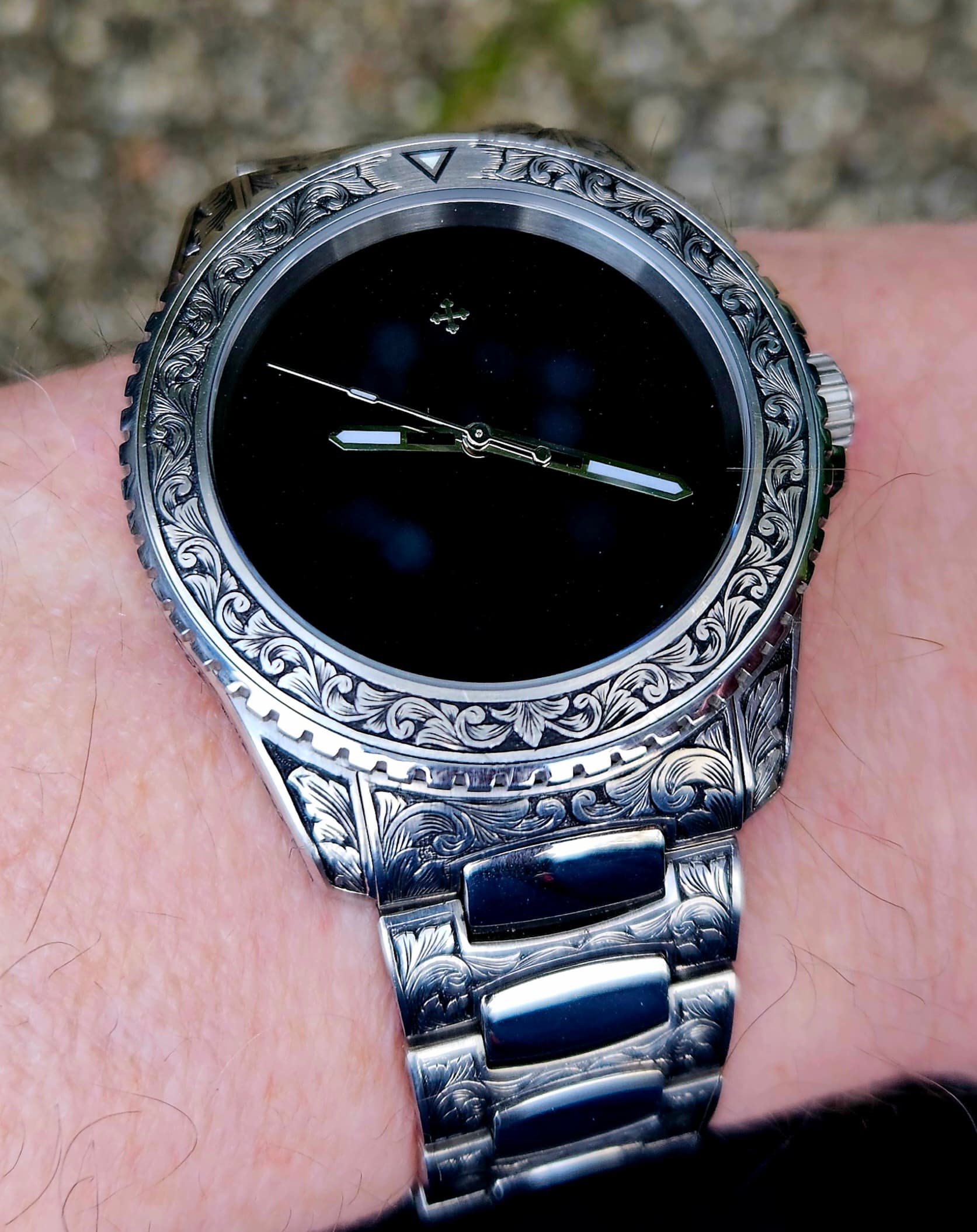 In Polen laten graveren. Vond het horloge nogal kaal zo uit de doos