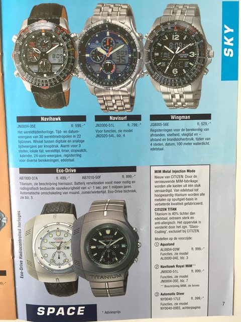 Cool (nog steeds), voor deze titanium Space versie met geïntegreerde bracelet gold destijds de pittige prijs van bijna fl. 900 (guldens):