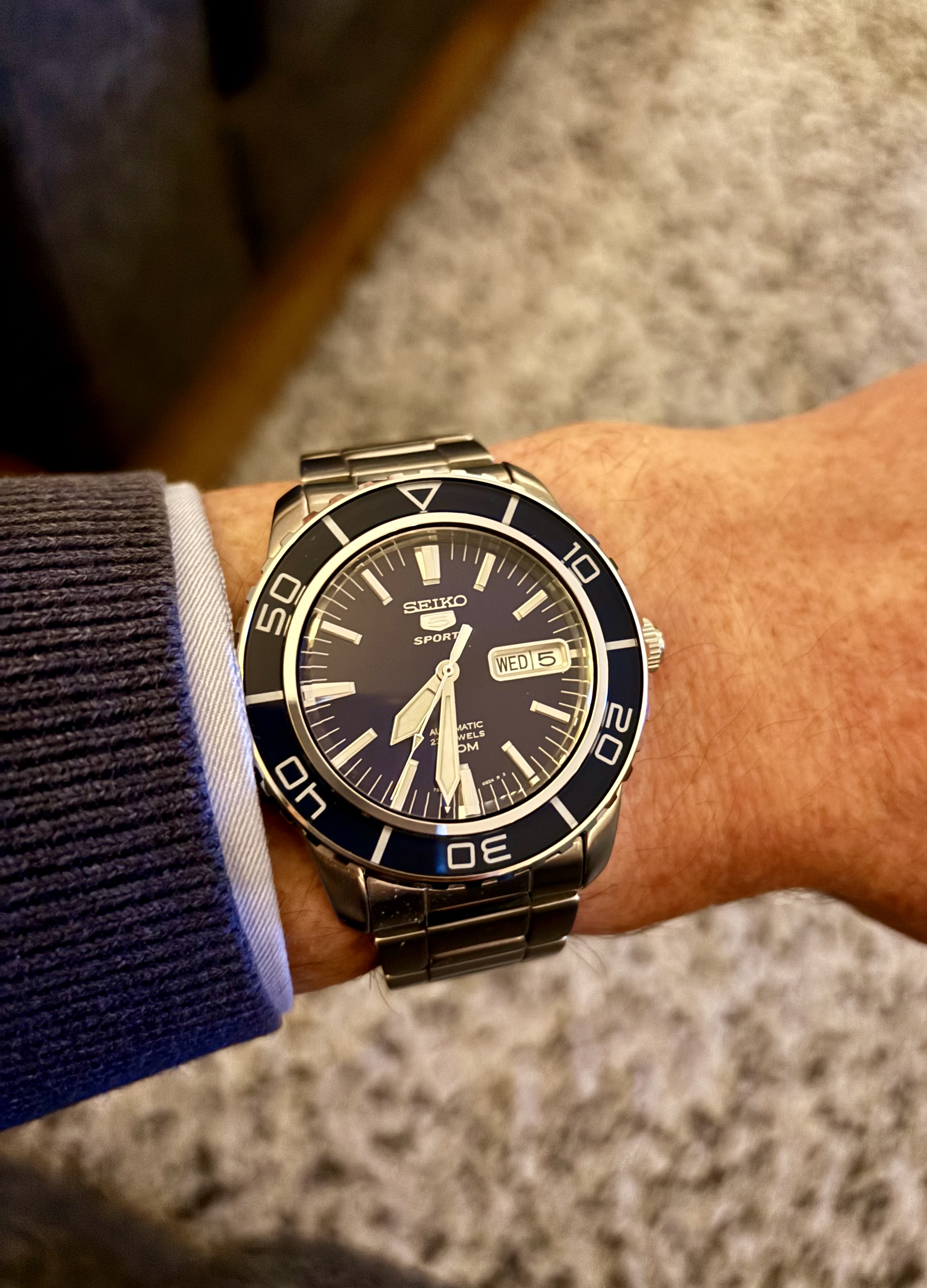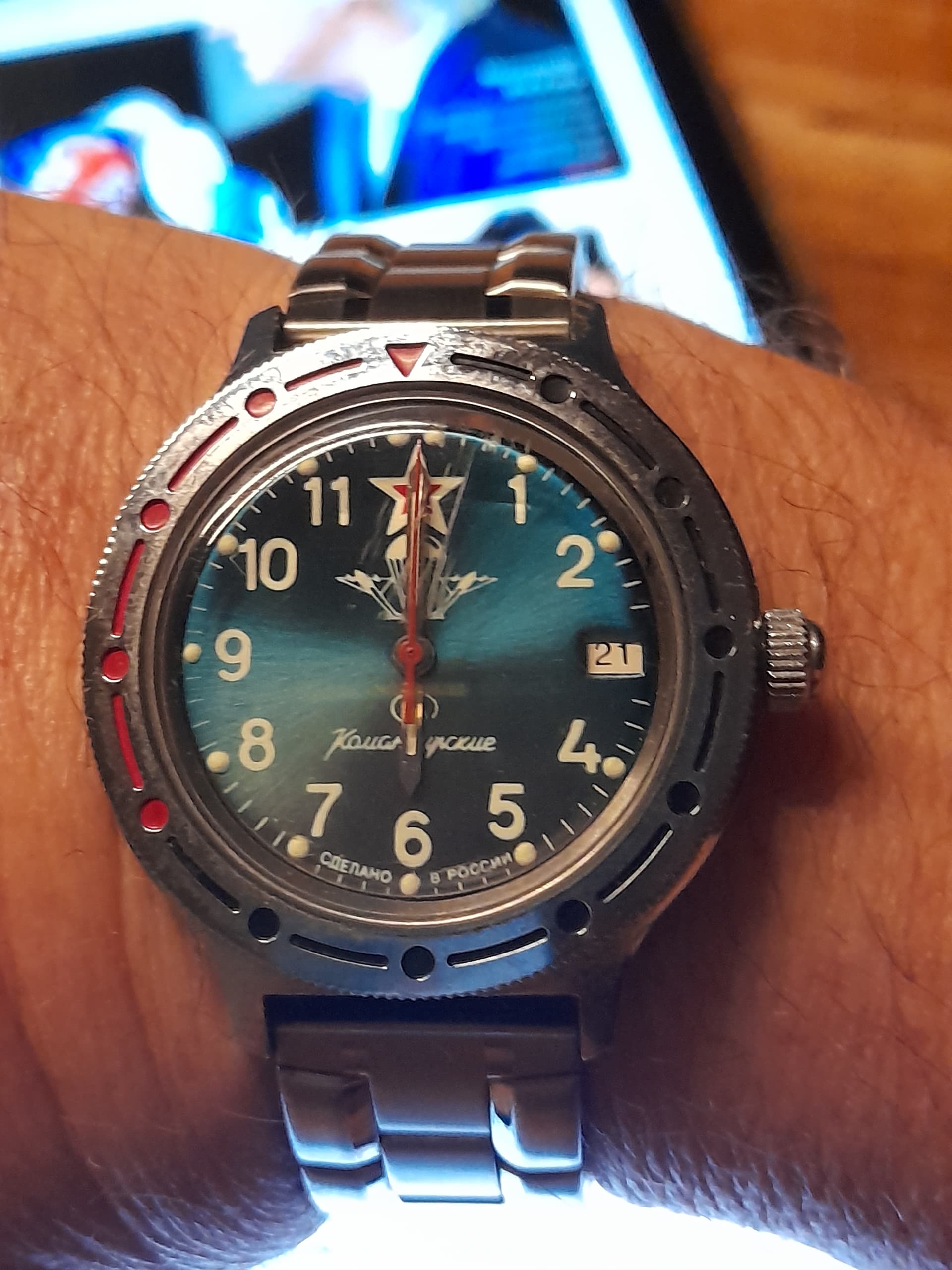 Opgeknapt. Een eerdere hobbyist (?) had er een niet passend glas in gezet met superlijm. Lichte corrosie is daardoor ontstaan tussen de indices op 4 en 5 uur. Nu weer een goed glas met nieuwe pakkingsring😊een leuke, nog mooi strakke 7S26A met zichtbodem.