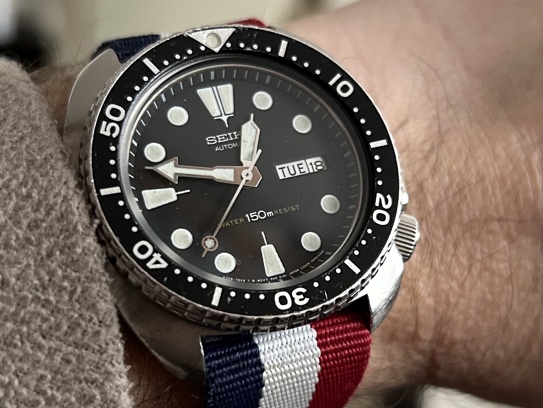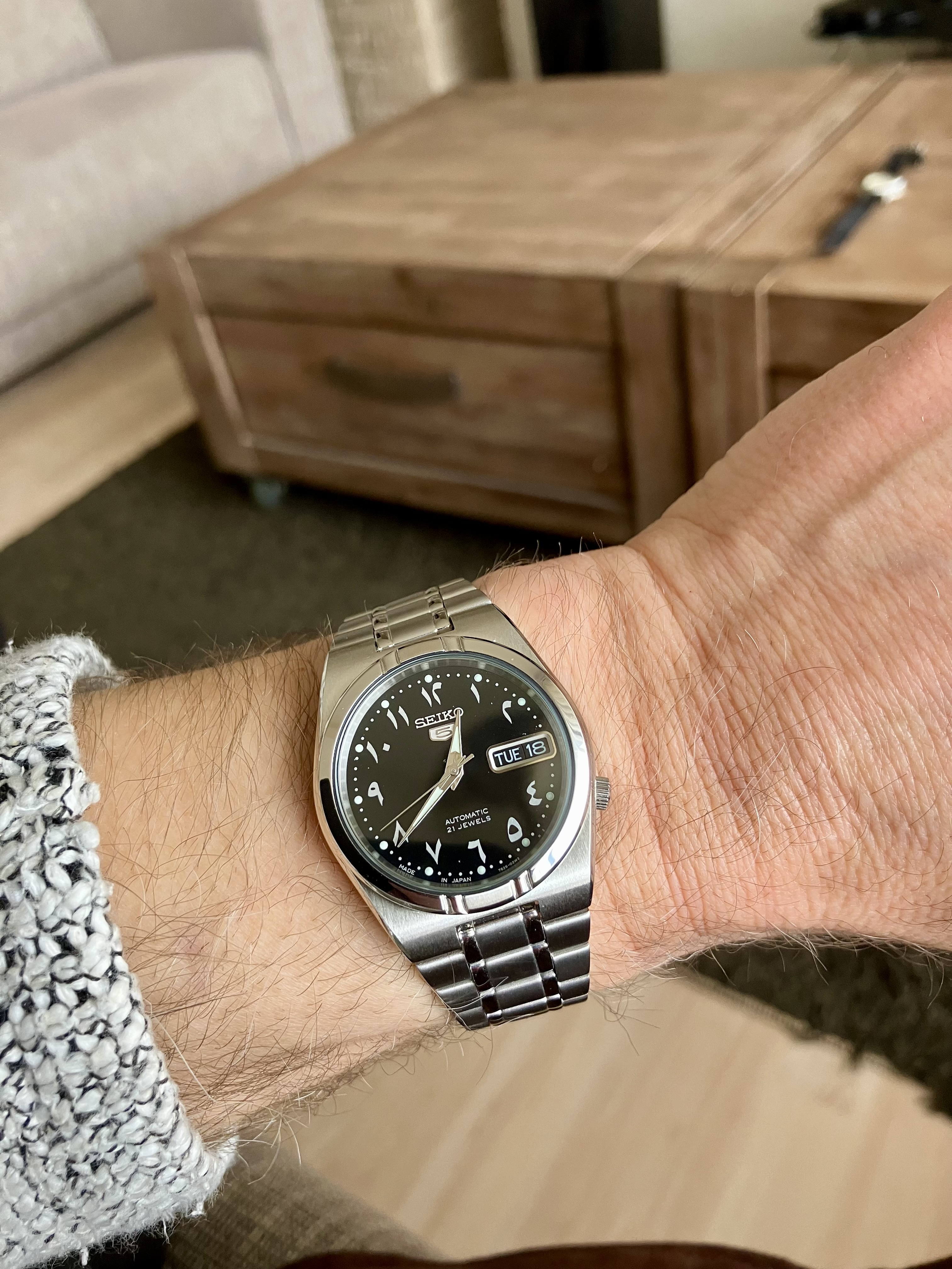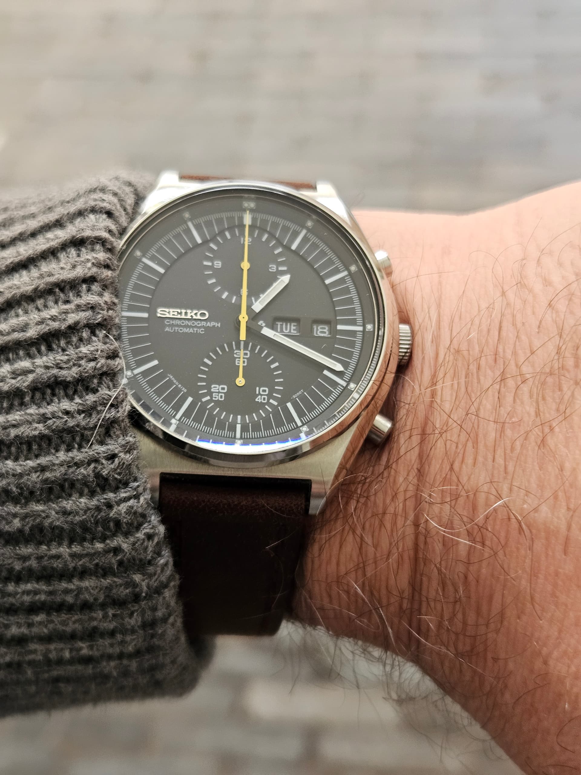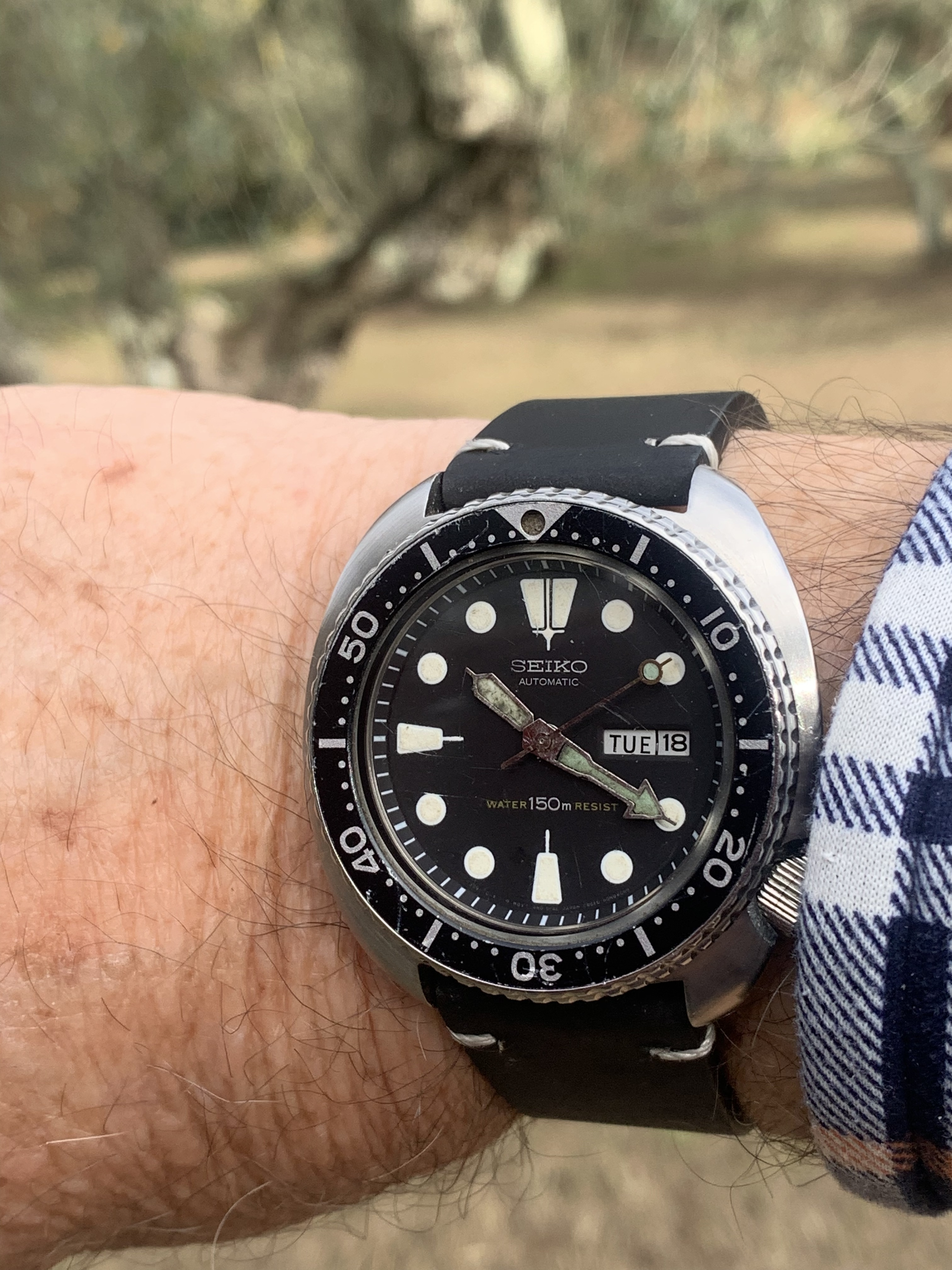 Seiko 6309-7049. Budget vrij gemaakt voor een diepte-investering in een zwart leren(?) bandje bij Ome Ali. Totaal €0,88 incl verzending. Dat dan weer wel. Het mag wat kosten, zo’n hobby.