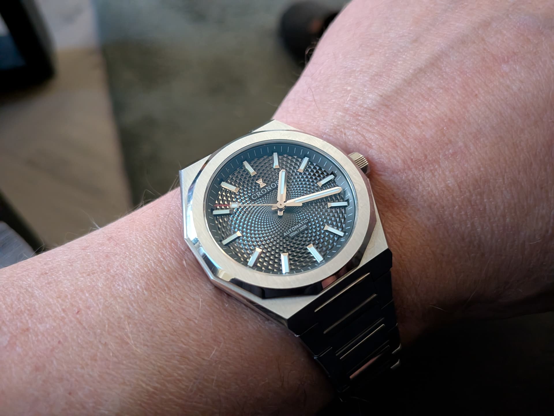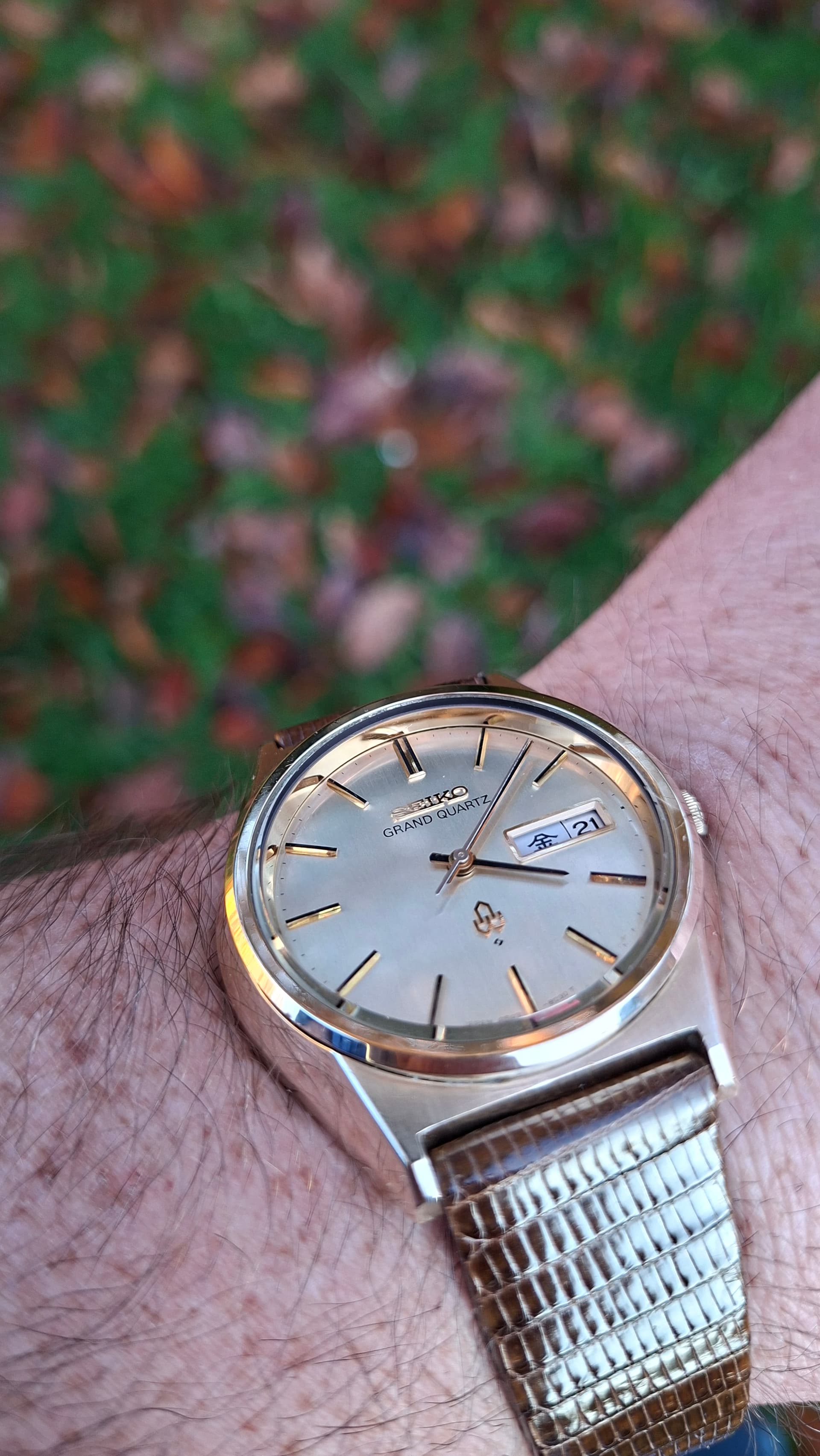 50 jaar oud golden boy, erg mooie Grand Quartz 4843-8041 met Saphire crystal en anti reflectie coating op het glas.