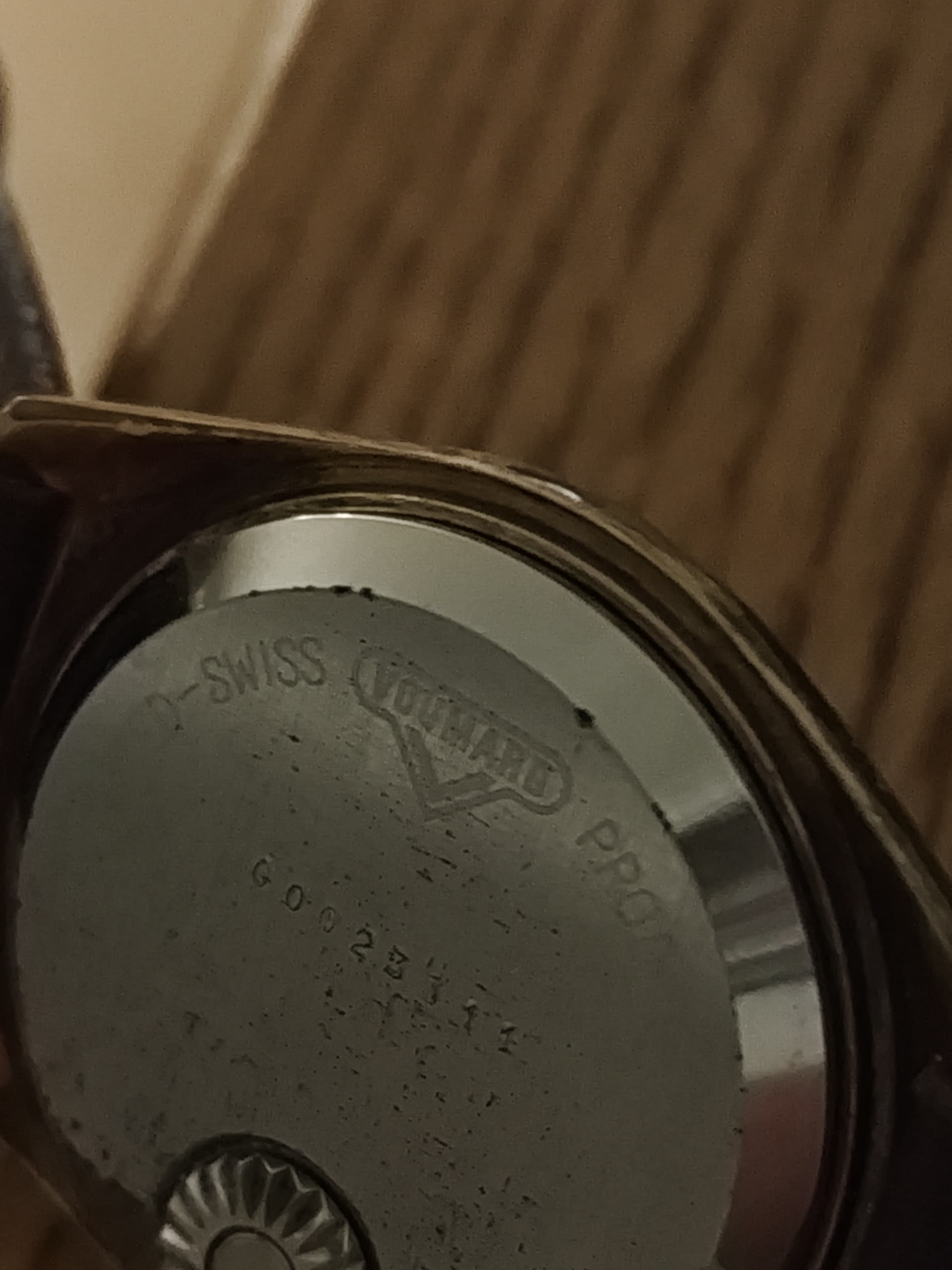 Dit type horloge is zo nu en dan al eens voorbijgekomen op Hf, ontdekte ik. Het is een backwinder, dus met de kroon achterop. Het kaliber is een Voumard 2000 en zit in de kast geklikt, met glas en deksel in één.