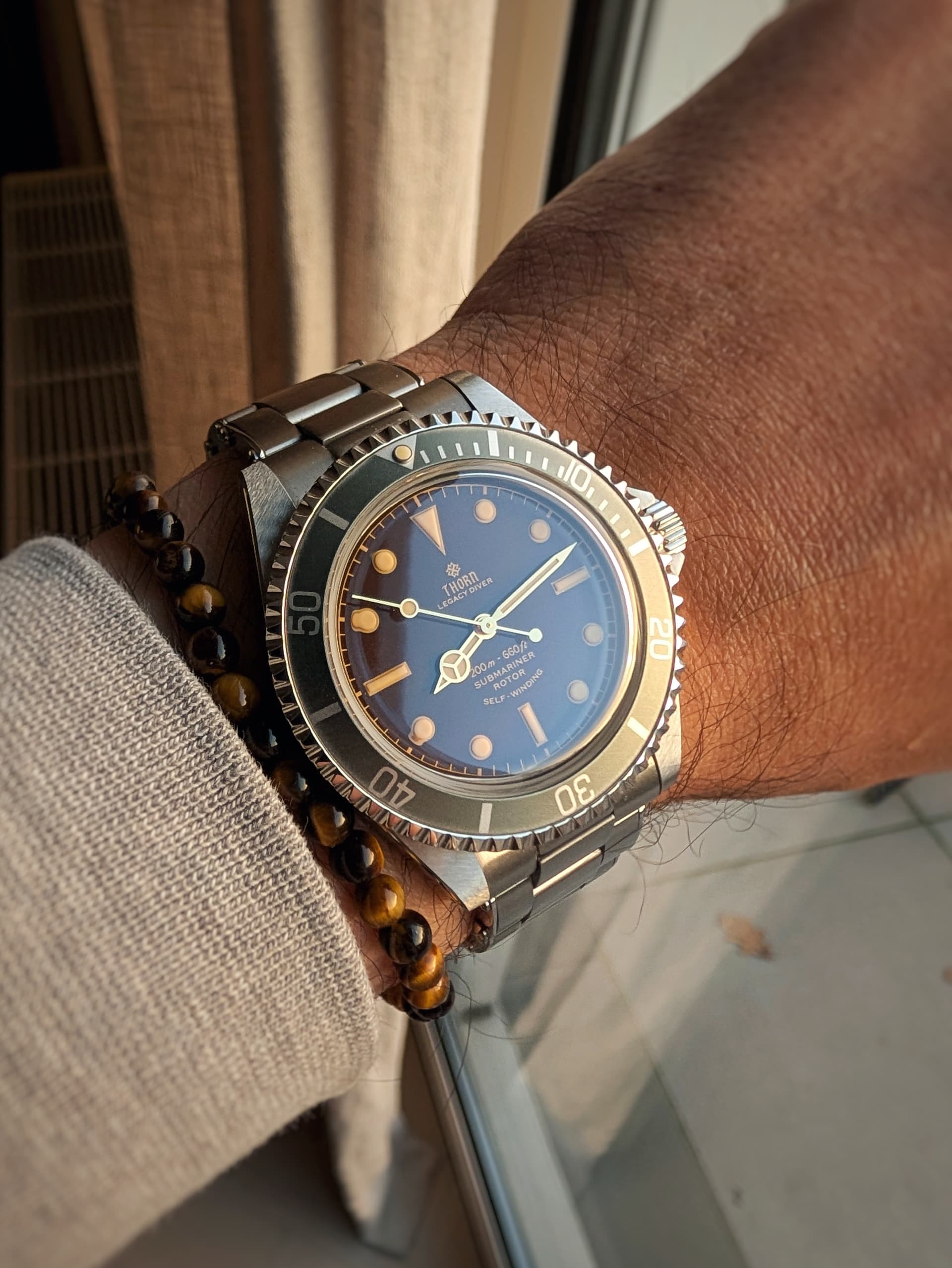 Opwinden en tijd instellen gaat heel intuïtief. Het uurwerk tikt met 19.800 Bph en heeft een gangreserve van 54 uur. Eén van de voordelen is dat je het horloge zowel links als rechts kunt dragen, maar ook dat je makkelijk de wijzerplaat onder een hoek kunt plaatsen, bijvoorbeeld als driver’s watch. Dankzij de sector dial plaats je hem makkelijk weer recht.