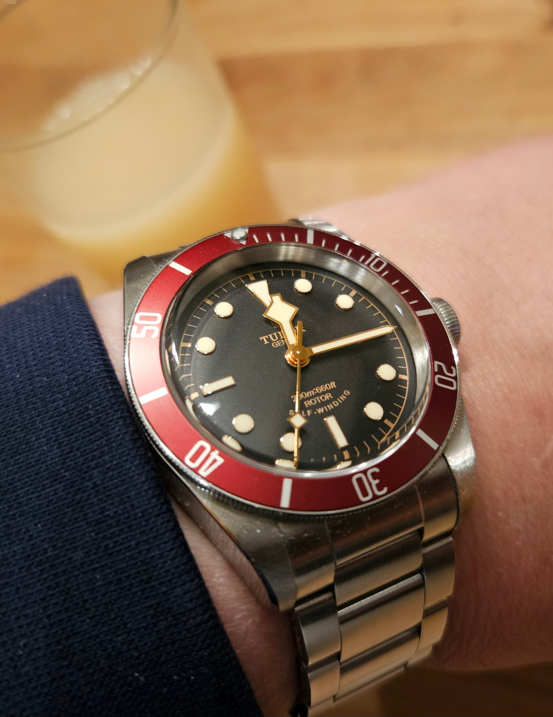 Vandaag een van mijn favorieten aan de pols gehad. De eerste versie van de Tudor Black Bay Heritage; met de roos op de dial en het ETA uurwerk onder de kap. ![]()
