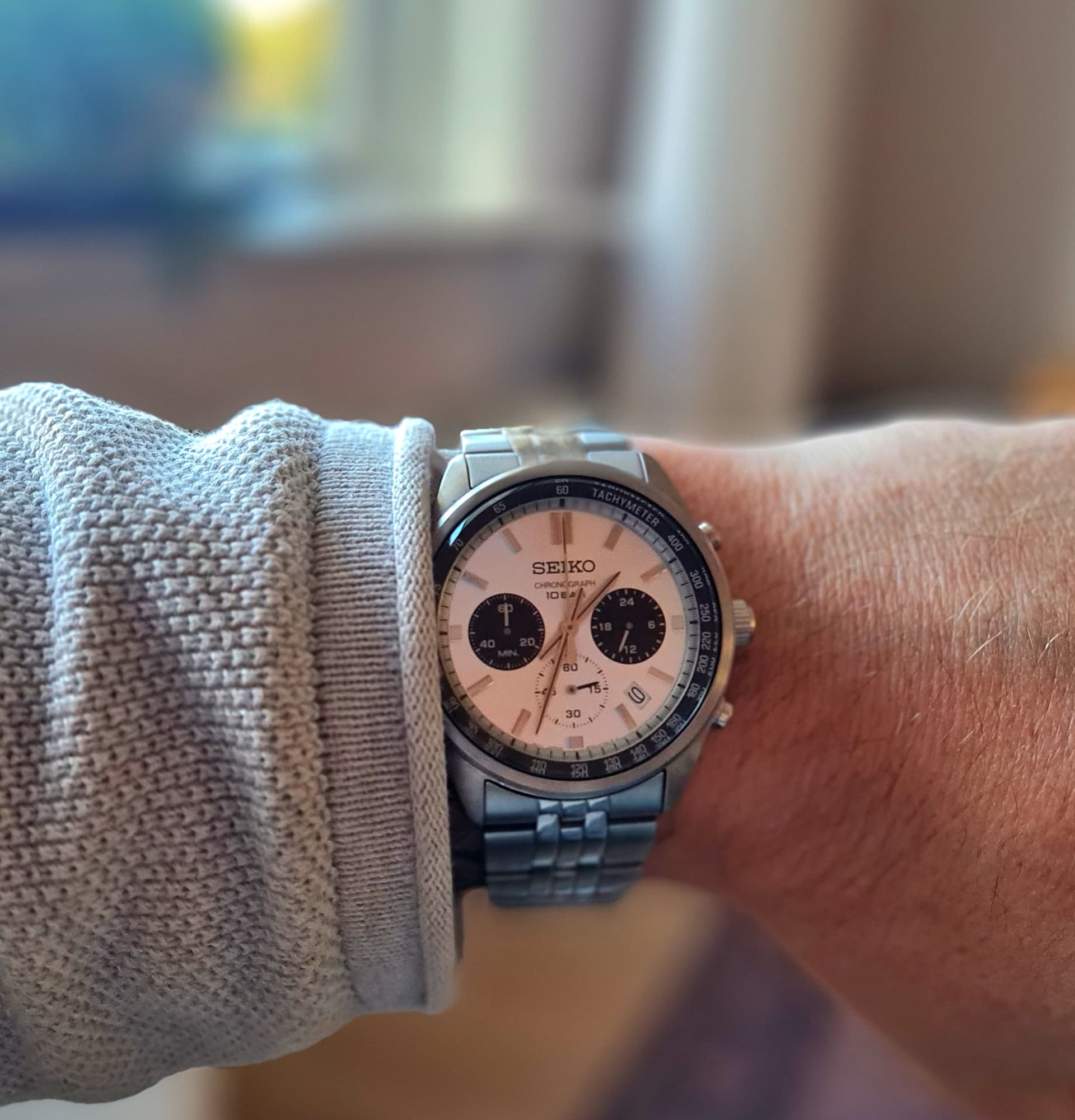 Deze 145.018 was er in vier uitvoeringen: zilver/wit, blauw, en reversed panda, plus die eerste in een vergulde kast. Hij bestaat ook als chrono met slechts twee registers, ref. 145.017. Die is ook heel gaaf. ![]()