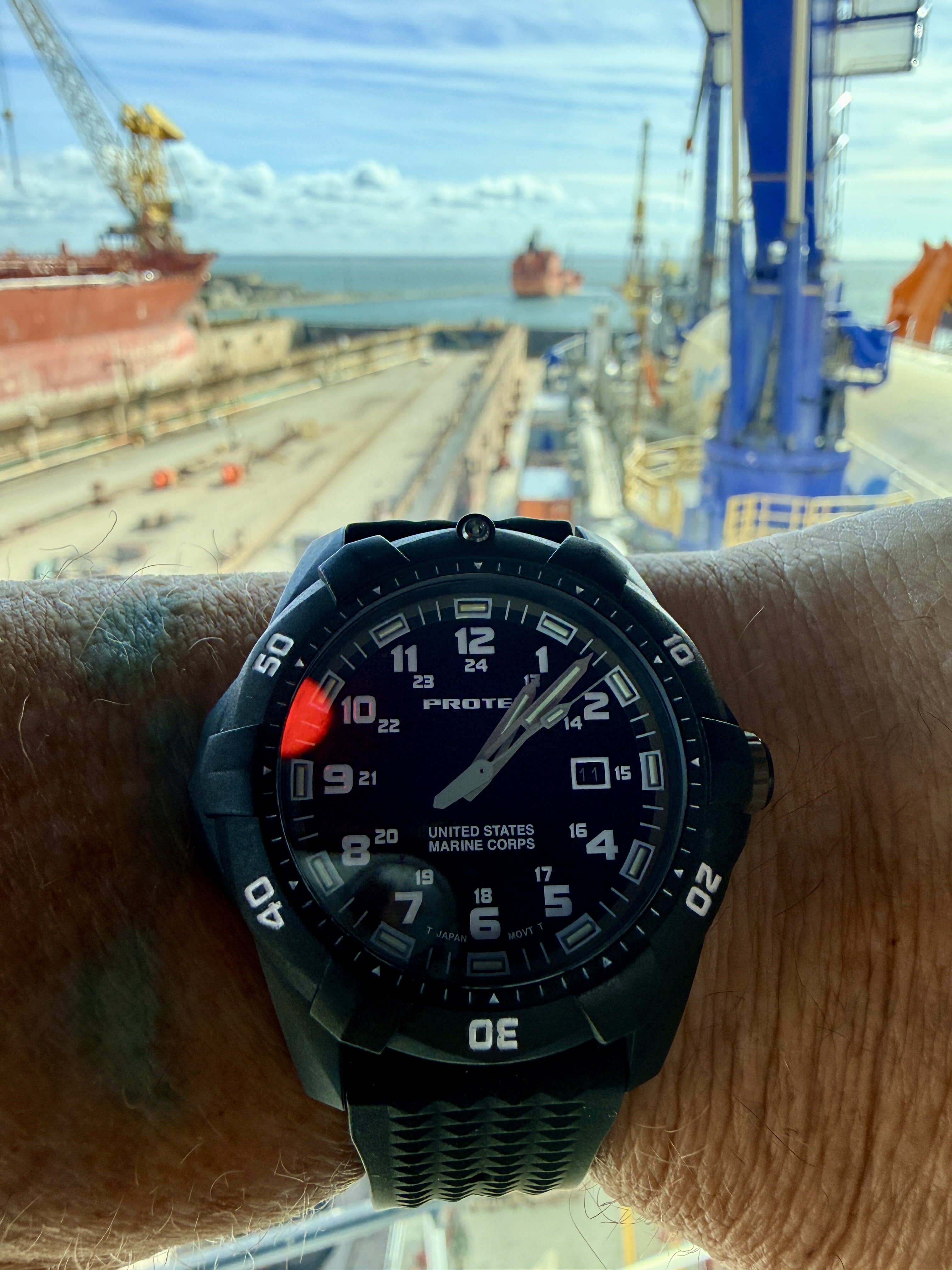 In verband met de zware omstandigheden vandaag gekozen voor een horloge welke schokbestendig en waterdicht is. Theoretisch tot 200 meter, moet nét aan toereikend zijn.