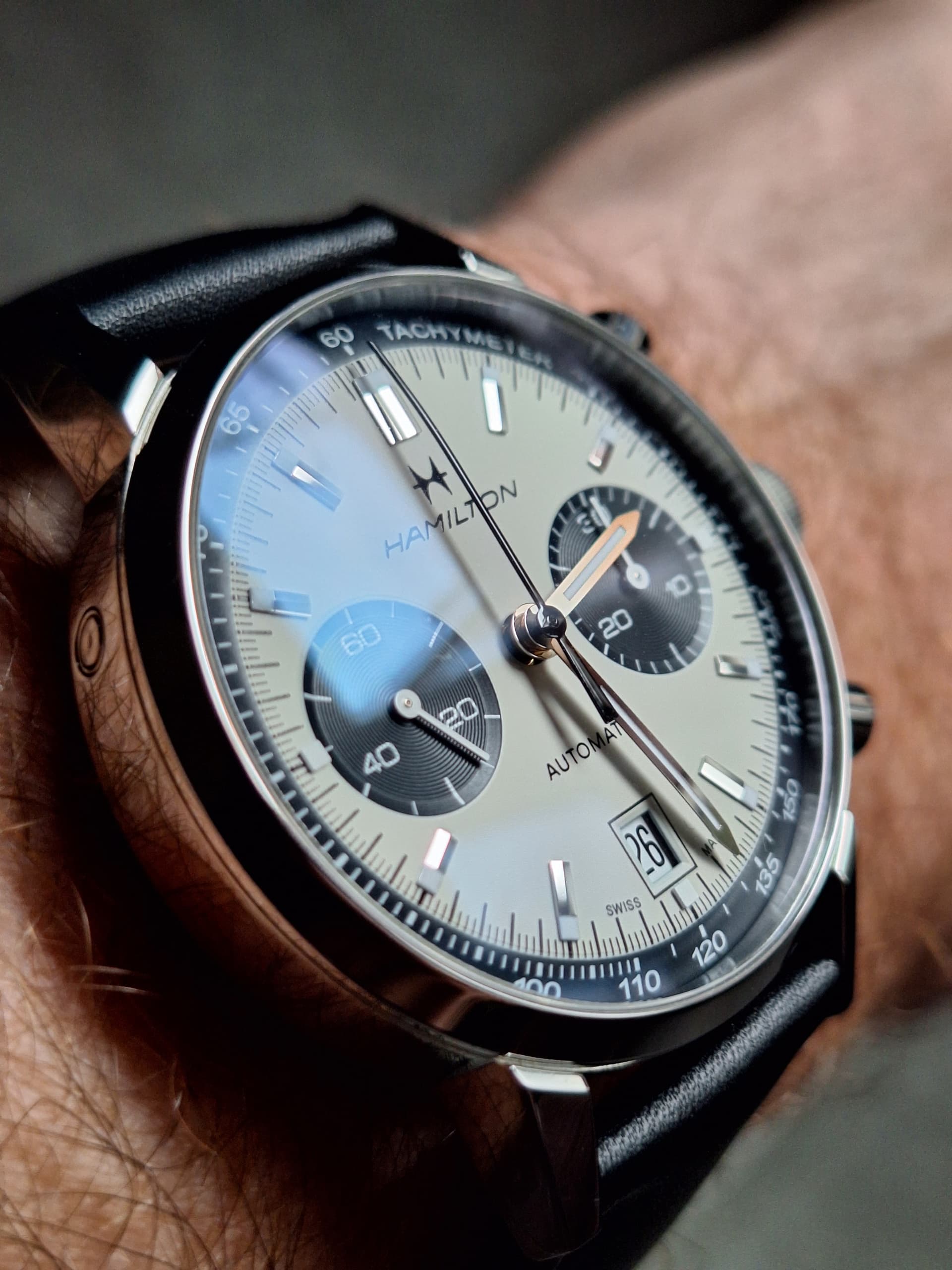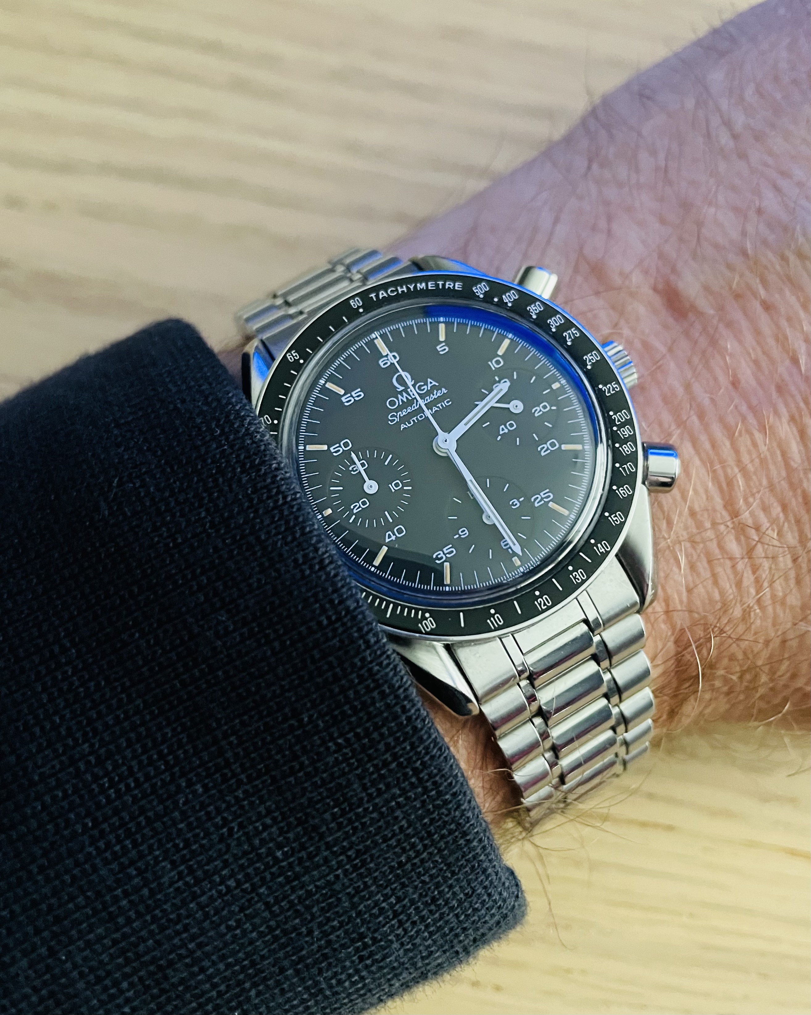 Speedtimer en chrono…tjah, schijnbaar hoeft een speedtimer niet persé een chrono te zijn. Wel heeft 'ie een roterende tachymeter bezel waarmee je eventueel een tijd kunt aftellen.