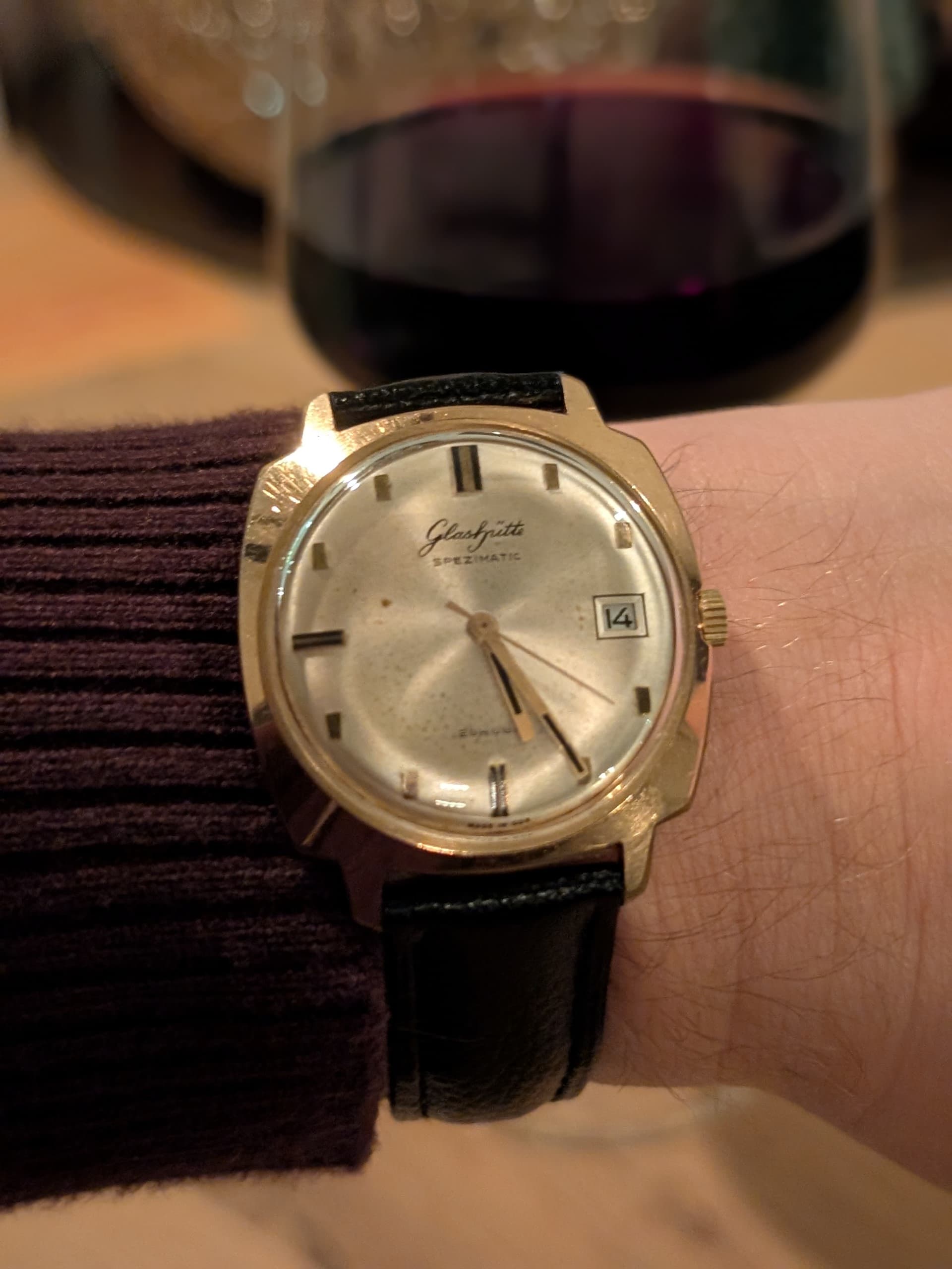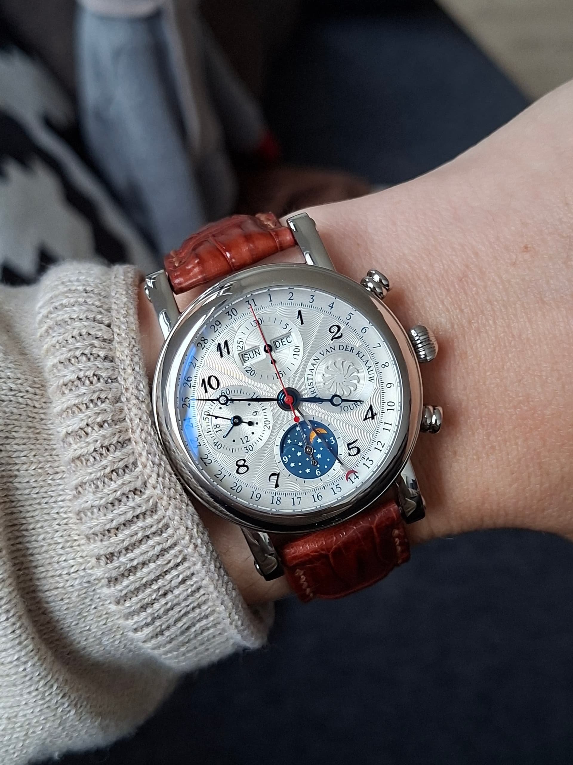41mm, geen idee van het gewicht. Sommigen vinden hem te hoog en daardoor lomp. Ik niet ![]()