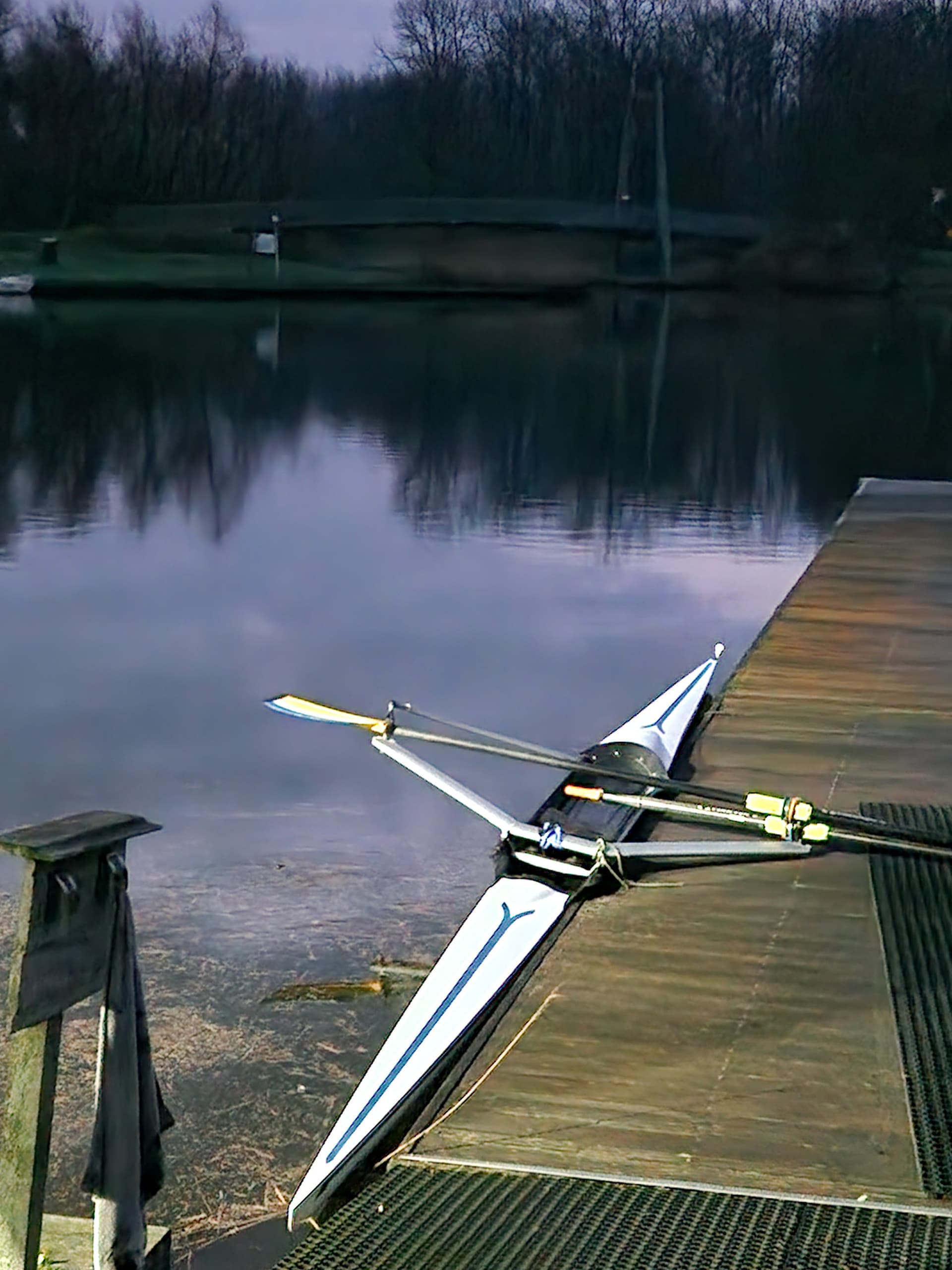 Hier een roei workout, dus de Polar om. Ik moet nog wel even wachten tot het licht genoeg is om het water op te mogen.