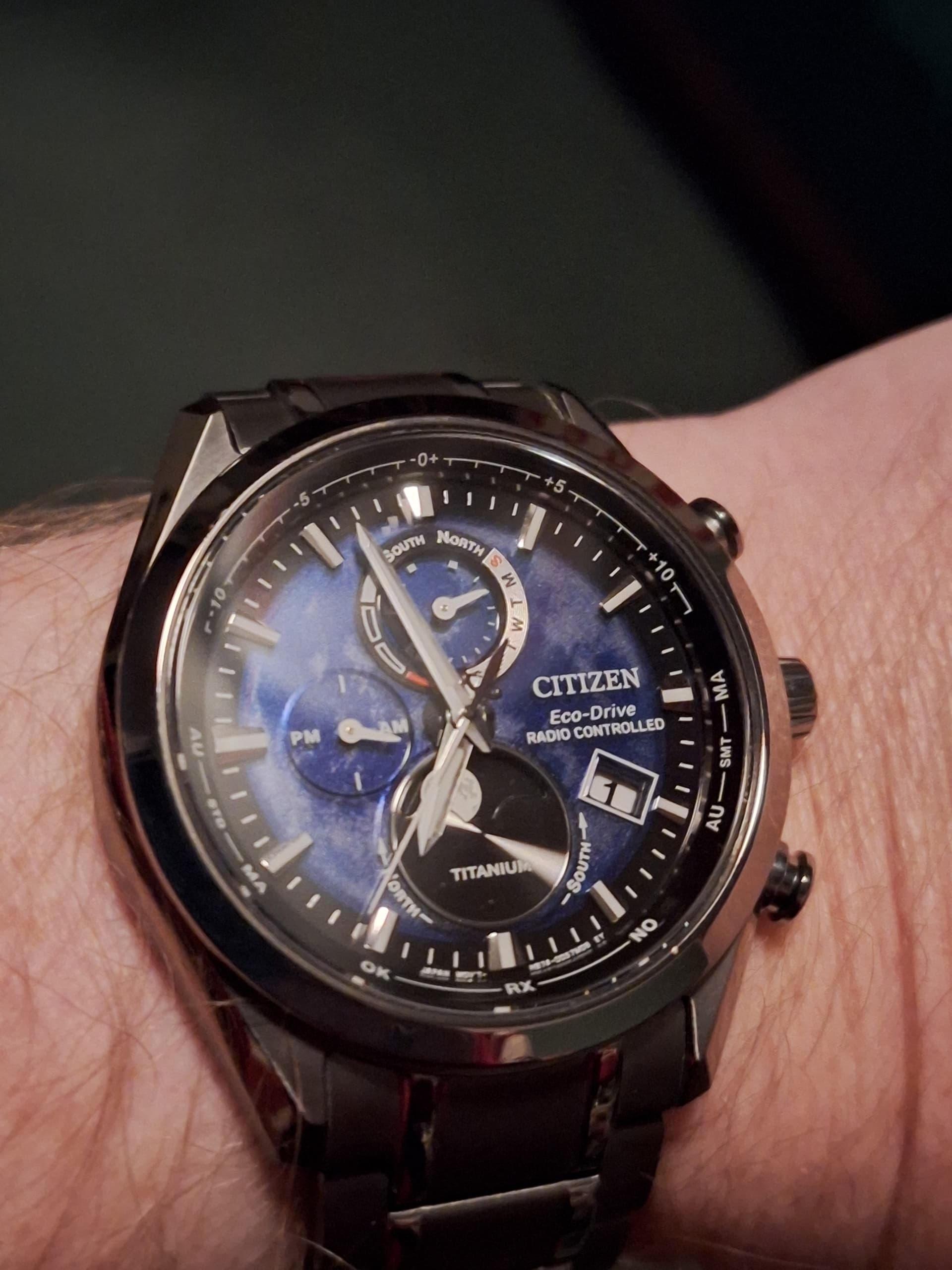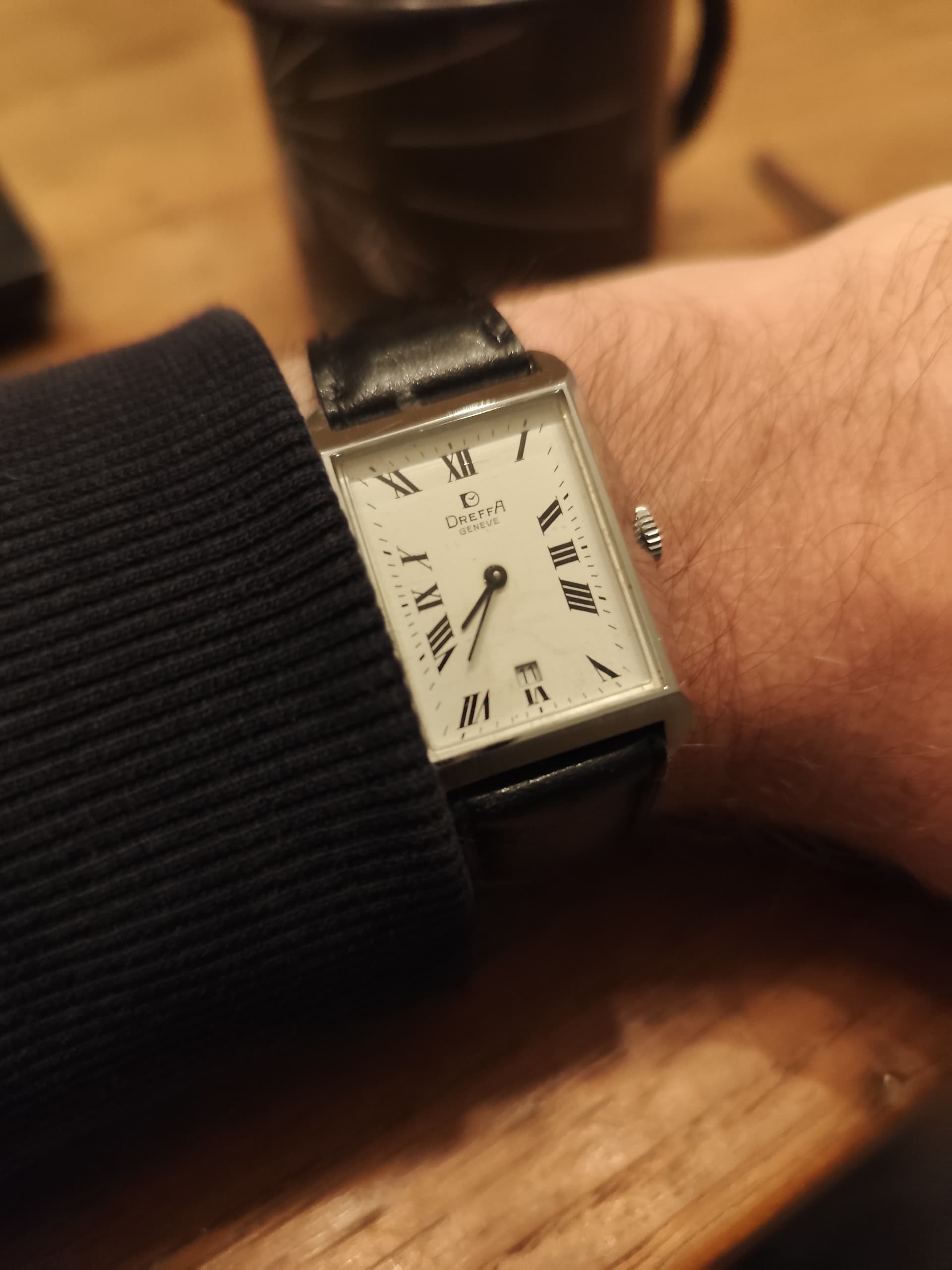 Ben gek op die vroege 7005 modellen. Deze heeft prachtige verhoudingen, is met 37,5mm precies groot genoeg en heeft stoere brede kastpoten. In de zilverkleurige plaat en de ring met minuutindices zit ook iets goudkleur, wat een fijne warme uitstraling geeft. Zeer gelukkig mee!