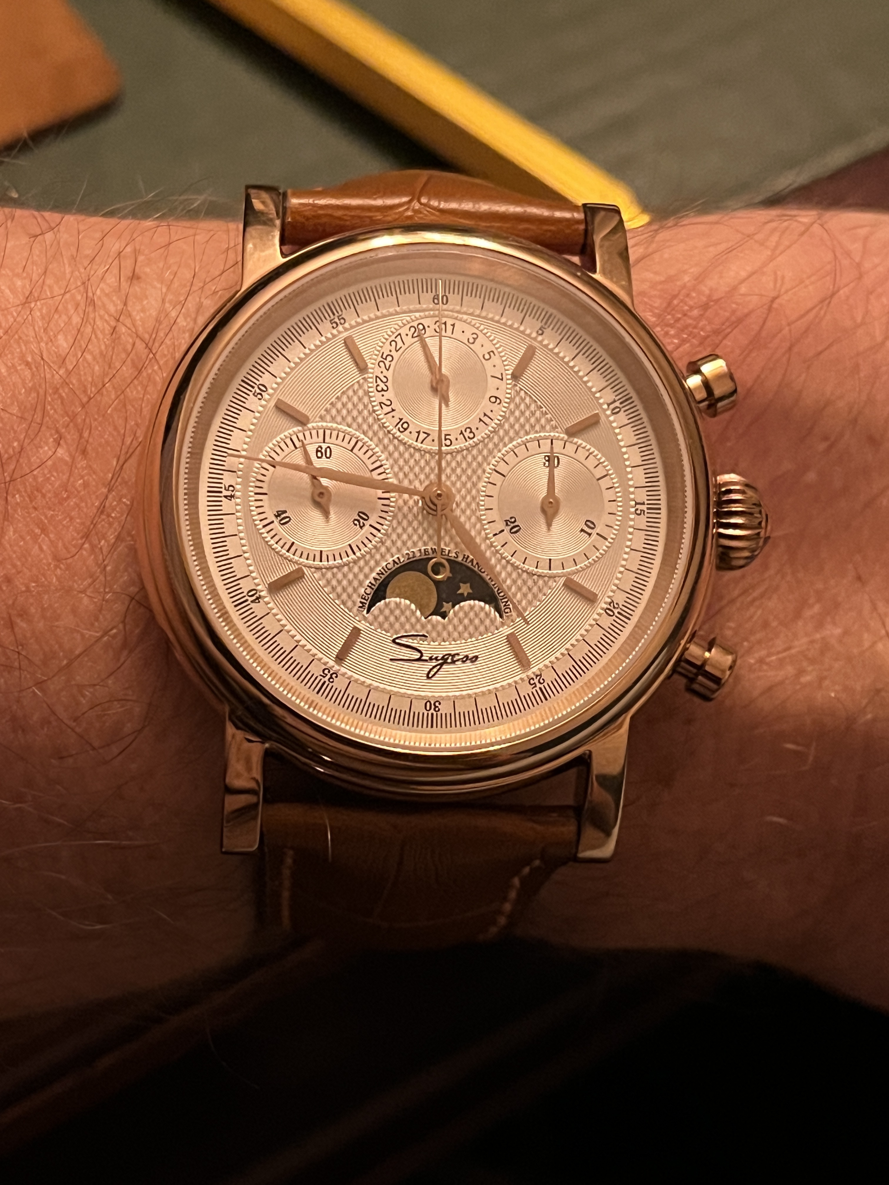 Inderdaad. Een beetje speling in de bezel en een luidruchtig uurwerk. Verder geen klachten ![]()