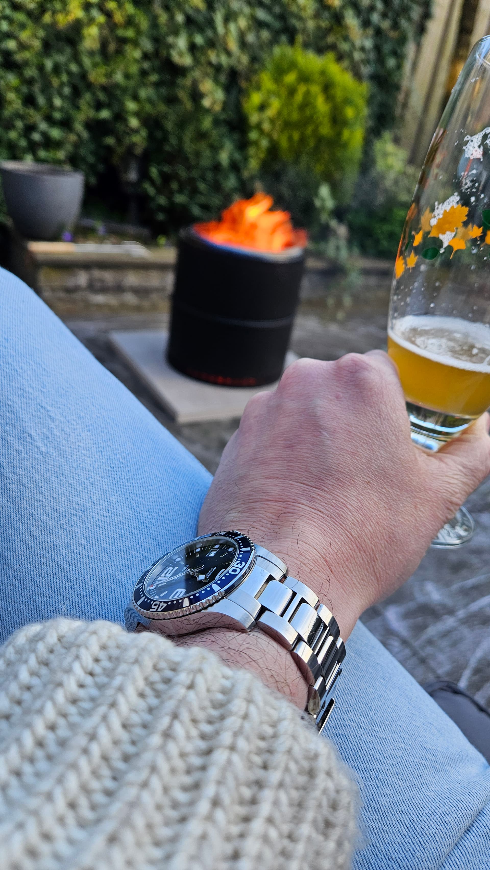 Heerlijk. Vuurtje, biertje, mooi horloge om, wie doet je wat. ![]()