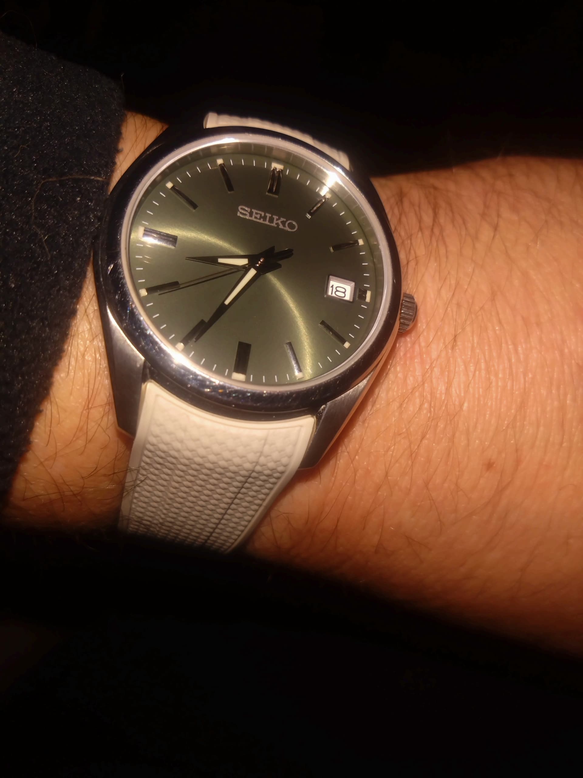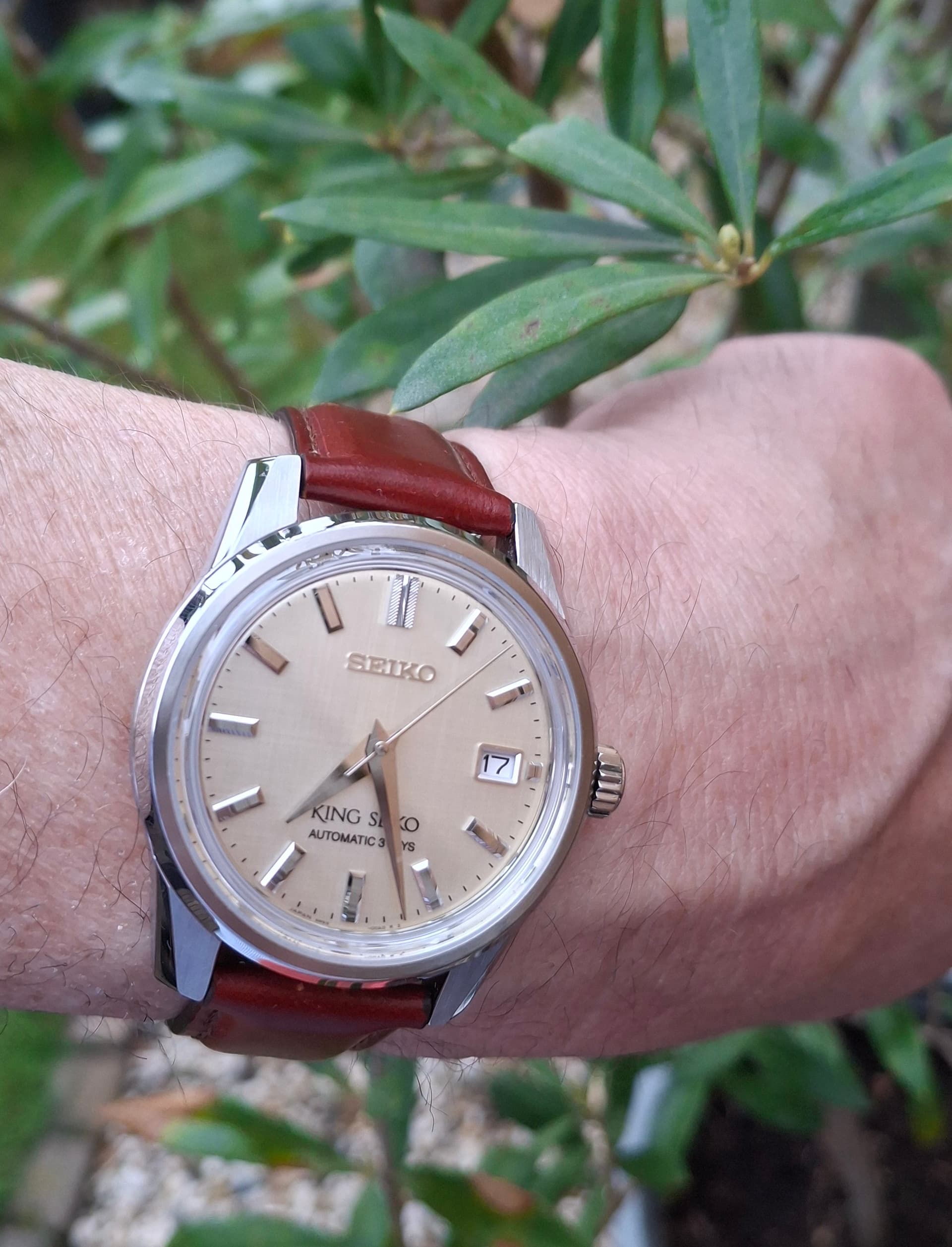 Het is sowieso comfortabel, en eerlijk gezegd is de rotor wat luidruchtig omdat het natuurlijk een Miyota is. Dus je voelt dat het een andere klasse is dan het GS en Credor spul, of zelfs ook maar Seiko limiteds en zo. Aan de andere kant is het mooi plat, en heel erg charmant.