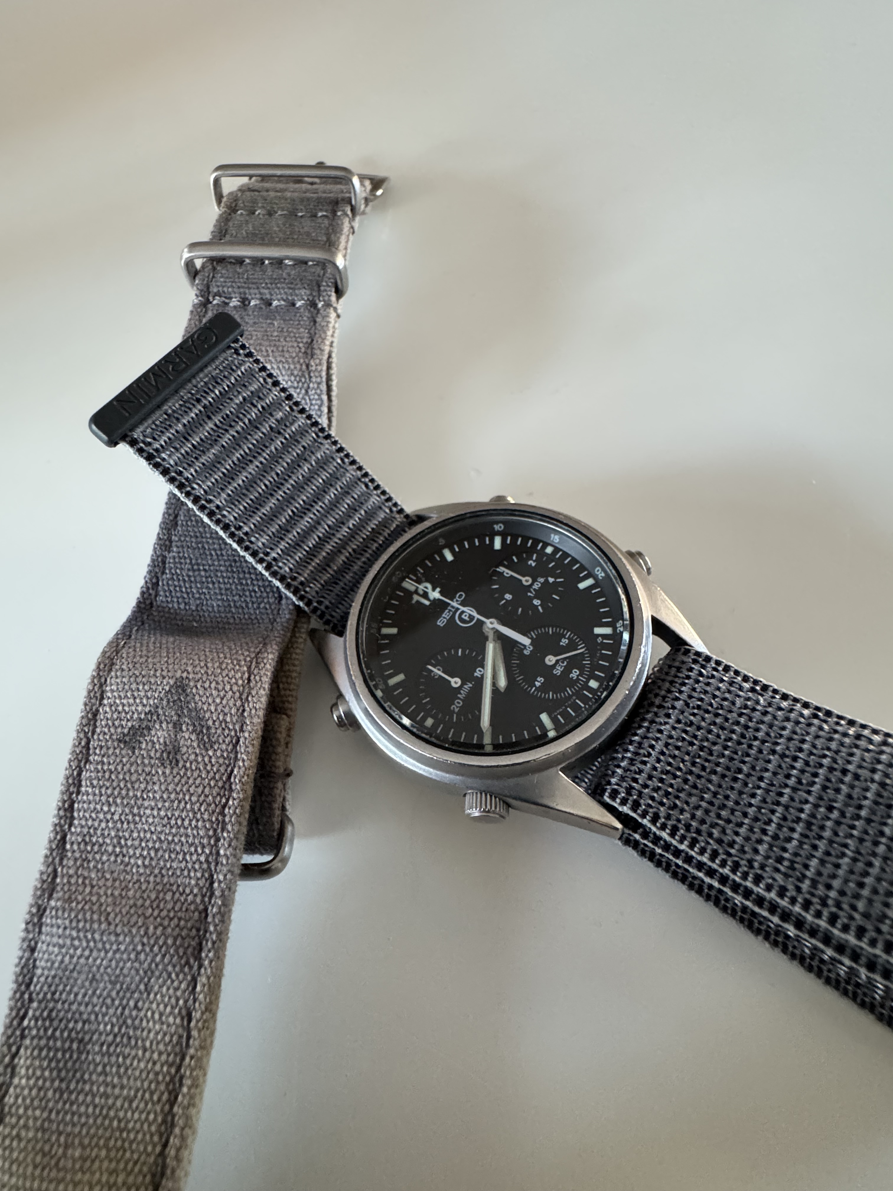 Net even het bandje gewisseld. Verse Garmin Ultrafit erop. Heel comfortabel bandje en horloge ligt een stuk platter om de pols dan een nato.