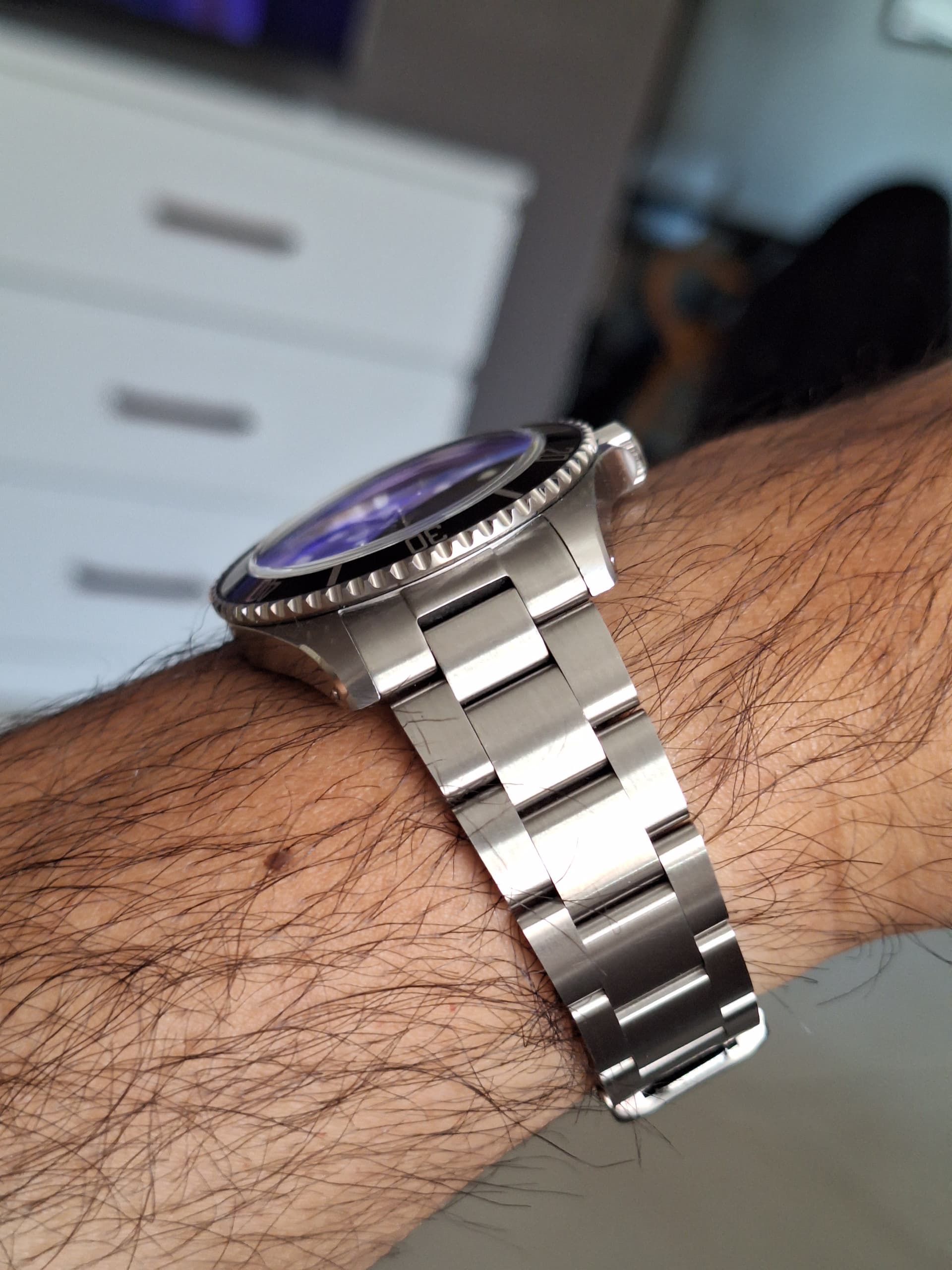 Wat een fijn model. Perfecte maat voor mijn 18cm pols. Micro adjustment. Keramische bezel. Fijn ding.