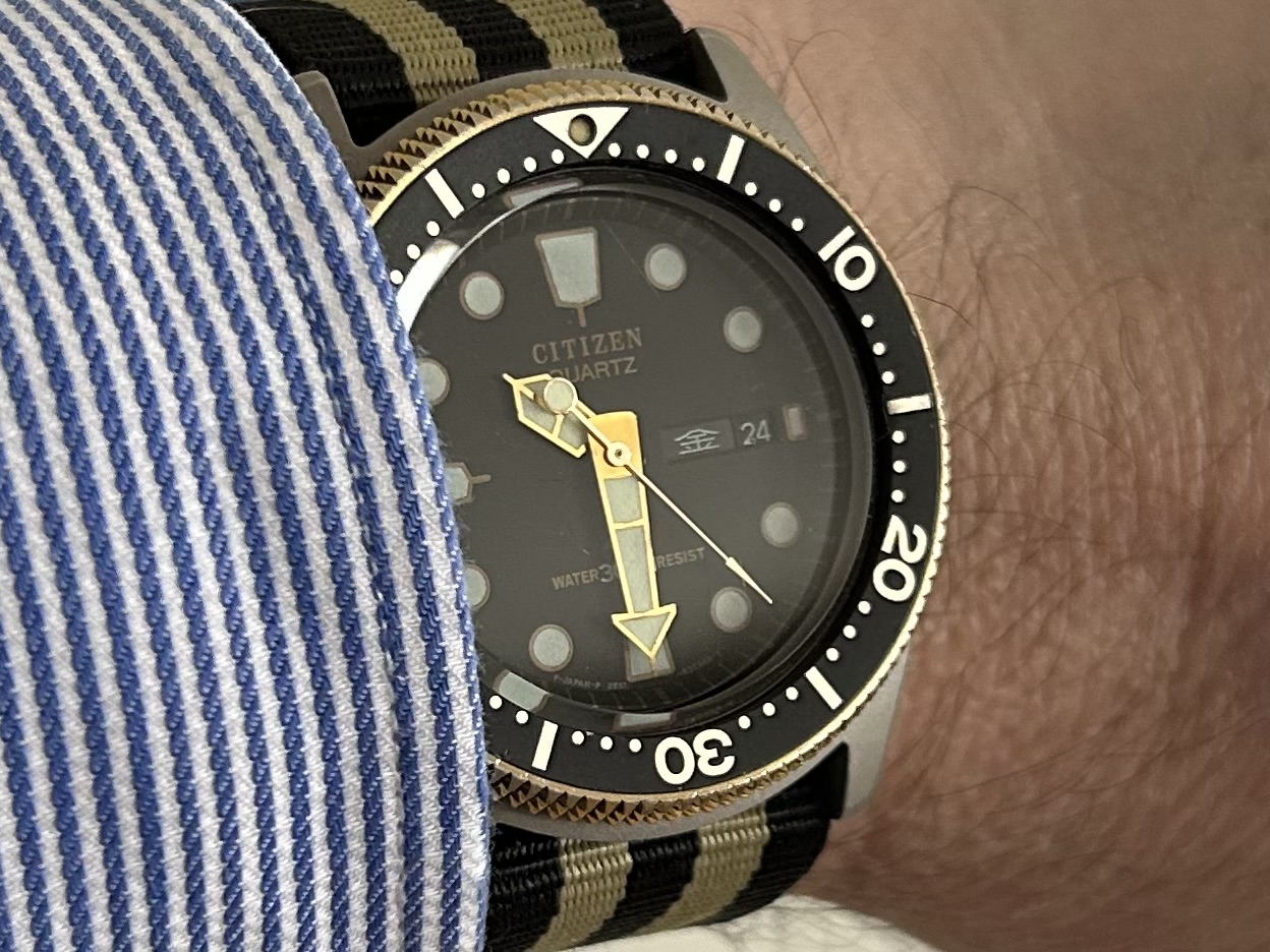 Dank je, Citizen Marinaut titanium met saffier. Mooie wijzerplaat en goede kleurstelling, beetje retro vibe👍
