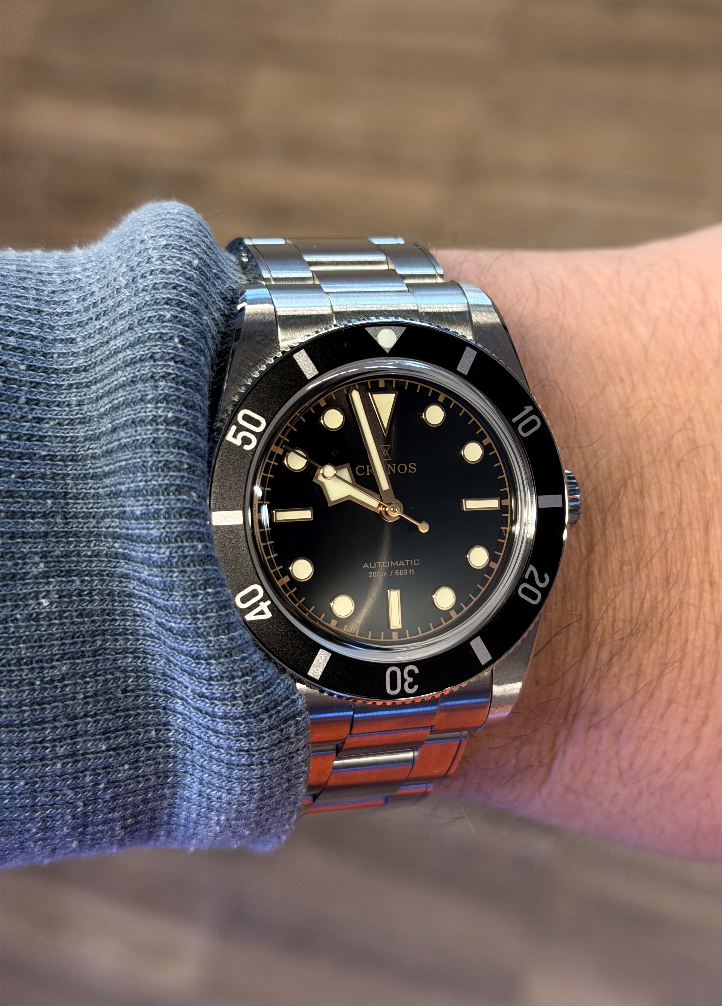 Zo’n 34mm blijft toch altijd mooi bij wat nettere kleding op een zomerse dag. Dit is mijn kleinste en minst opvallende horloge, maar ik krijg hier de meeste positieve opmerkingen over. Ik merk dat ‘niet horlogeliefhebbers’ duikers of andere sportieve horloges al snel ‘te veel’ vinden.