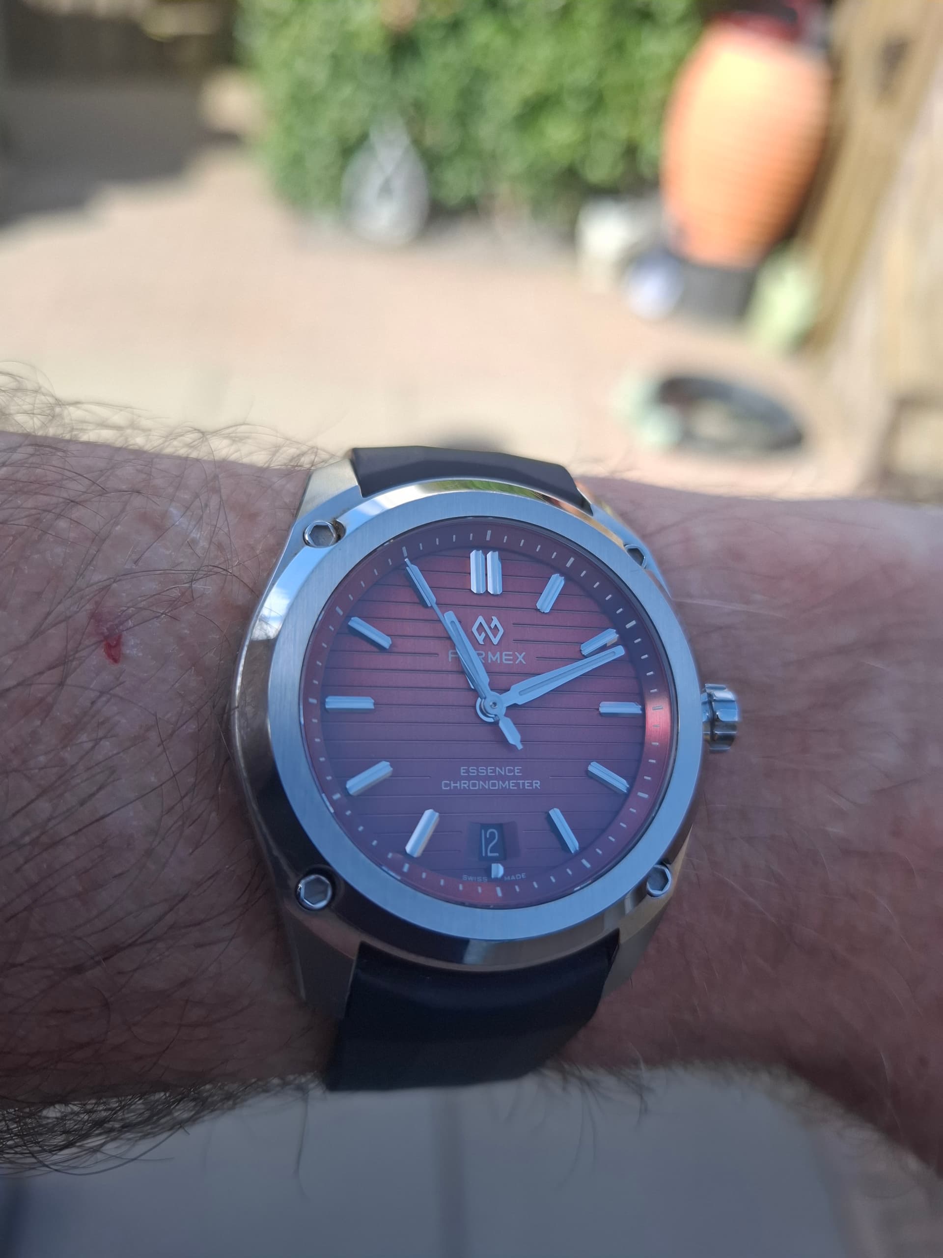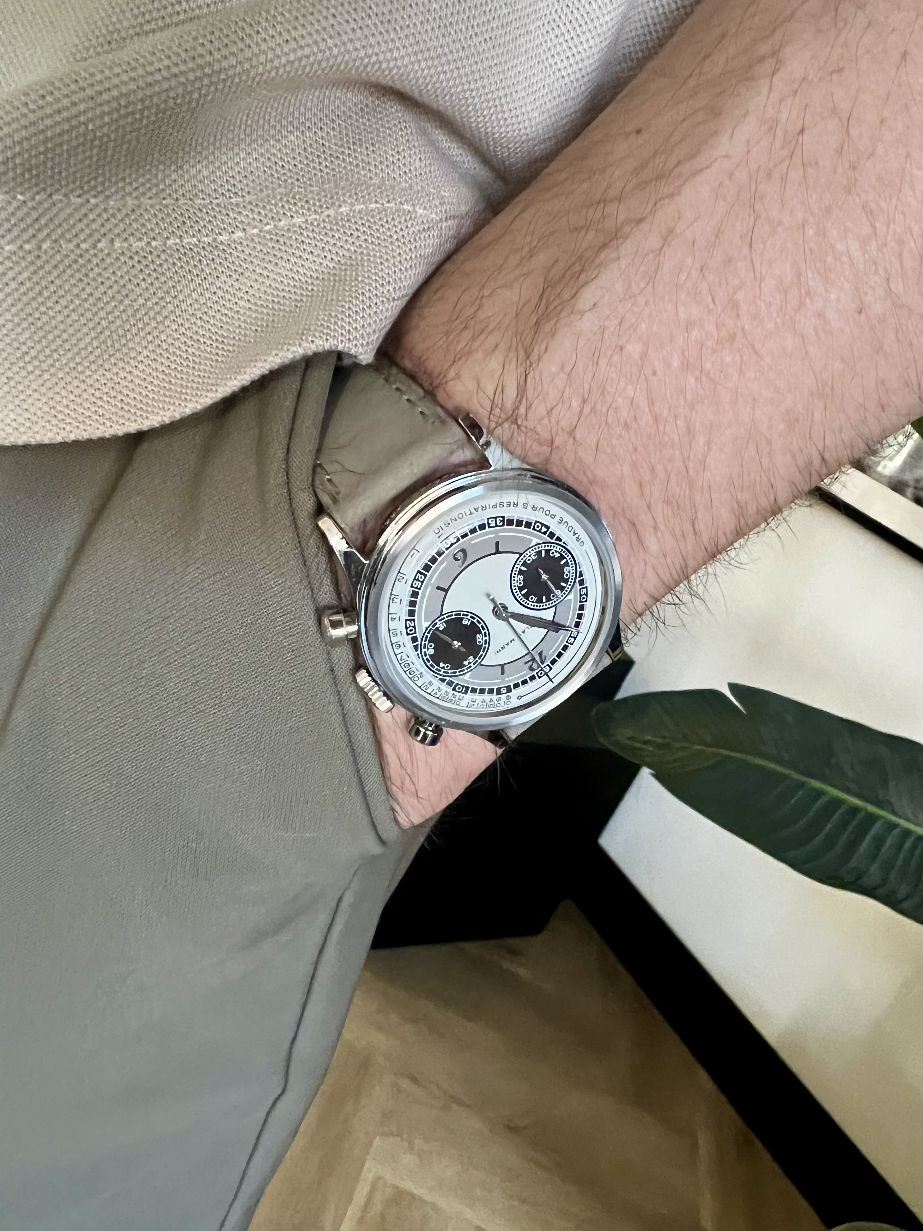 Ik heb er een ander horloge bandje aangedaan dat naar mijn smaak beter past bij de estetiek.