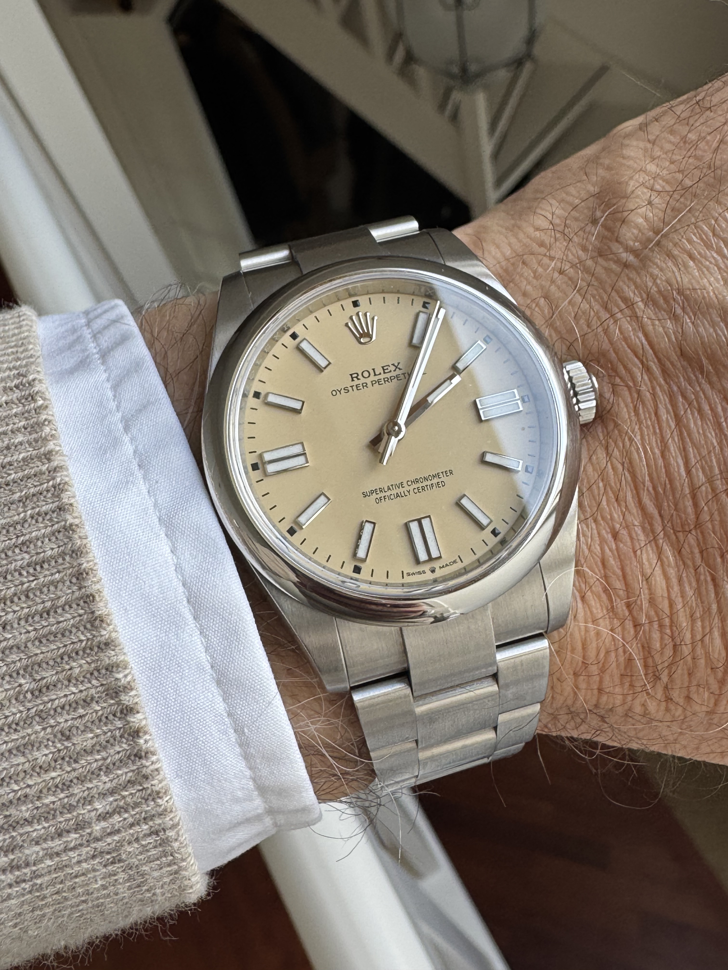 Net terug van een rondje golf met deze Credor Signo - De Salary Man editie met sauna-proof HAQ uurwerk. En een GS garnituurtje in de achtergrond.
