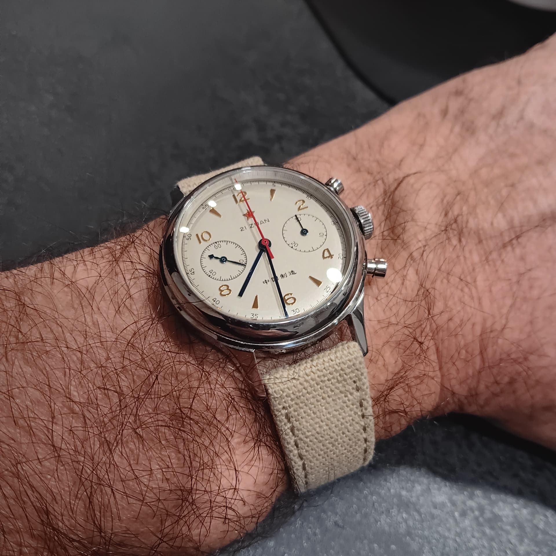 Het was de enige strap die enigszins in de buurt kwam van de originele strap die bij mijn Railmaster hoort. Ik heb mijn horloge echter 2e hands gekocht met een stalen band dus helaas niet de originele stoffen band.