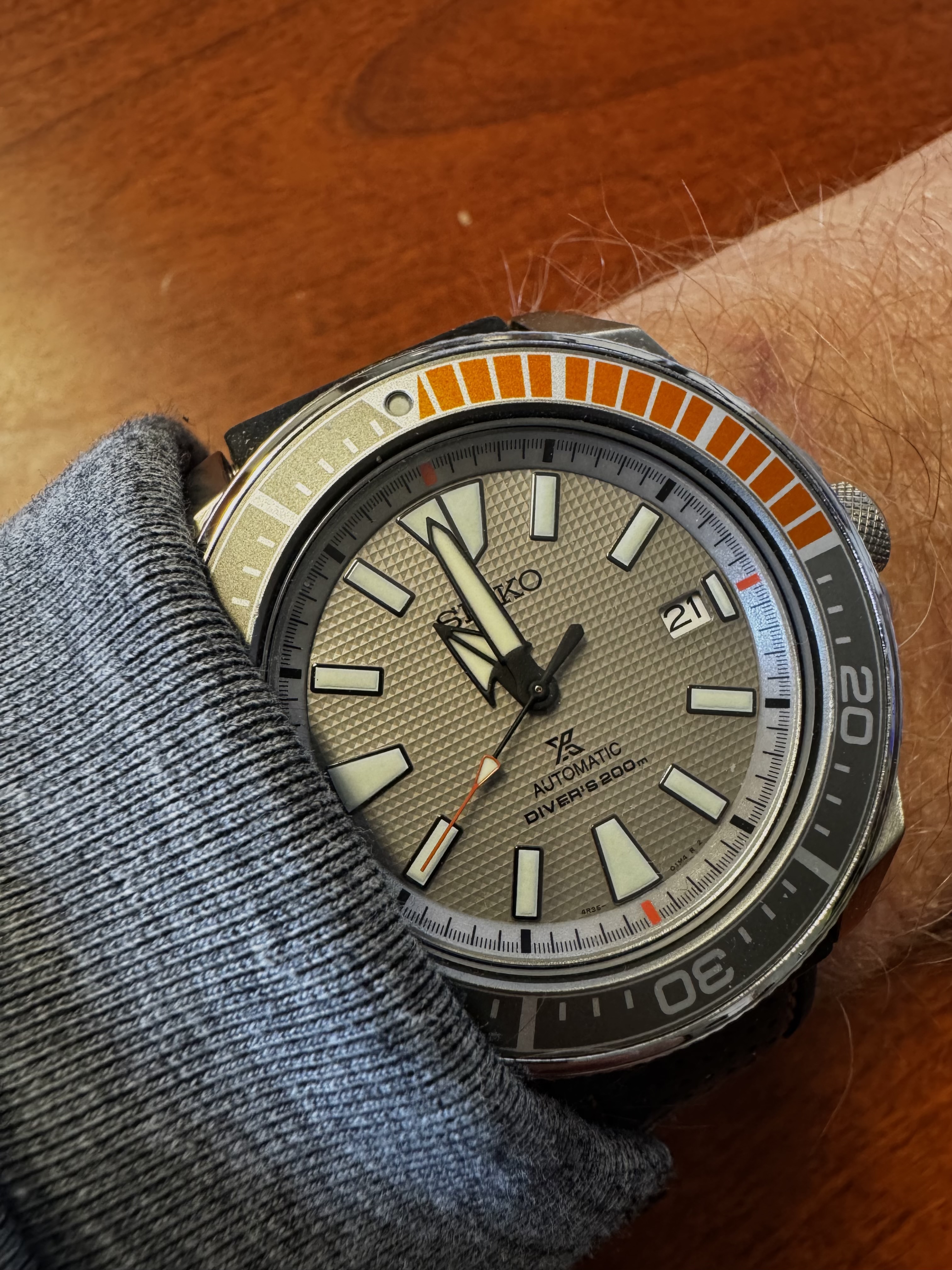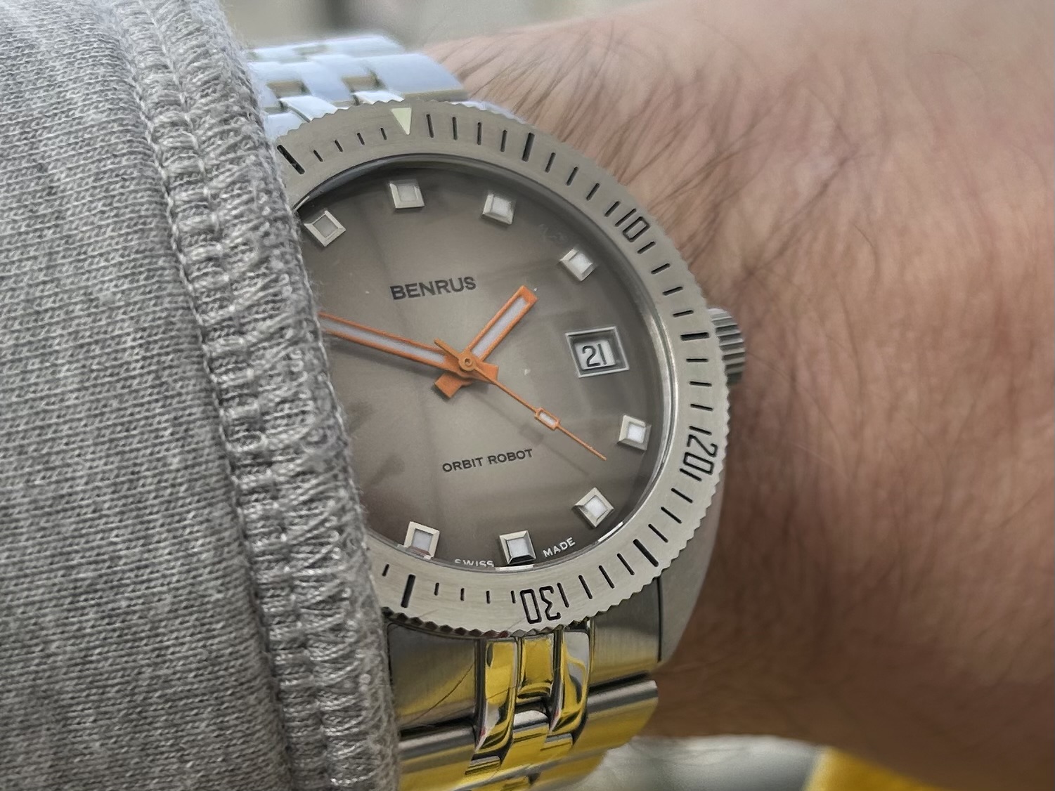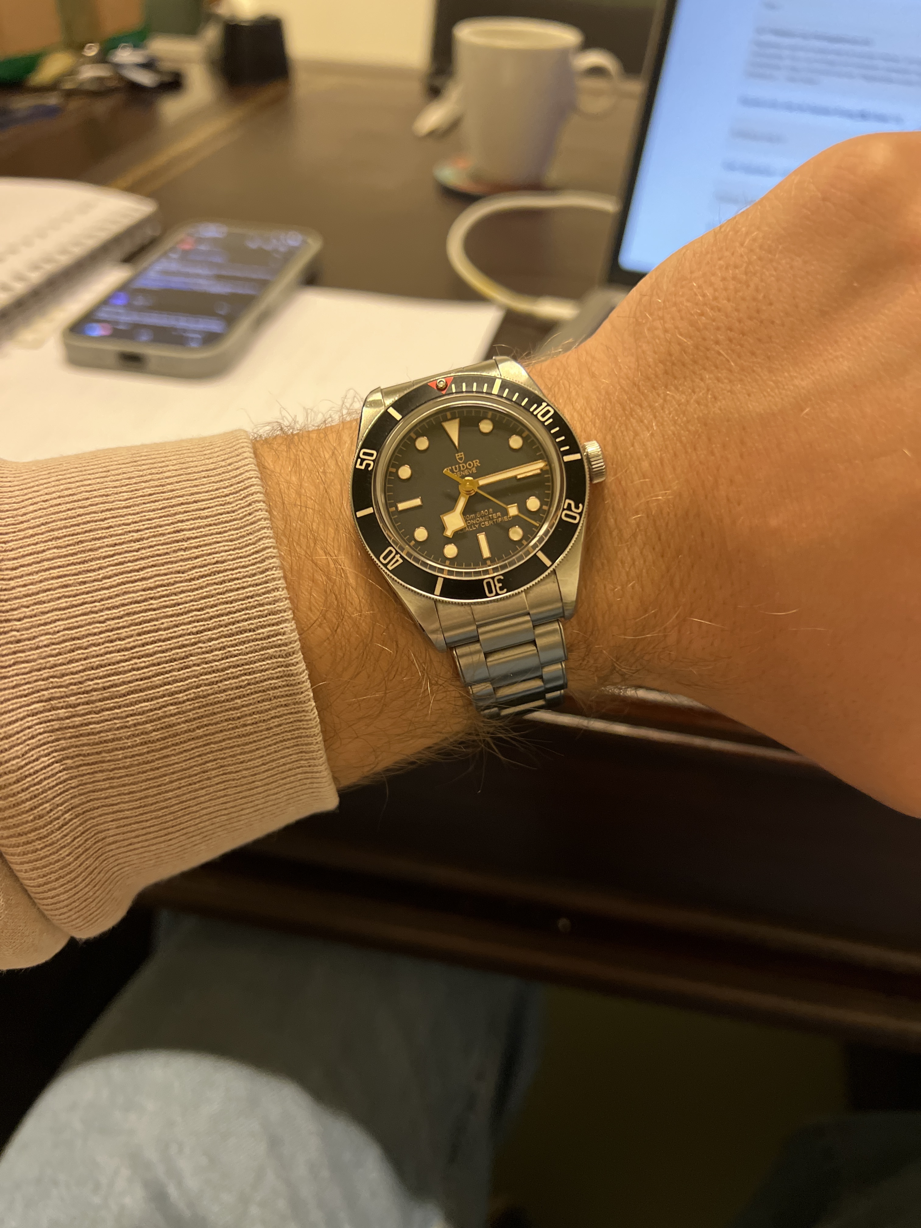 Good old Alpinist om de pols. Enige horloge met groene wijzerplaat en enige horloge met goudkleurige wijzers en indices, want goudkleurig en groen ben ik eigenlijk niet van….