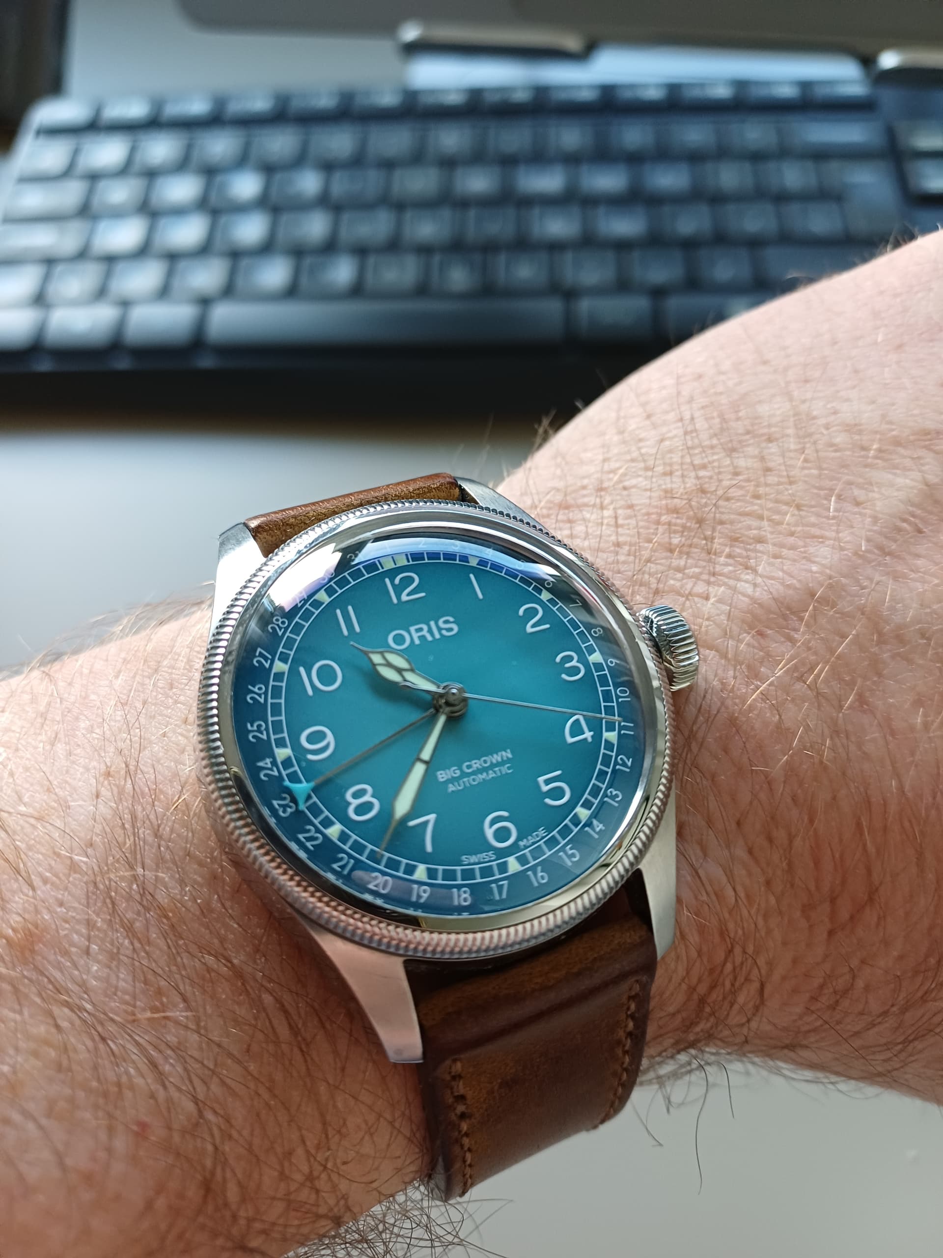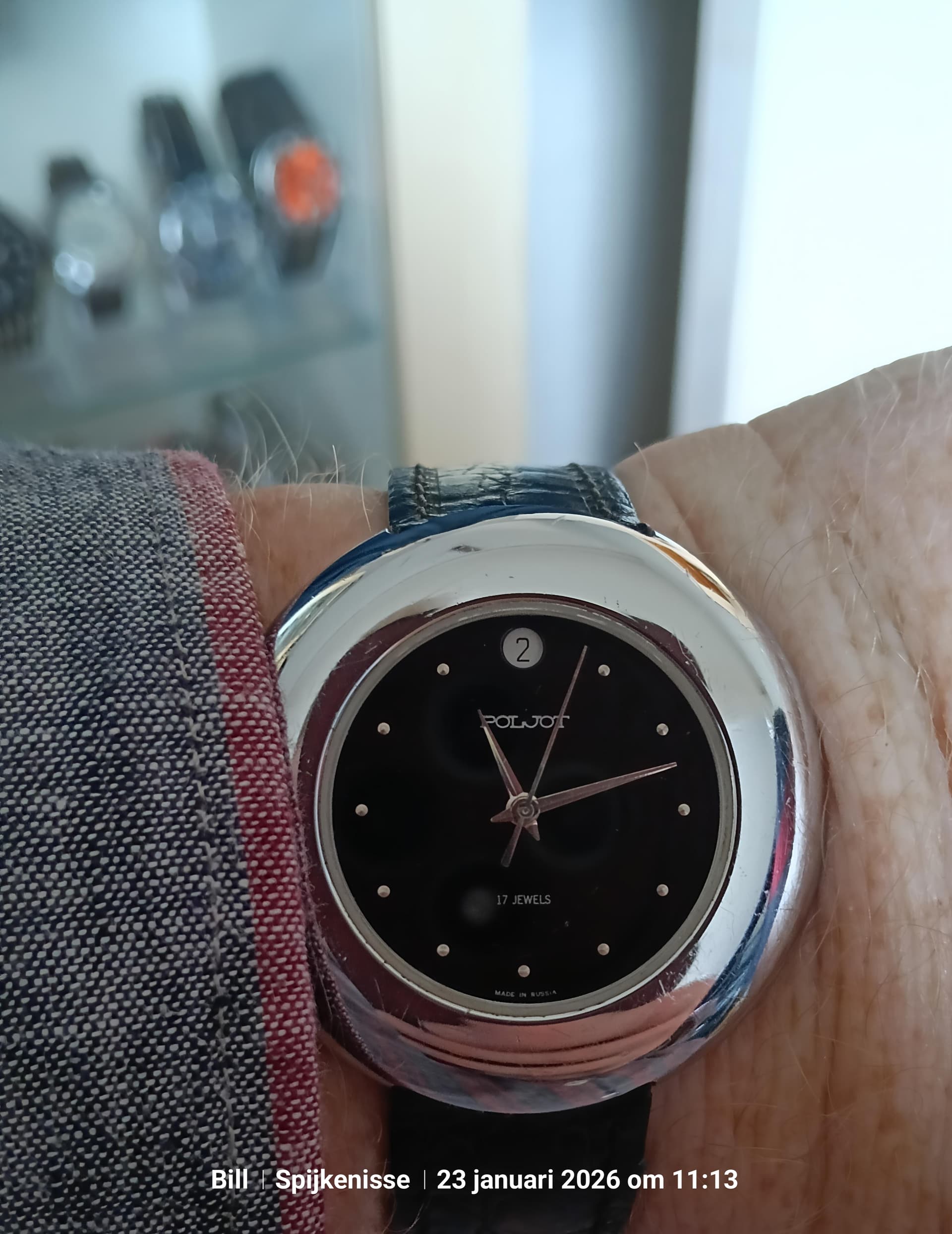 Dank! Deze is ook draagbaar, voor een oud horloge beet fors en de wijzerplaat speelt met het licht.