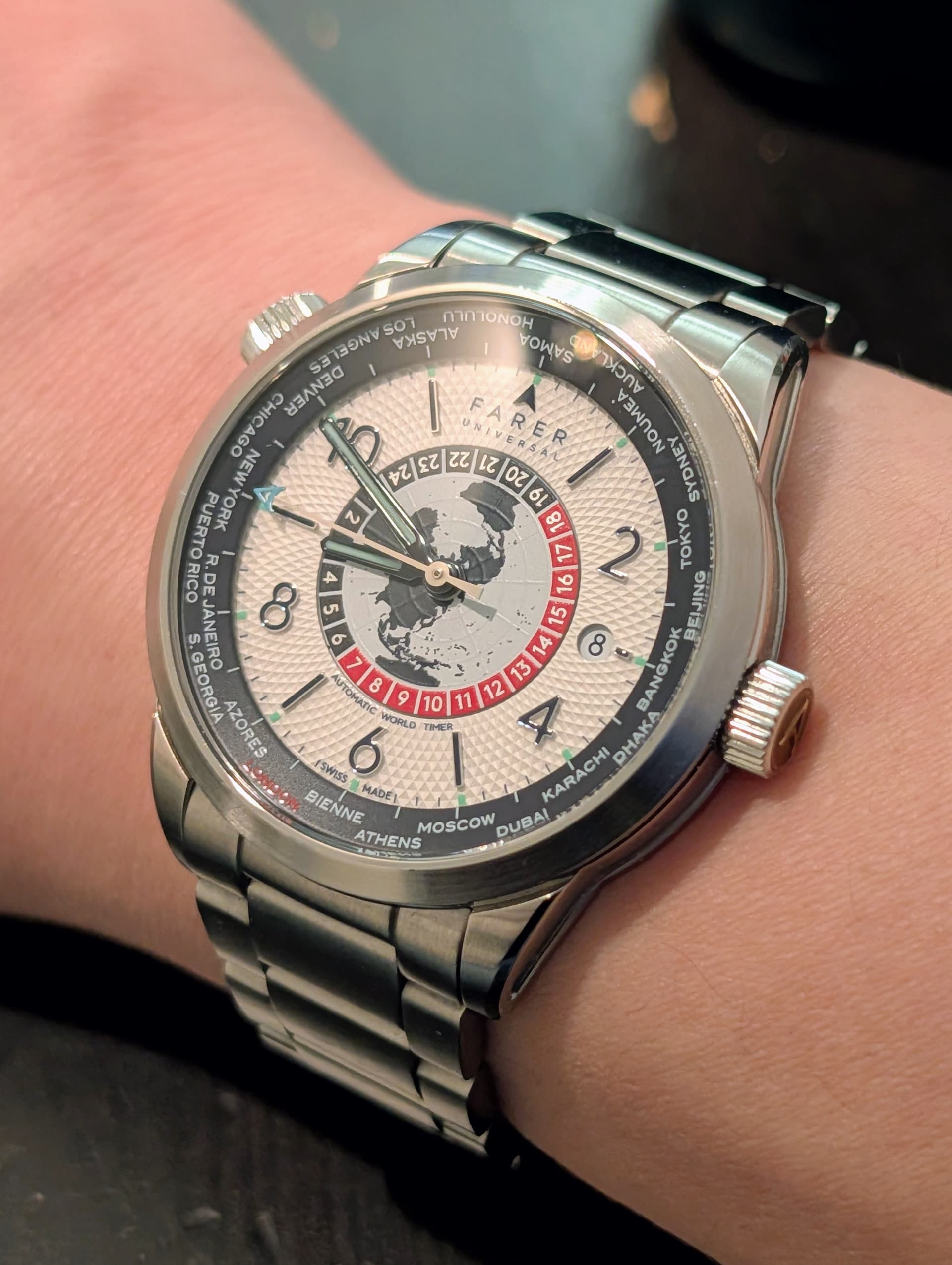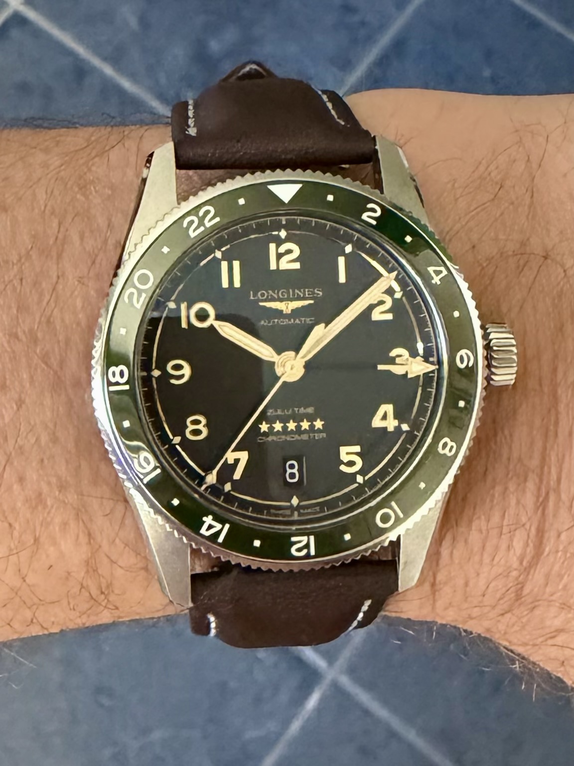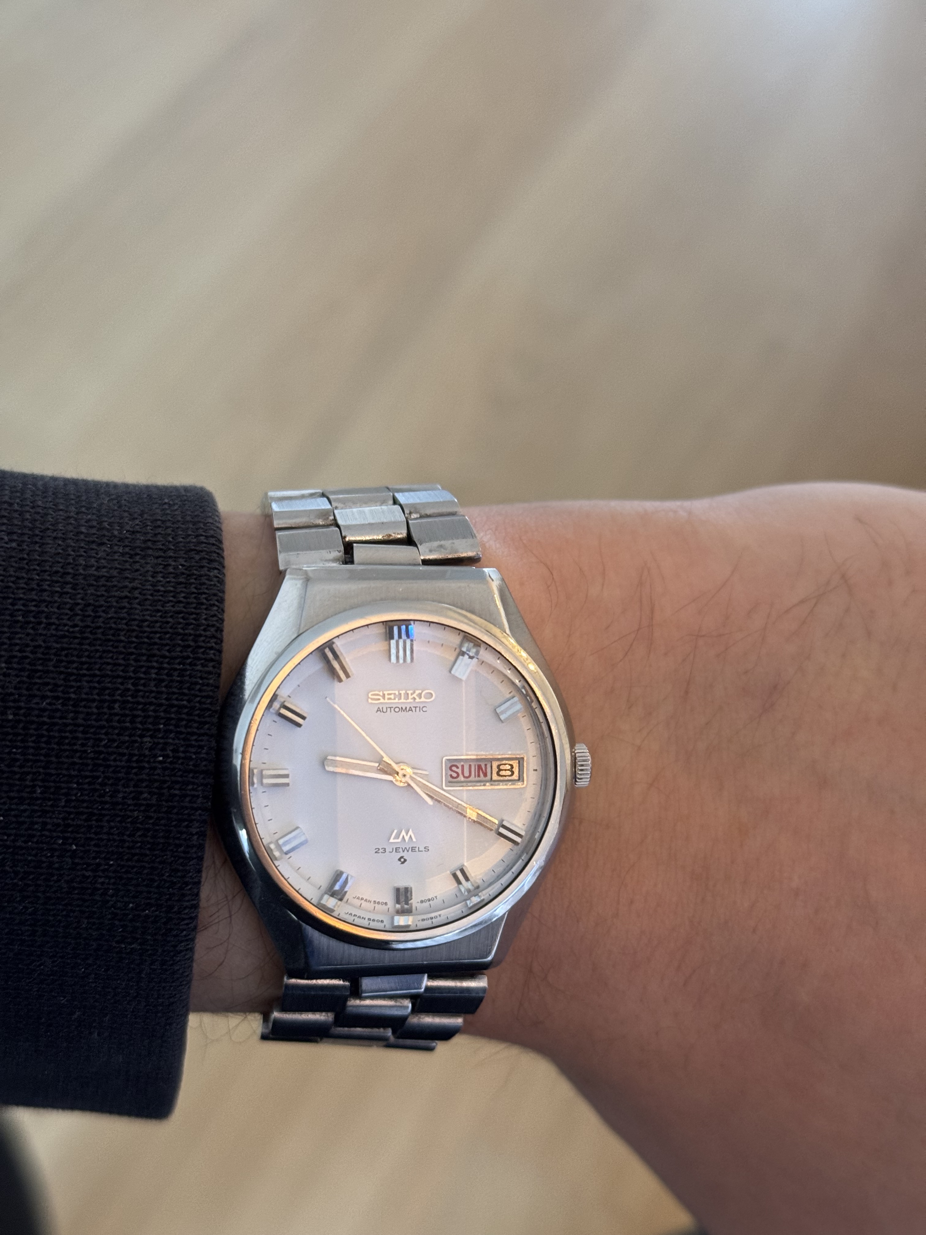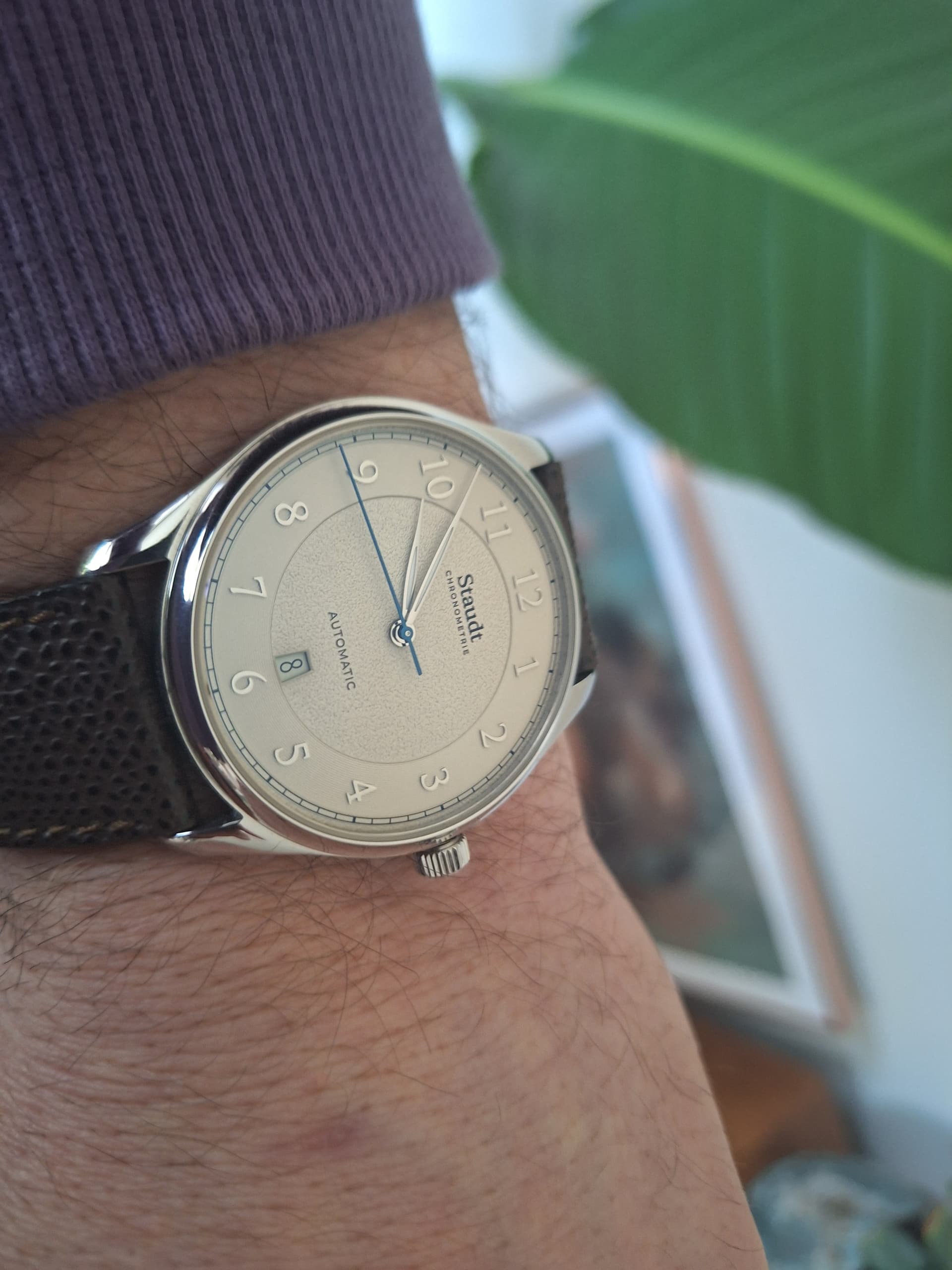 Nice, chique met die gouden kast op leer. Komt niet oorspronkelijk op lederen band toch?