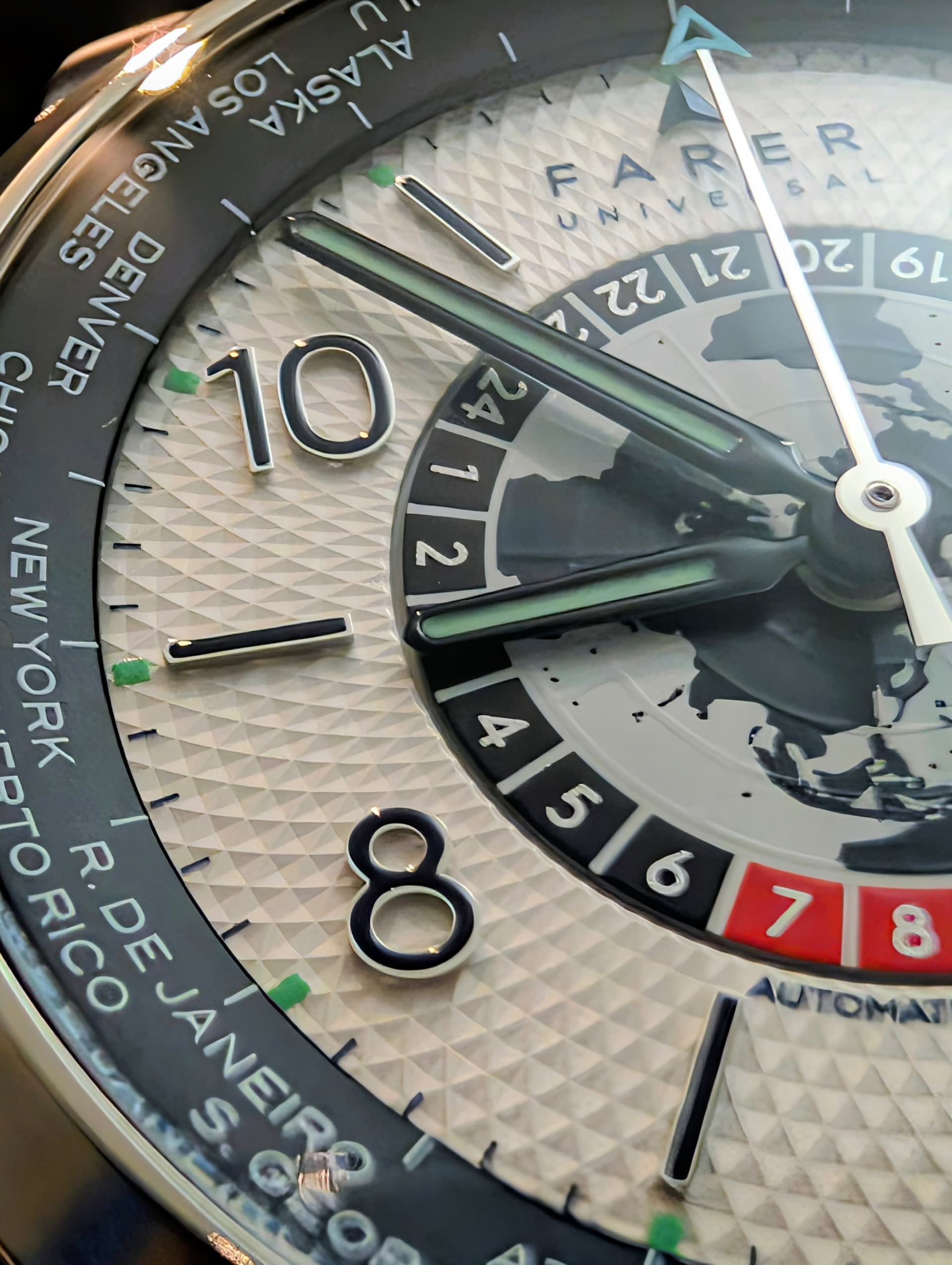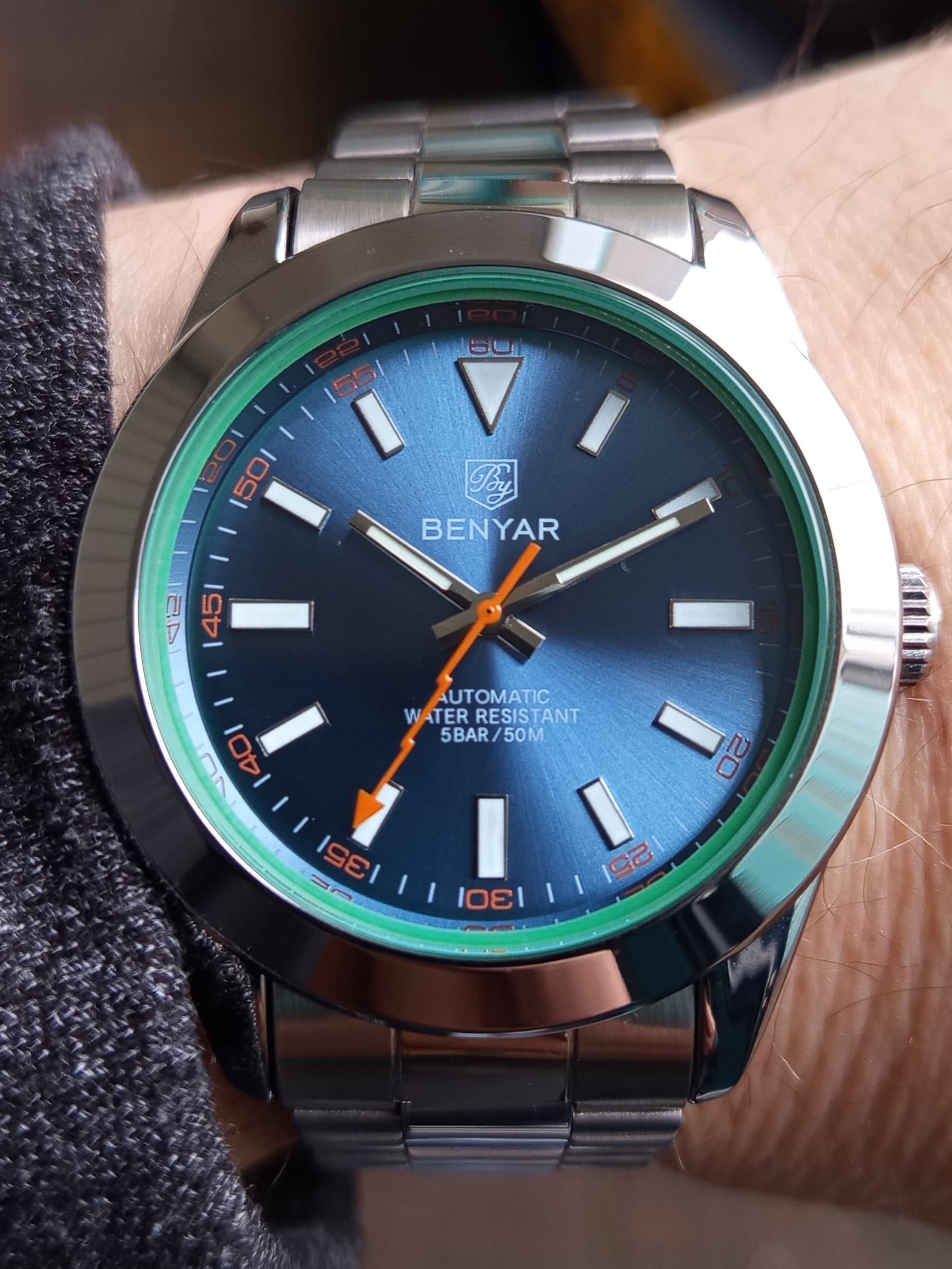 Zo gaaf hoe de wijzers wegvallen tegen de zwarte wijzerplaat en in de scherpste hoek nog steeds perfect afleesbaar zijn door de olie in de kast. Refractie 0,0 ![]()
