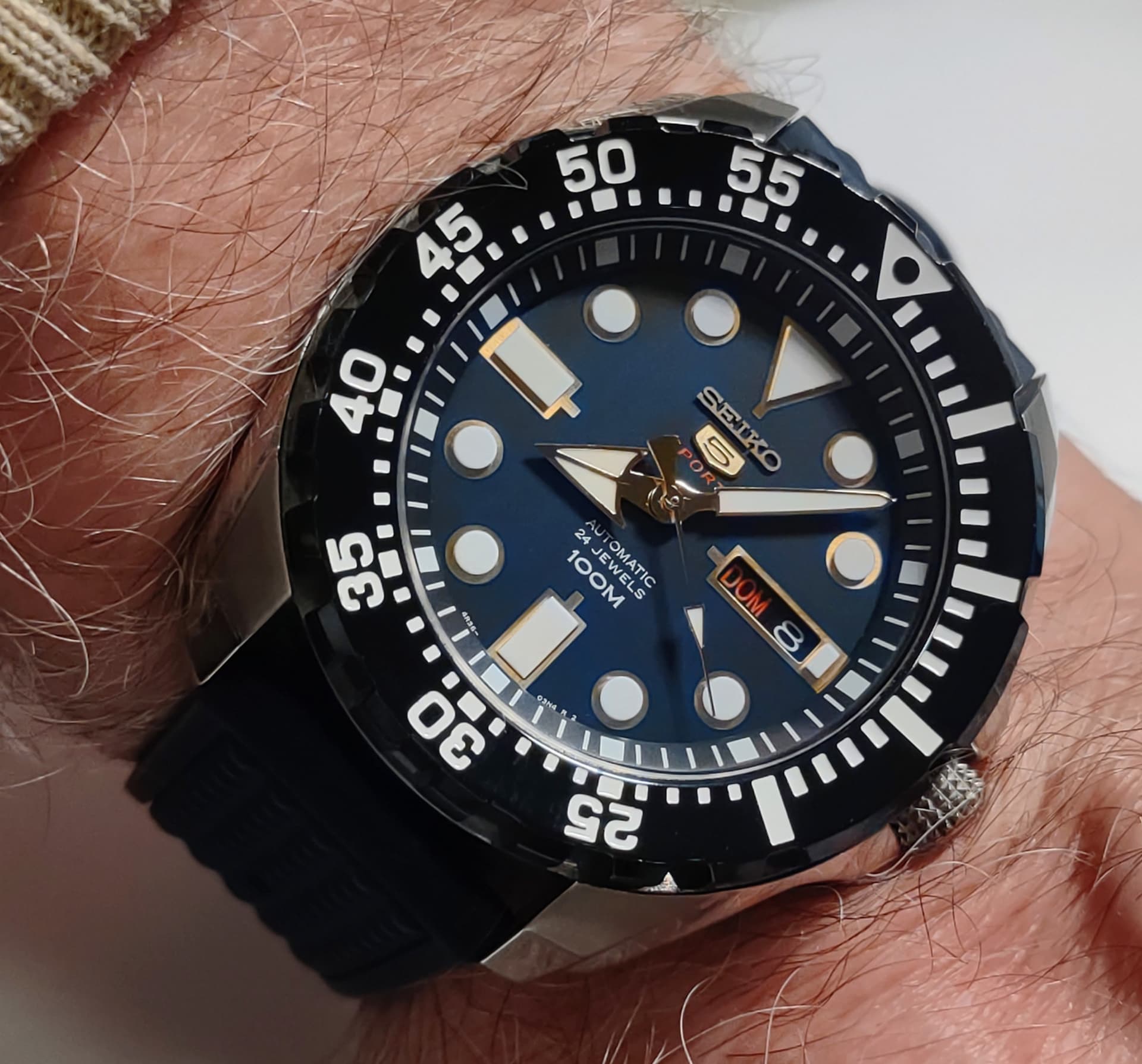 Hoe draagt ie? Is vrij dik voor een 36mm dacht ik?Paar keer in de etalges zien liggen, maar nog niet gepast. Vind het wel een lekker zomers horloge in de licht blauwe kleur.