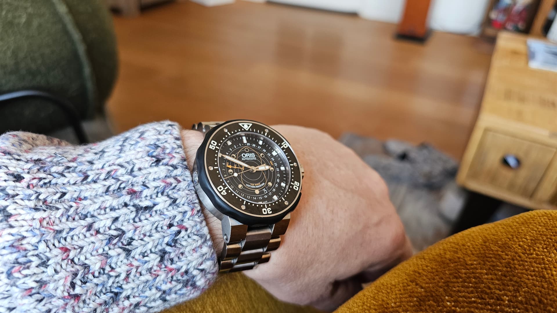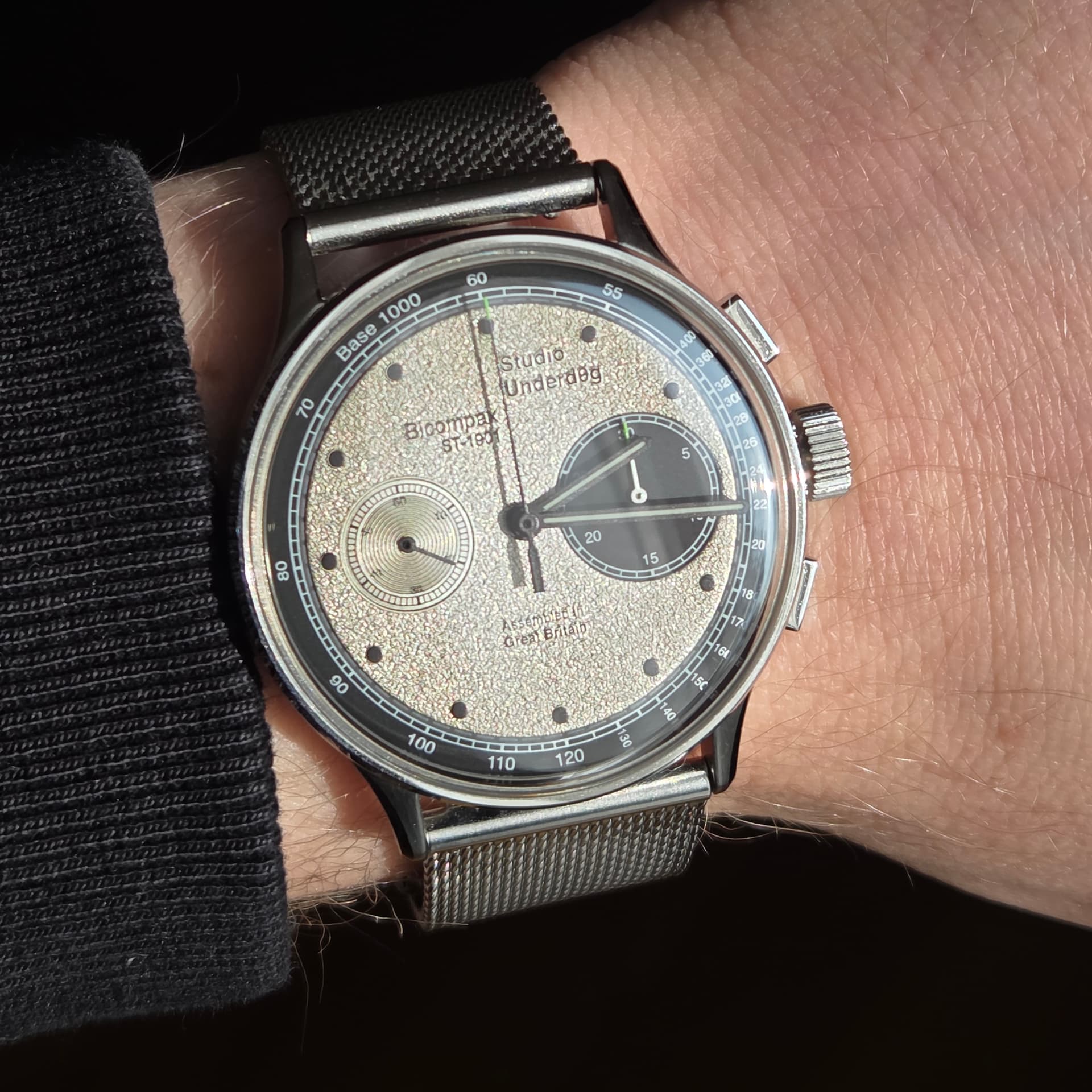 Staat goed die mesh band, blend een beetje in met de kleur van de wijzerplaatâŠ.