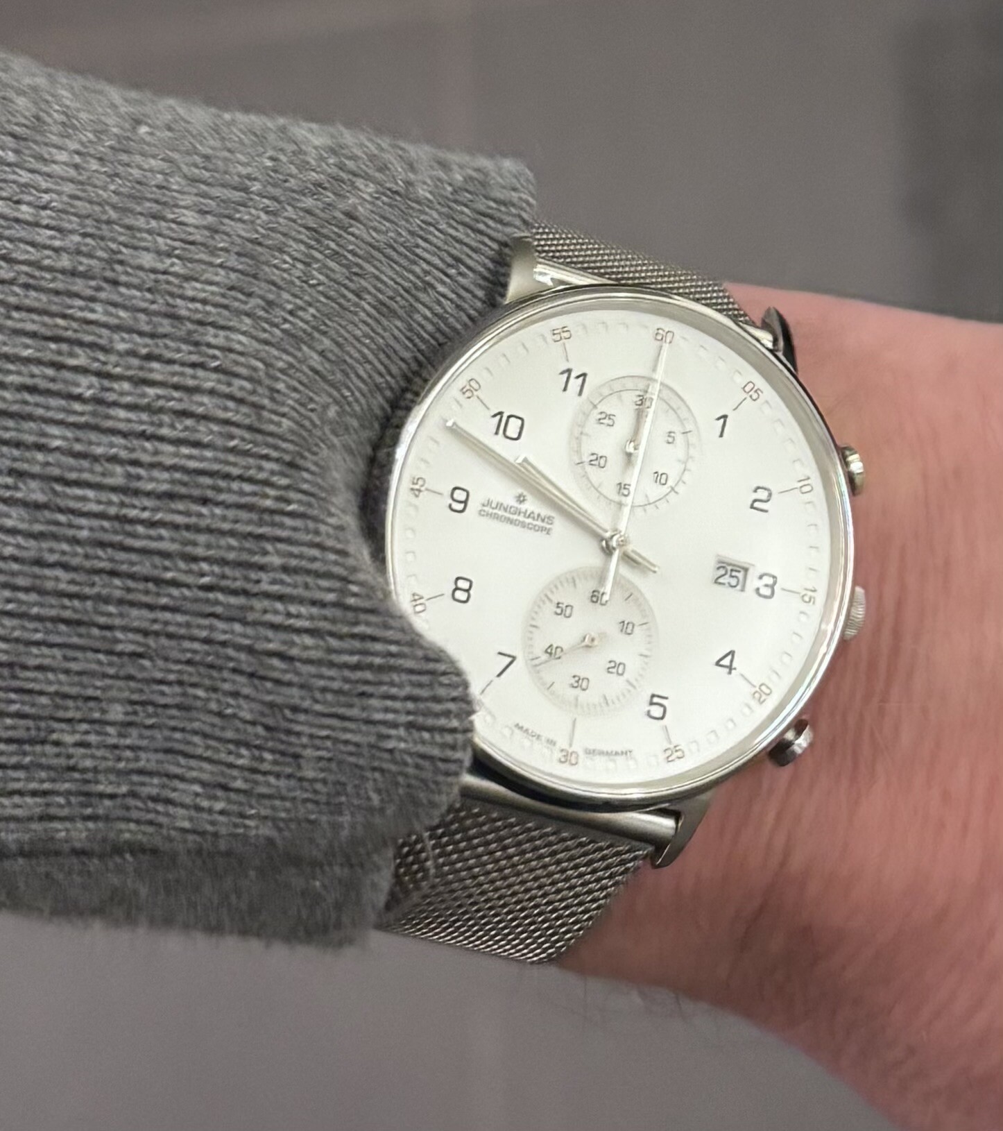 Junghans form C op de Milanese band.