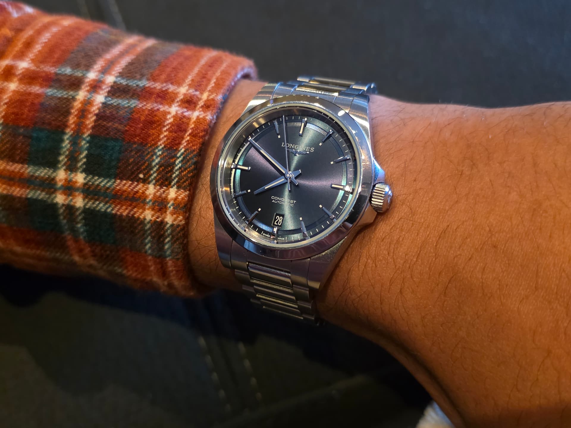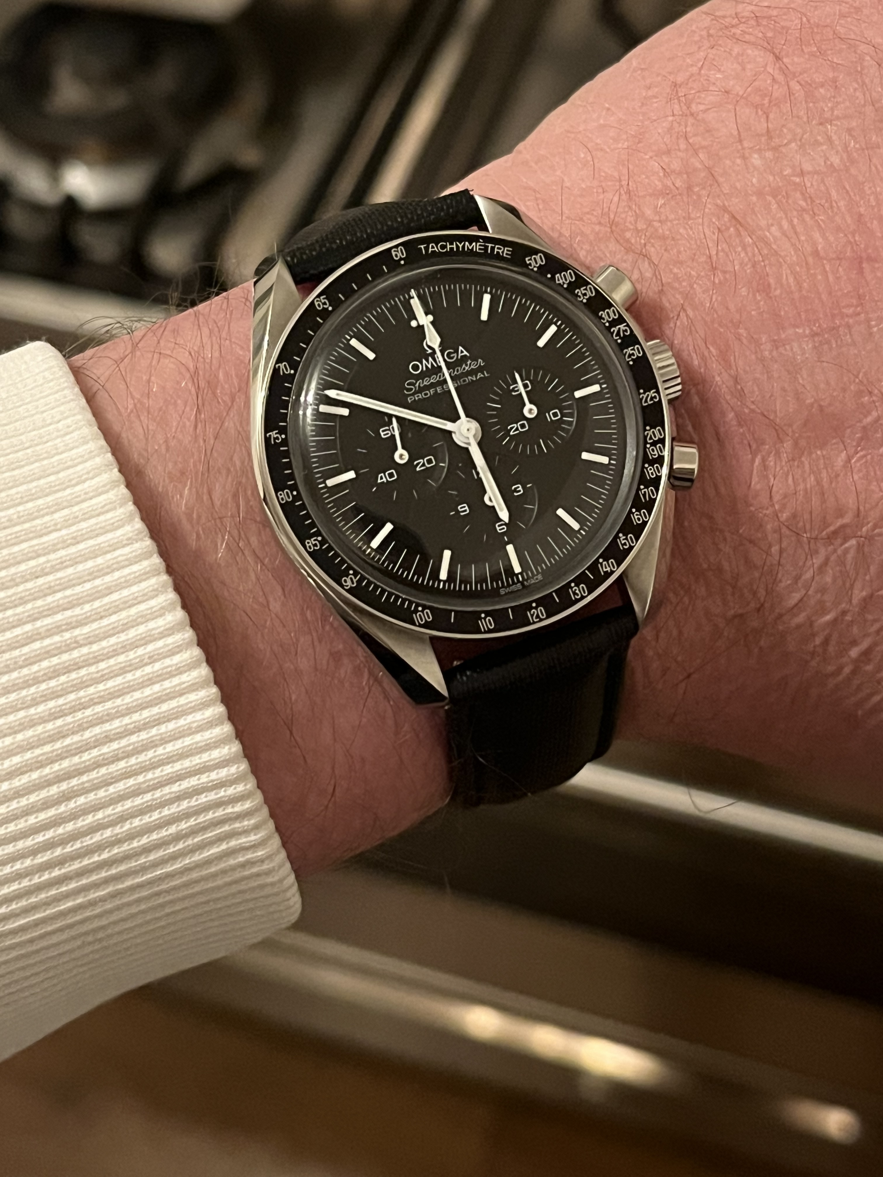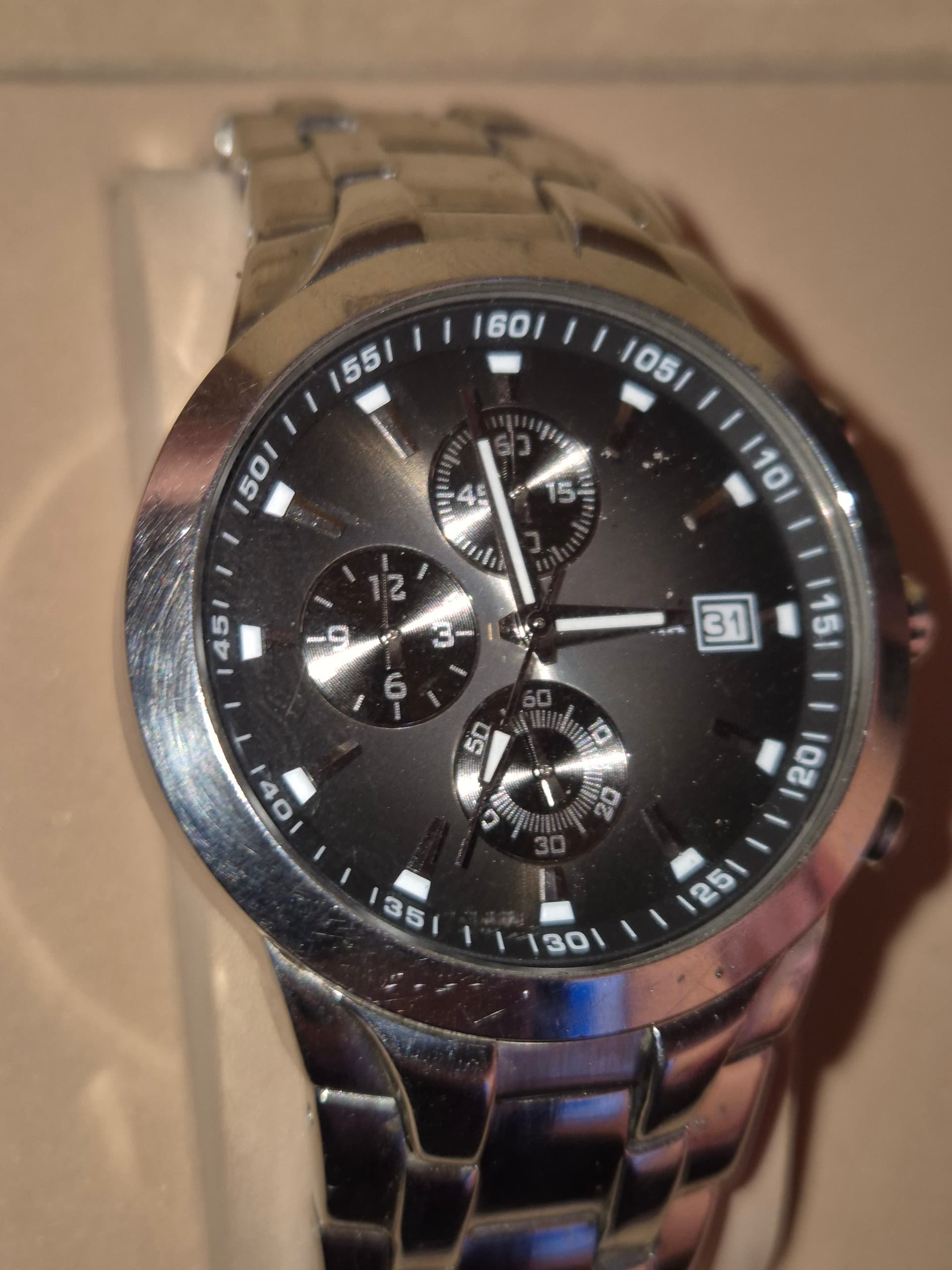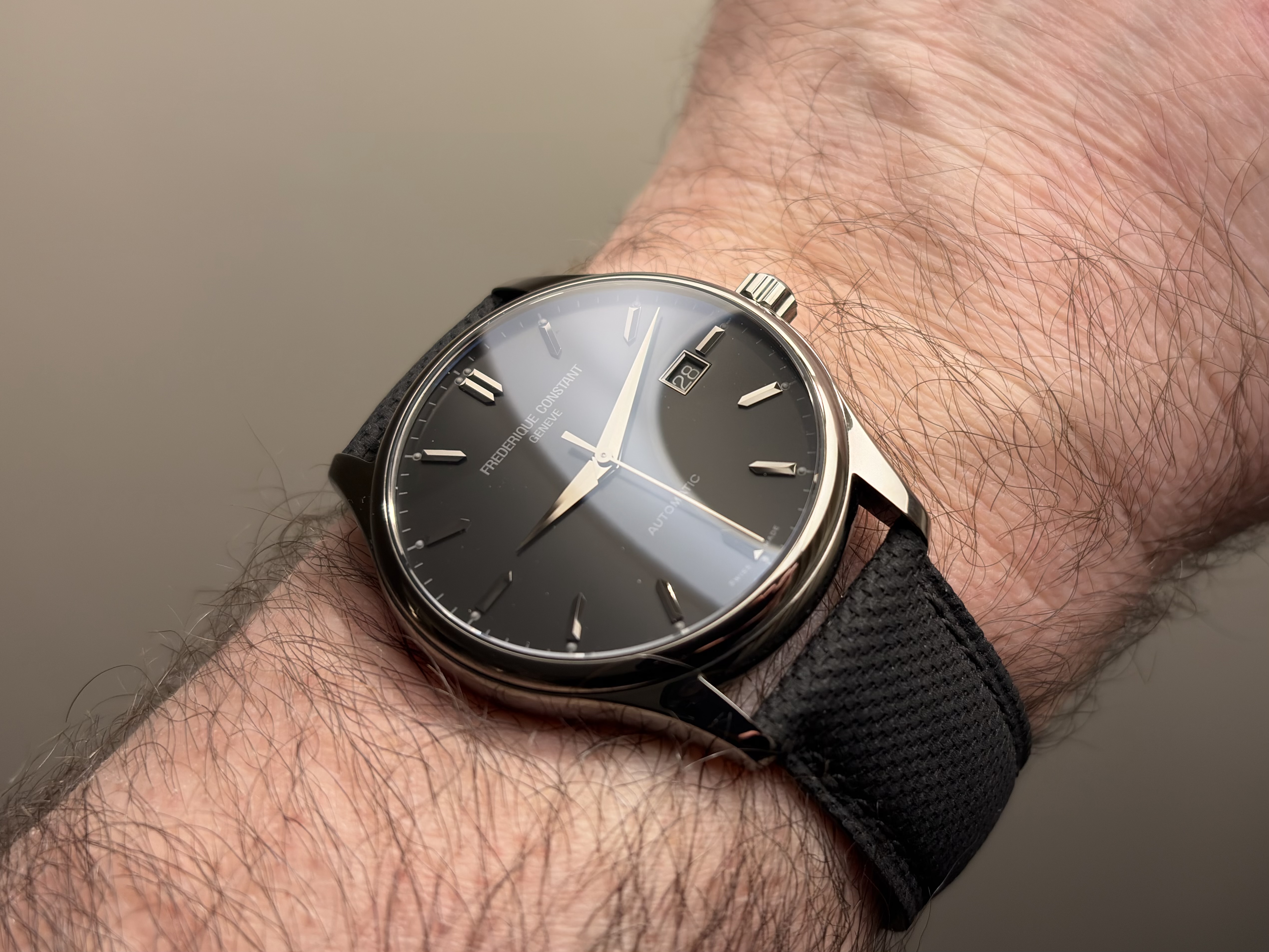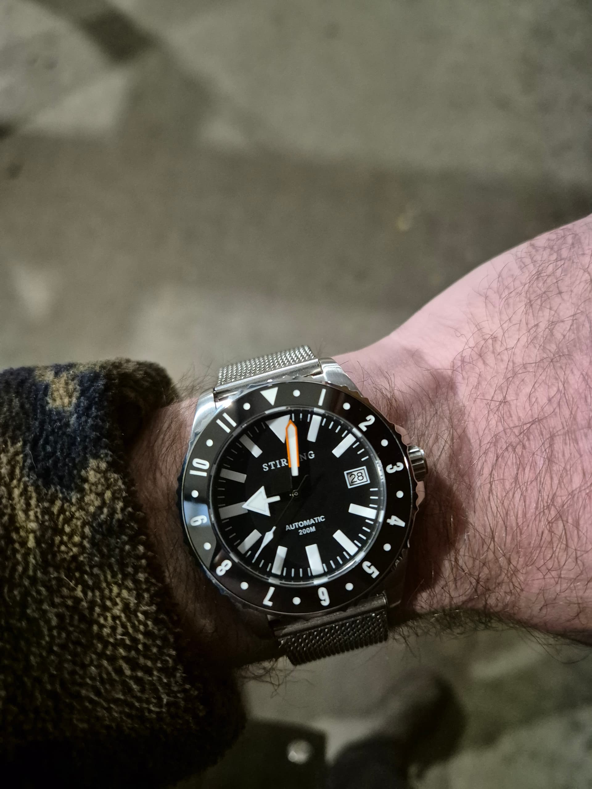 Zwart. Valt een beetje weg, door licht en filter.