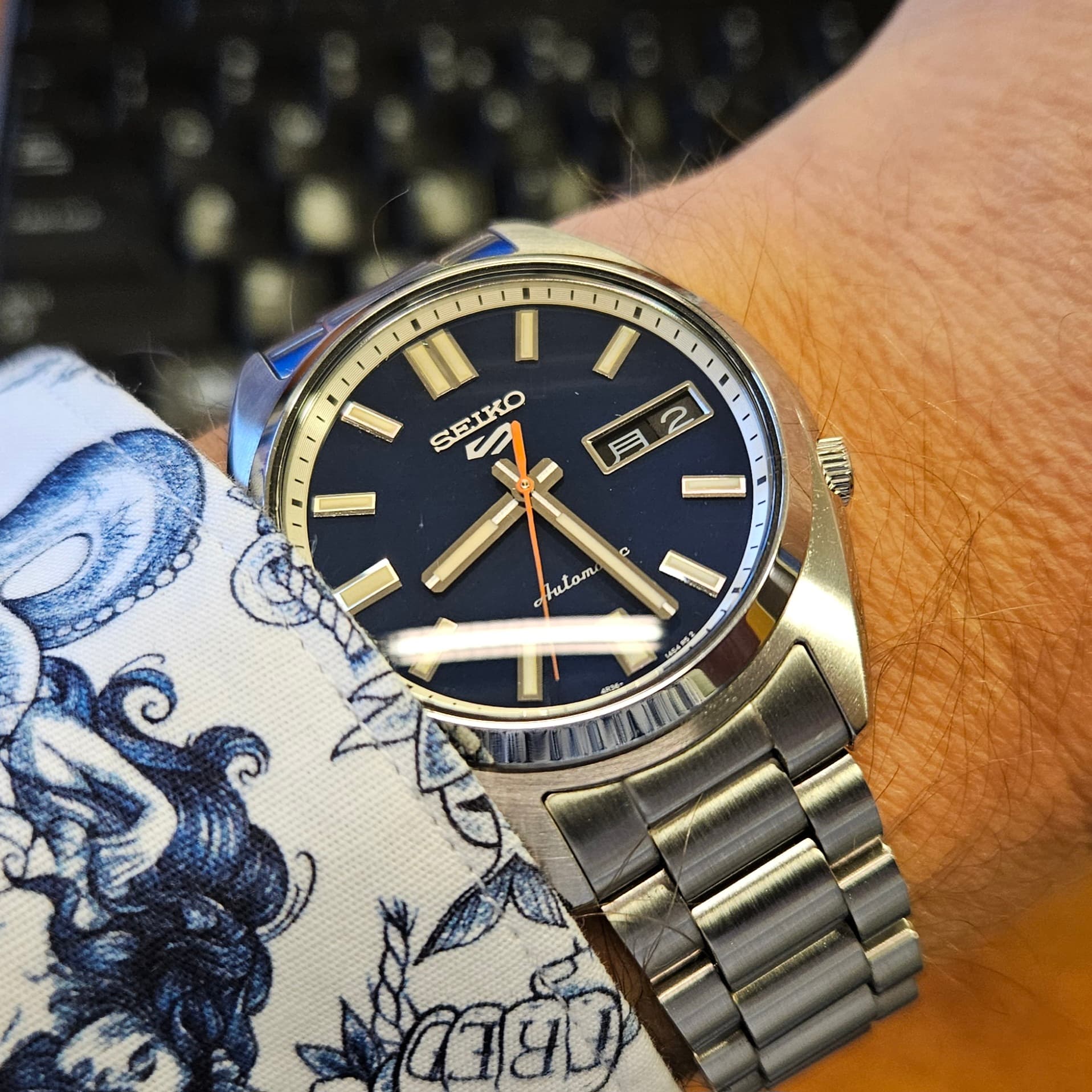 Edit: dit vijfje is verrassend mooi afgewerkt. De zijkanten van de indices zijn afgeschuind en gepolijst, maar de voorkant van de randjes om de lume zijn iriserend, en kunnen in alle kleuren oplichten, heel bijzonder!
