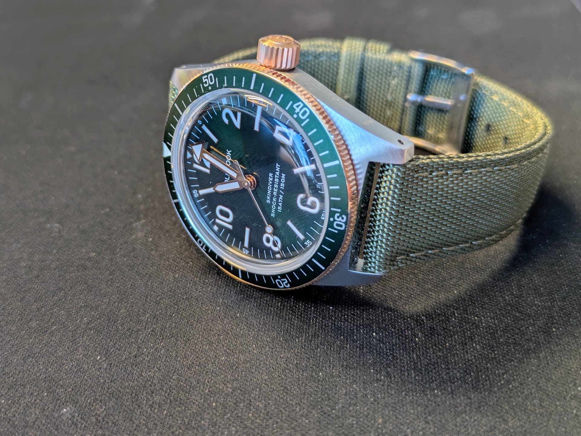 Ik vind dit een erg fijn horloge. Met 40mm doorsnede en een dikte van 13mm draagt hij nog lekker compact voor een duiker. Saffierglas er in, miyota werkpaardje erin met 60 uur gangreserve… wat wil je nog meer?