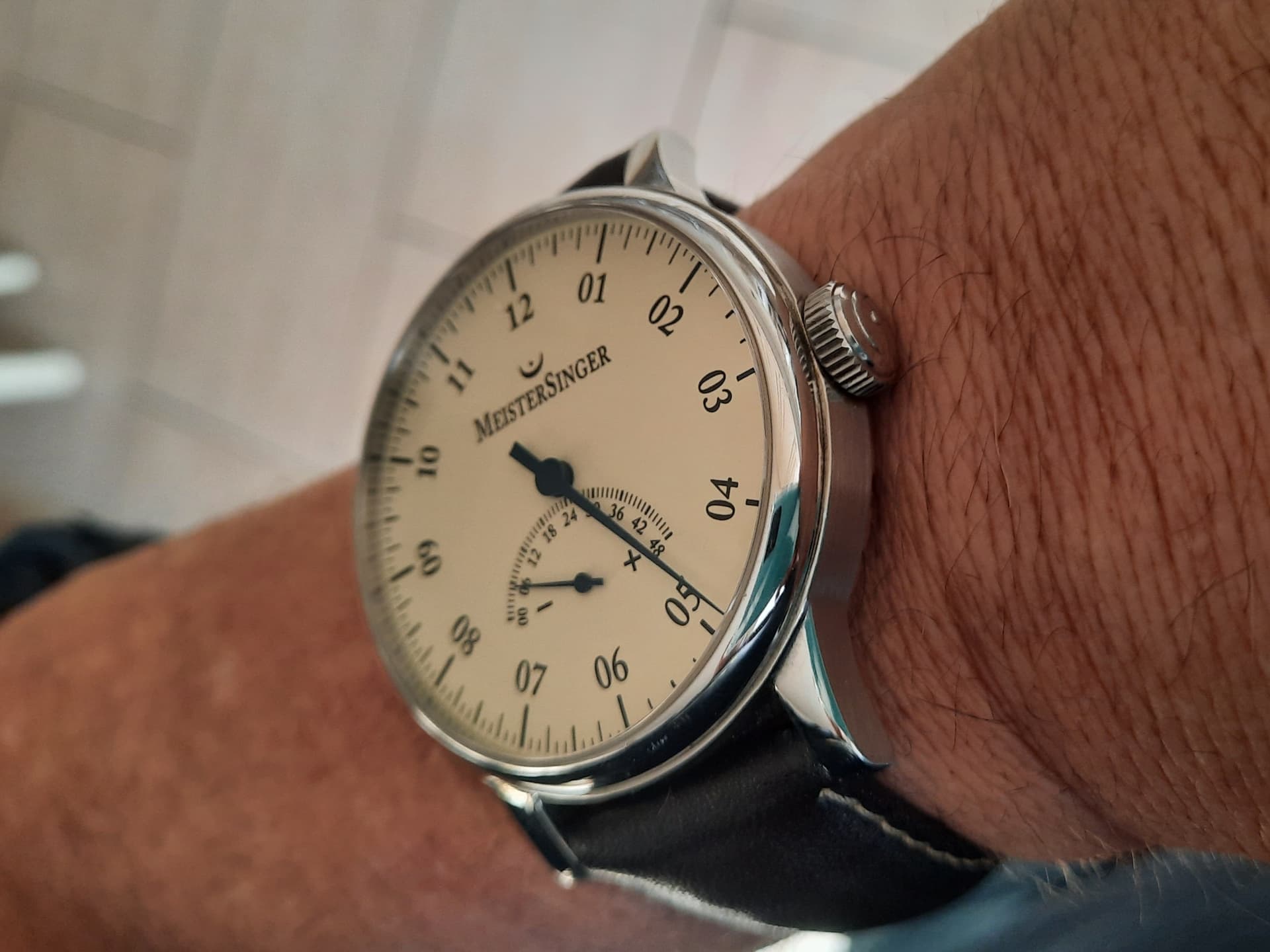 Wissel naar het horloge waar de ‘gekte’ 14 jaar geleden mee begon. De MeisterSinger Unomatik.