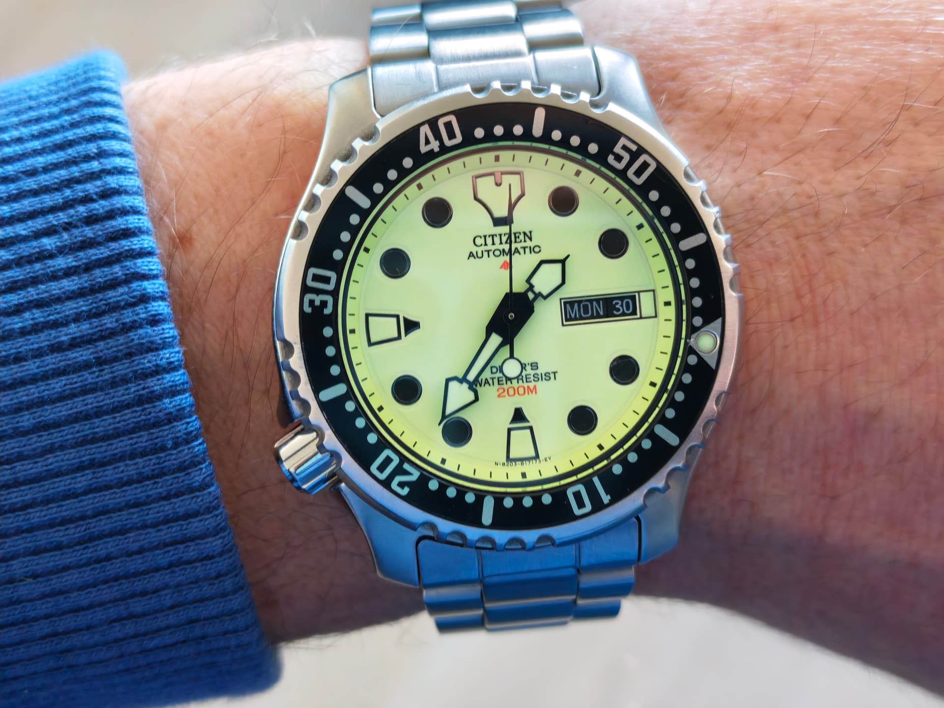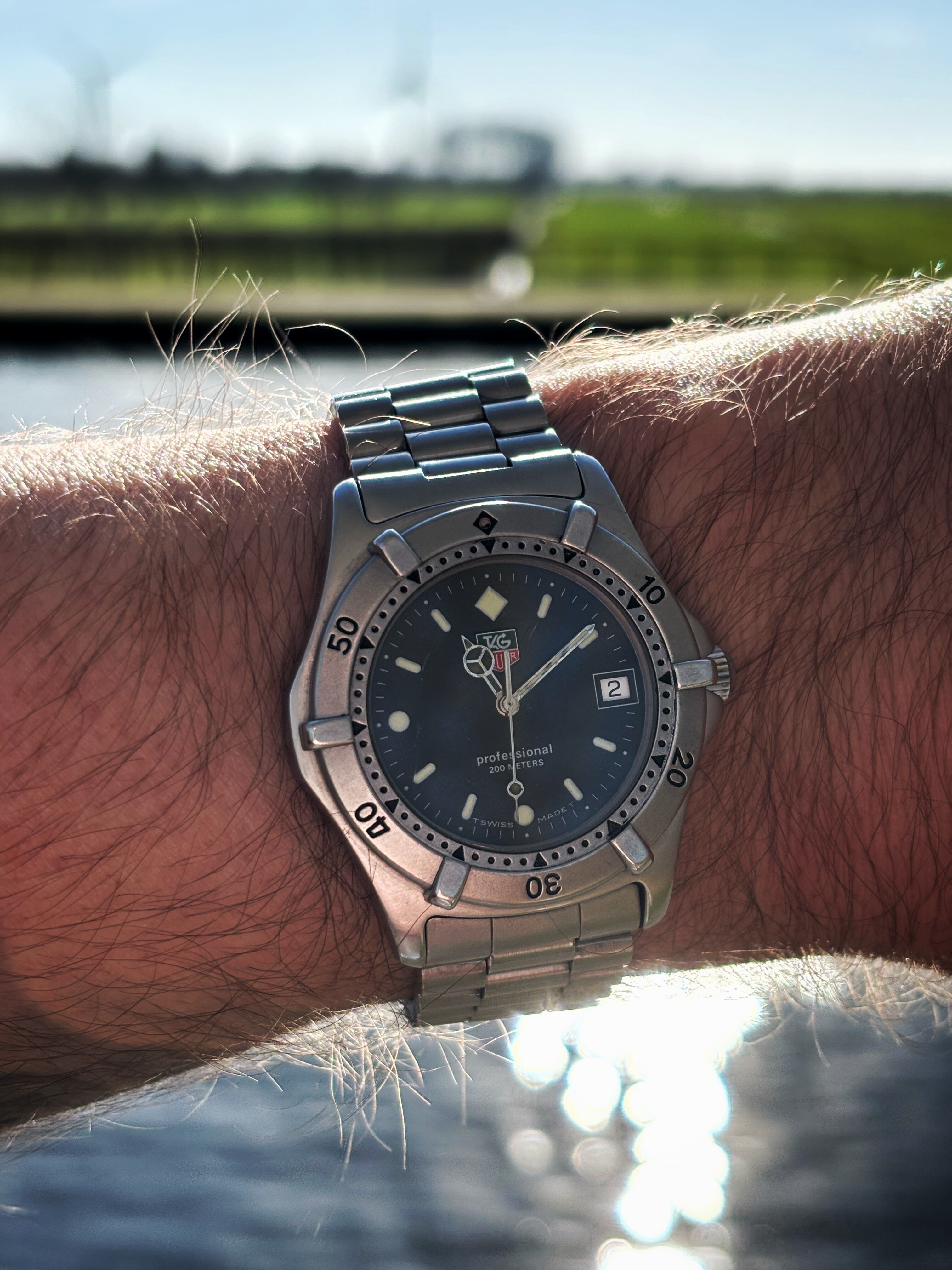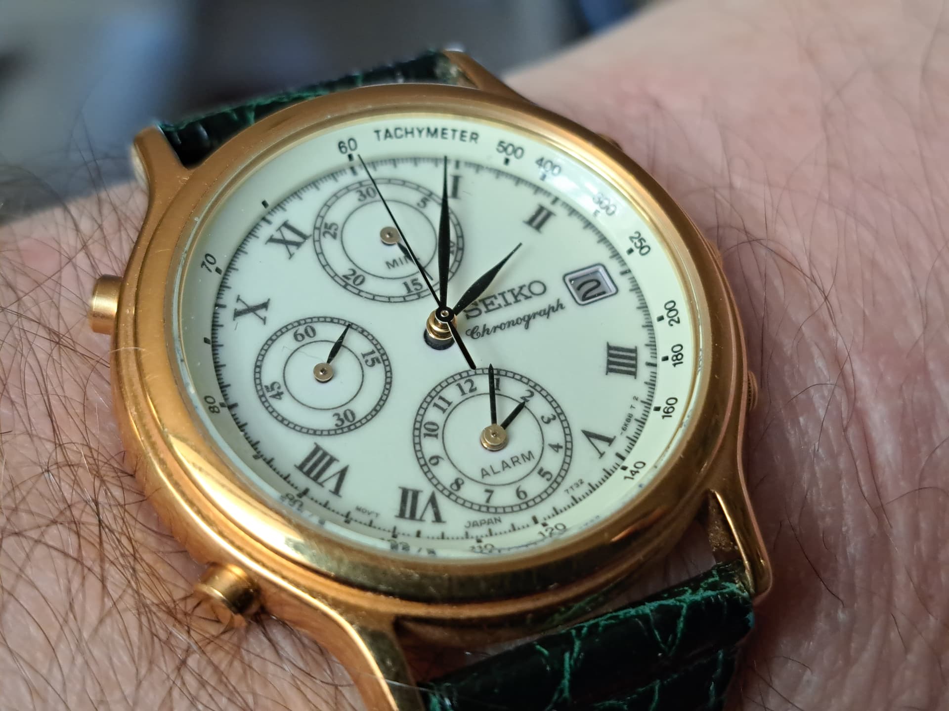 De Monaco die géén Heuer is, een 7016-5000, automaat, dag en datum beide met een quickset functie, flyback chrono, een alleskunner en dat al in 1972!