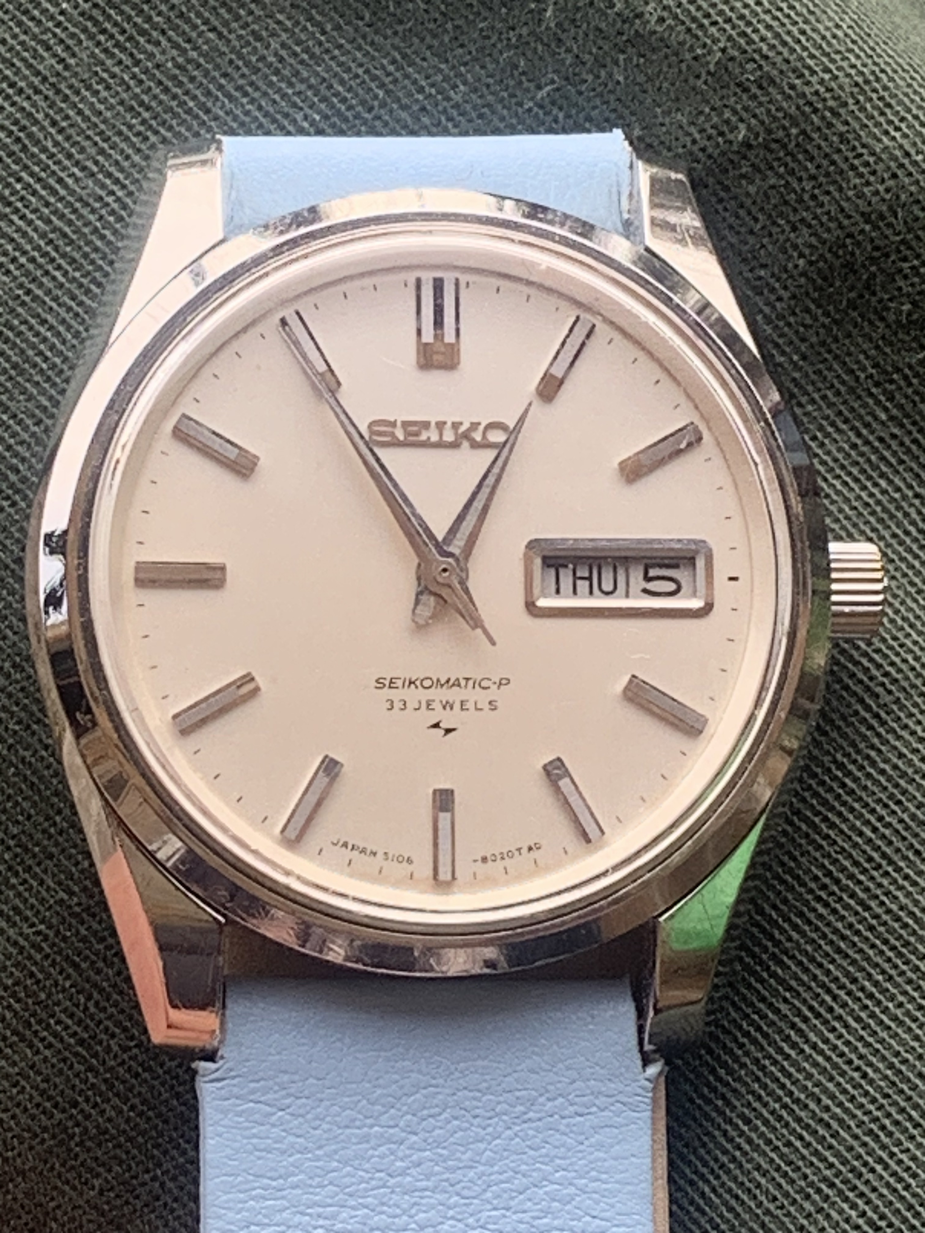 Nog steeds in mijn nopjes met deze in uitstekende staat verkerende 5106-8010 Seikomatic-P uit juli 1967.