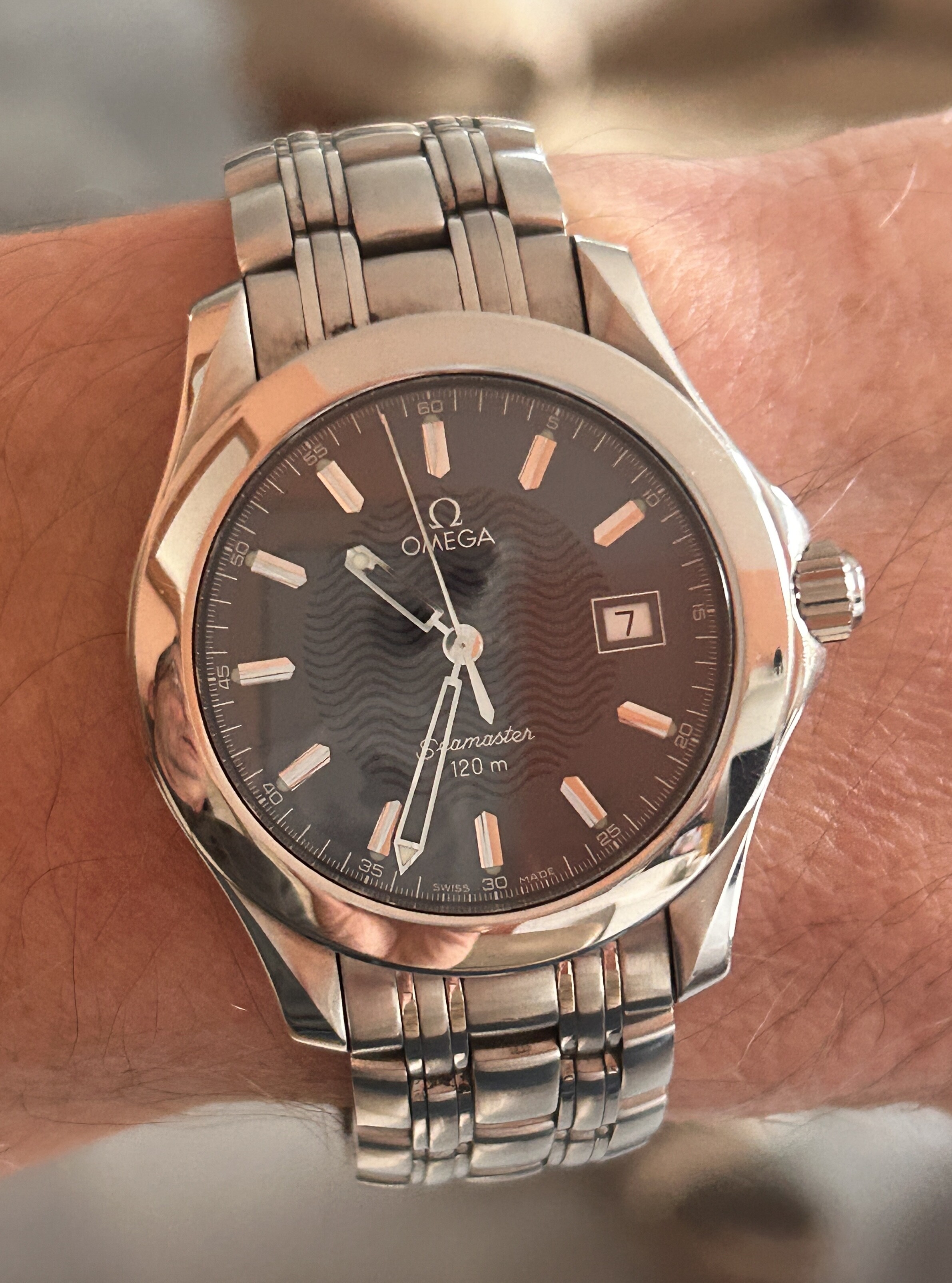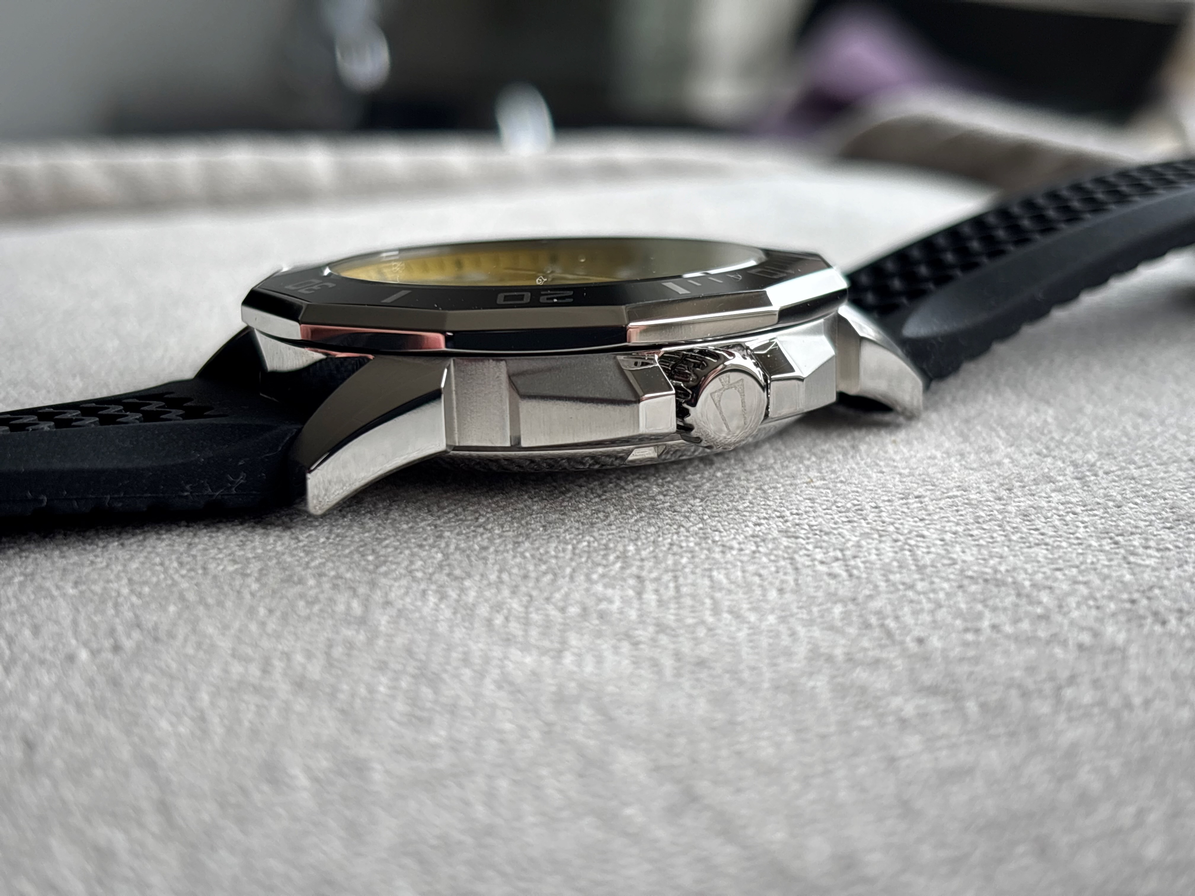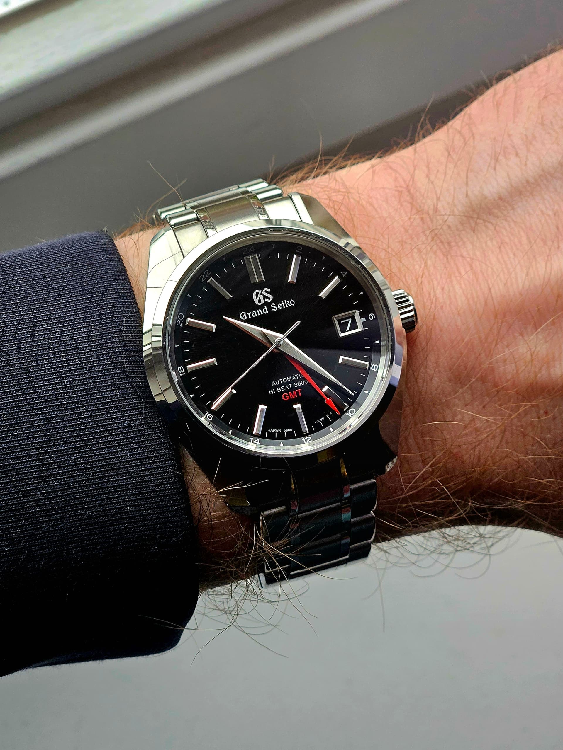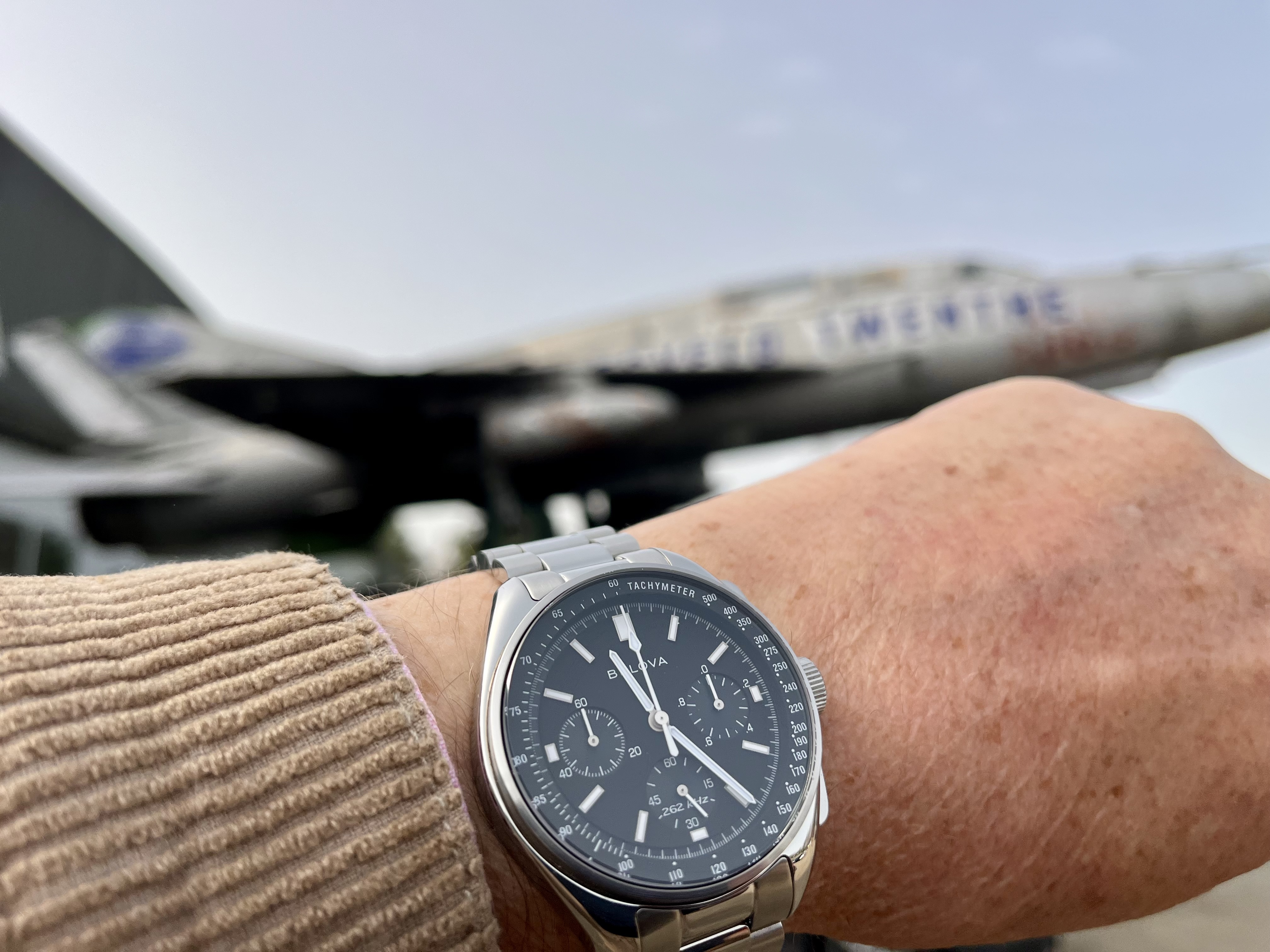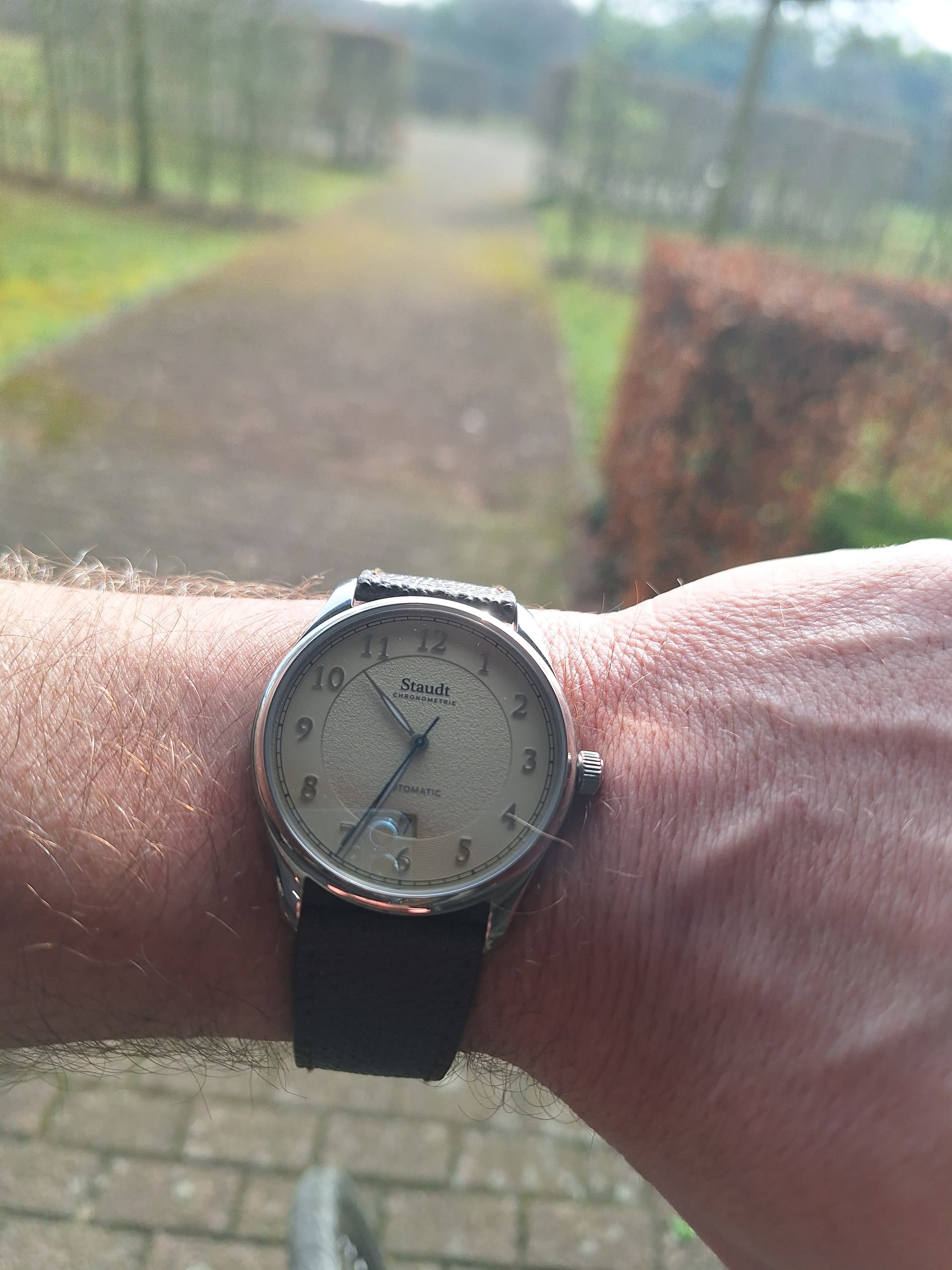 3 verschillende soorten afwerking op de kast, brutalist hoeken en 5 soorten fonts op de wijzerplaat. En dan die serene secondewijzer, zwevend over de wijzerplaat. Erg leuk die tegenstrijdigheid.