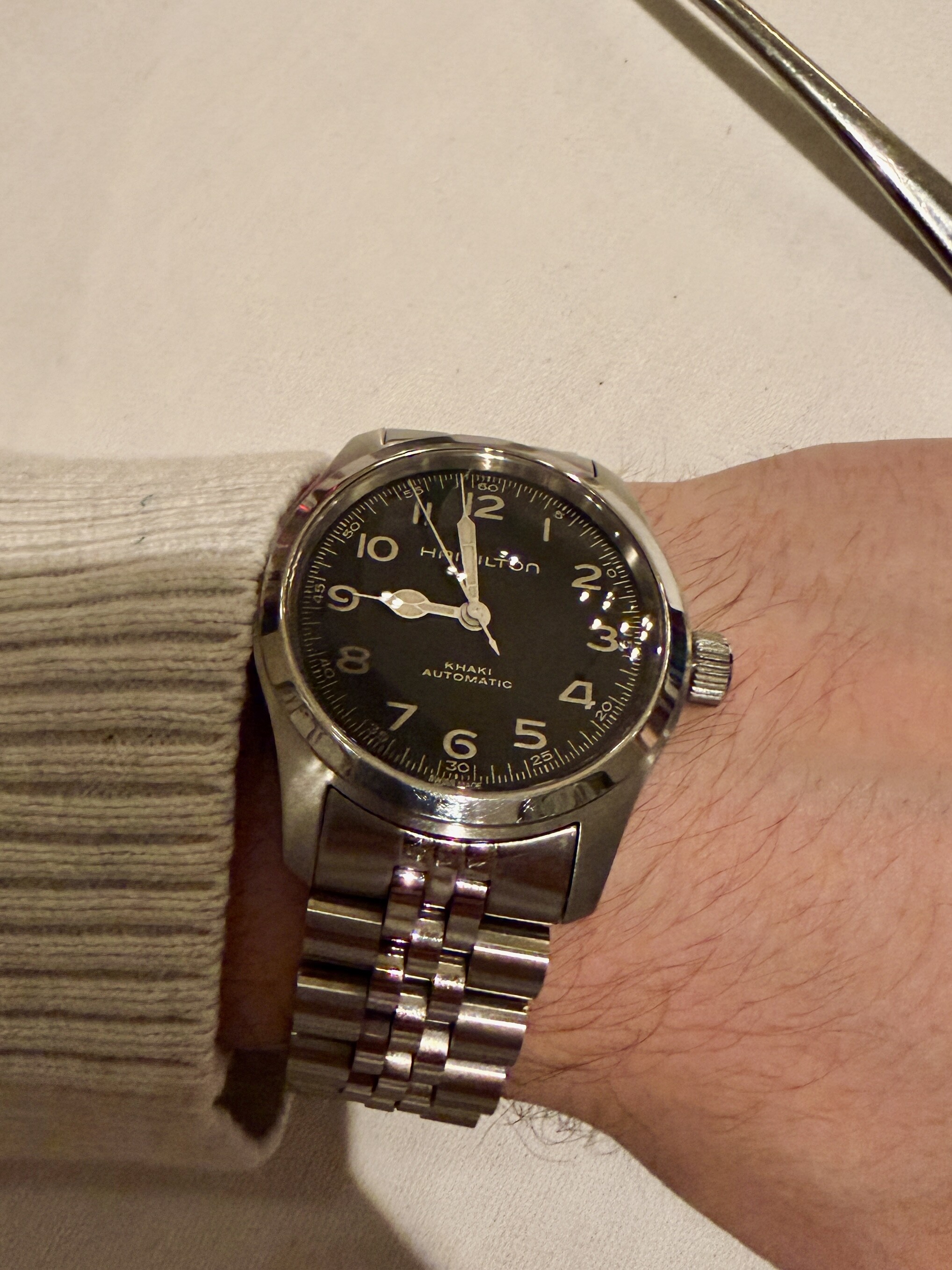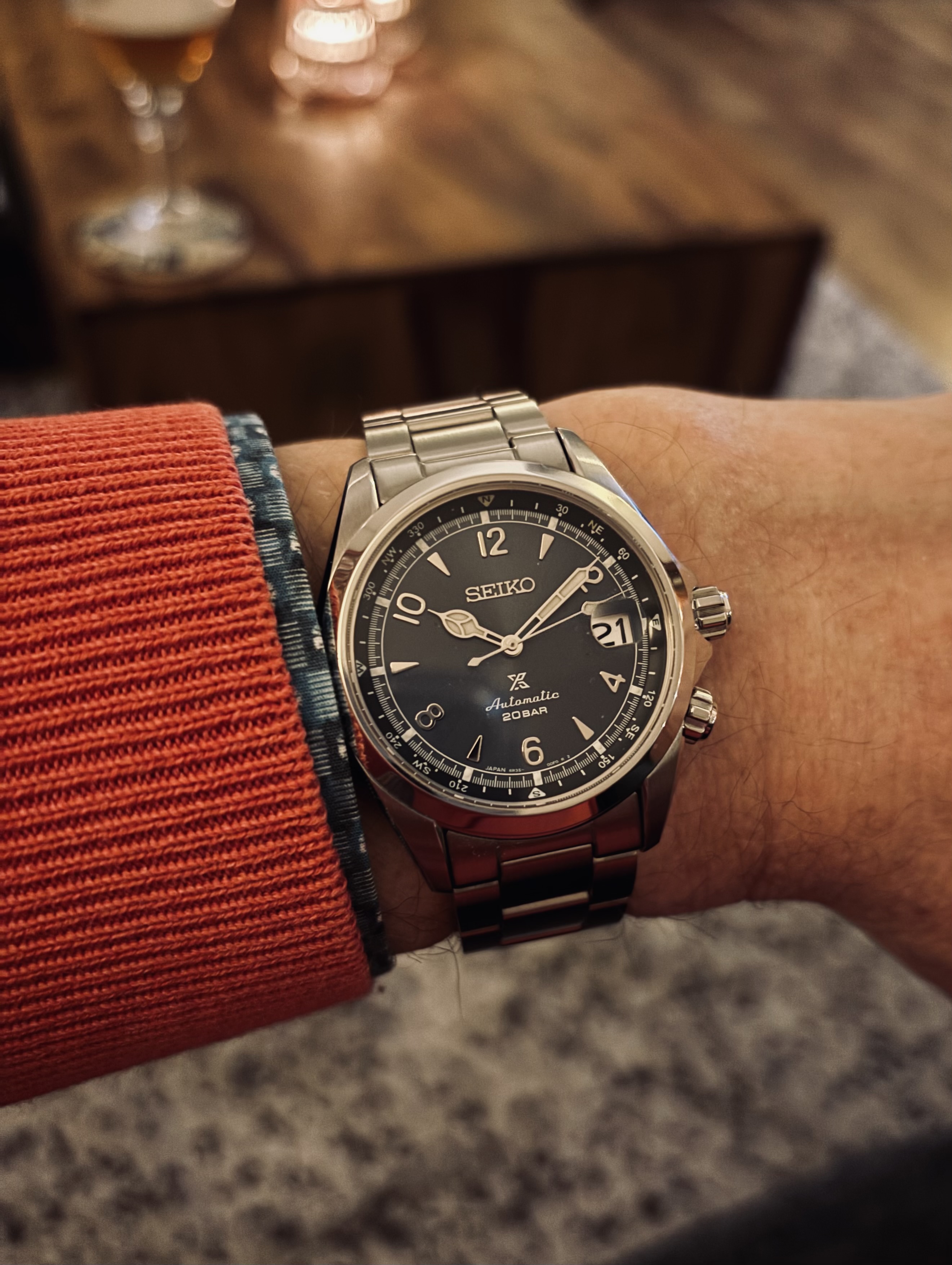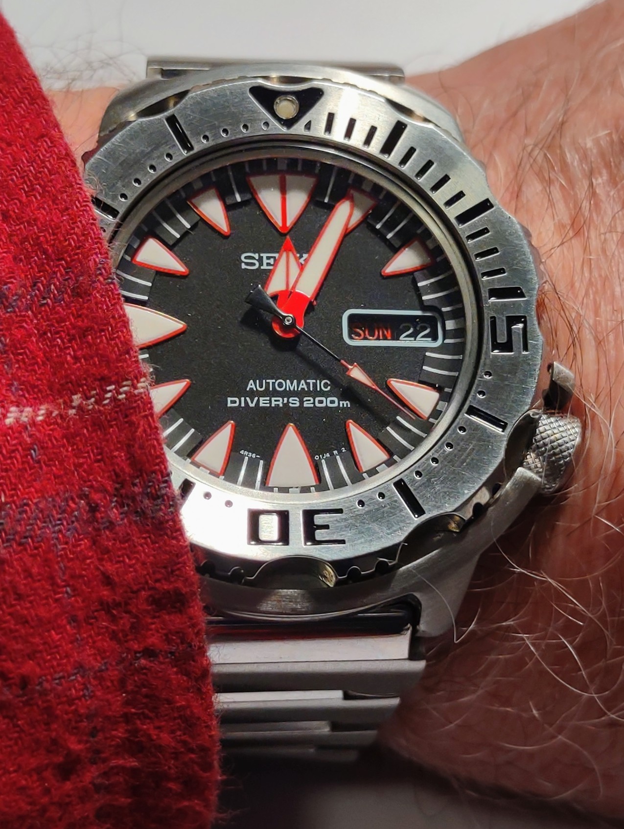 Pontiac Hydraulica 20 met de kenmerkende EPSA Super Compressor kast met dubbele kronen deze keer niet “cross-hatched” maar met de sterretje en de tekst “Pontiac”, hoog acrylglas met de Pontiac P erin gegraveerd. Ongepolijste vlijmscherpe kast, leuk blokje op de secondenwijzer, lekkere vanille tritium lume en een fijne ETA automaat binnenin.