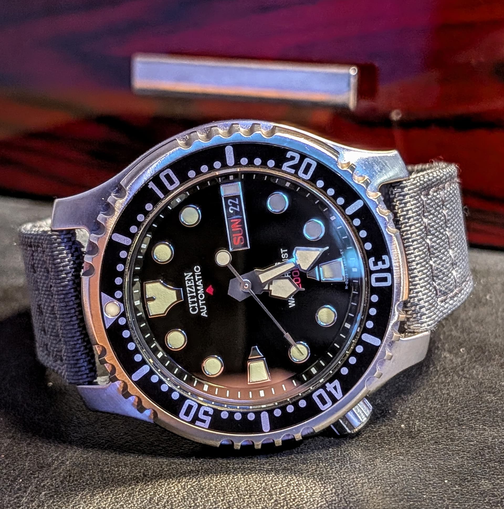 Binnenkort eens goed zoeken naar een fatsoenlijke bracelet en een dunnere caseback (want kijk hoe hij zit van opzij