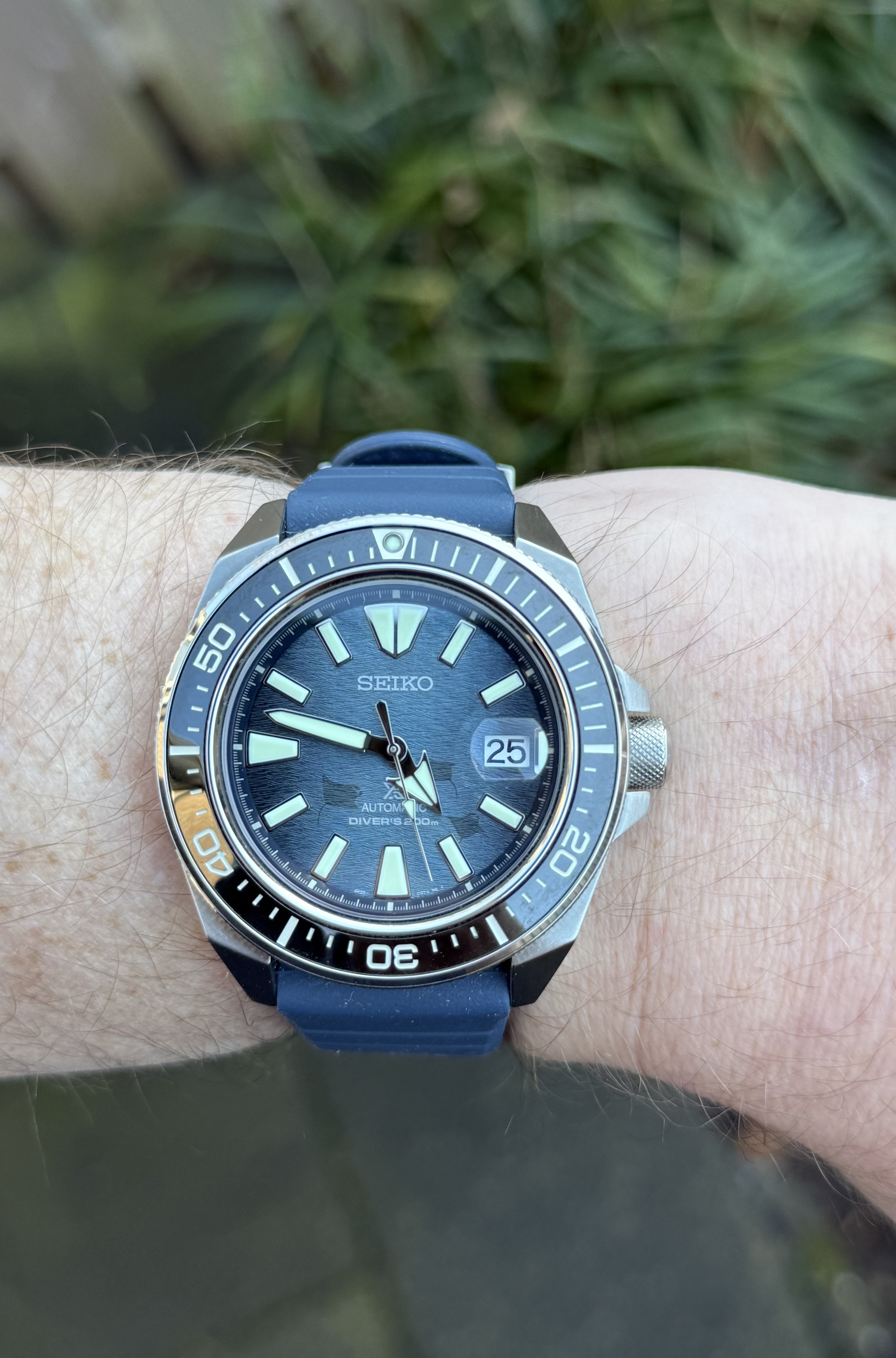 De SRPK22 (USA markt) met koffiekleurige wijzerplaat, bijna zwart maar in de zon toch niet. ![]()