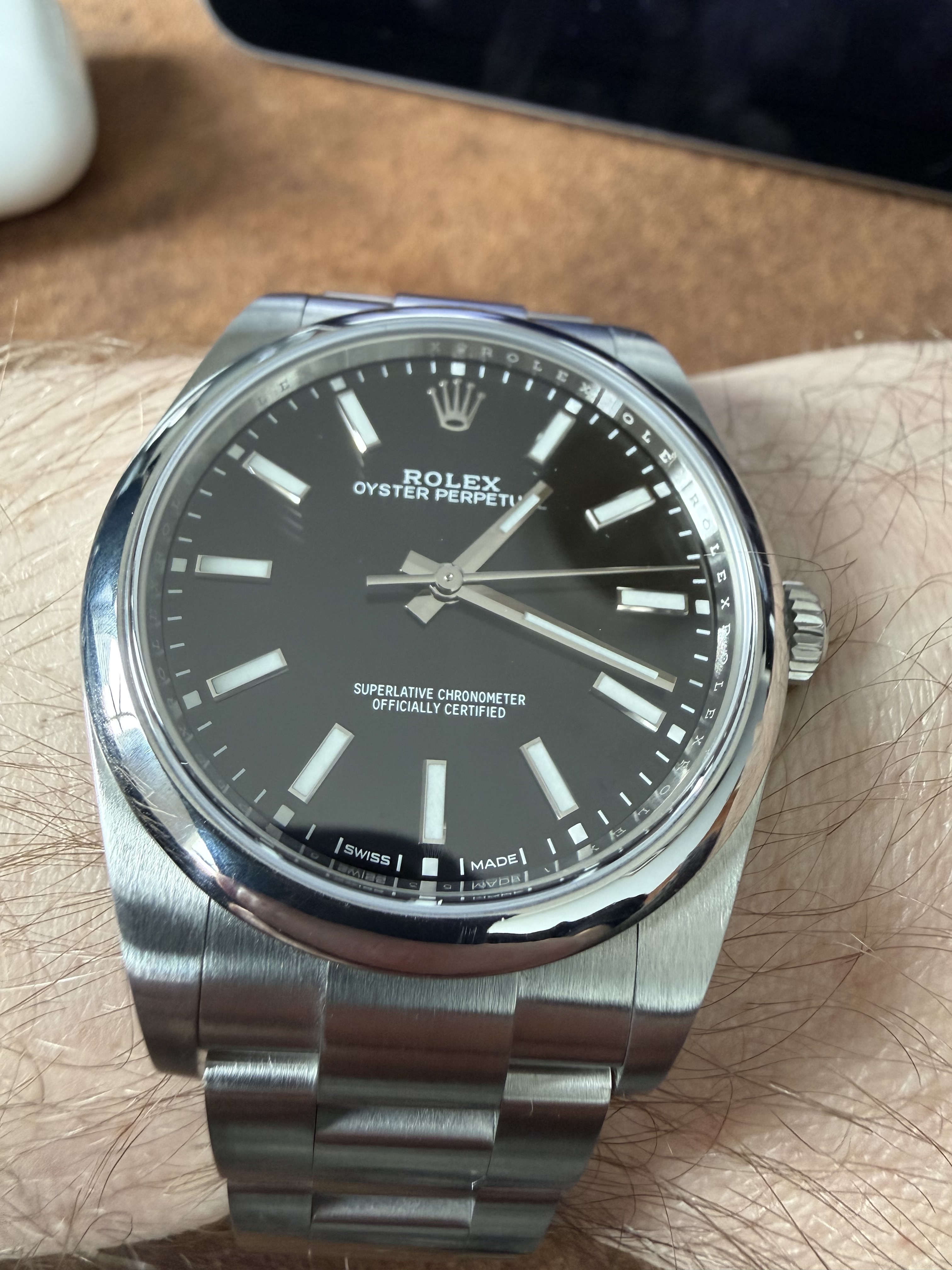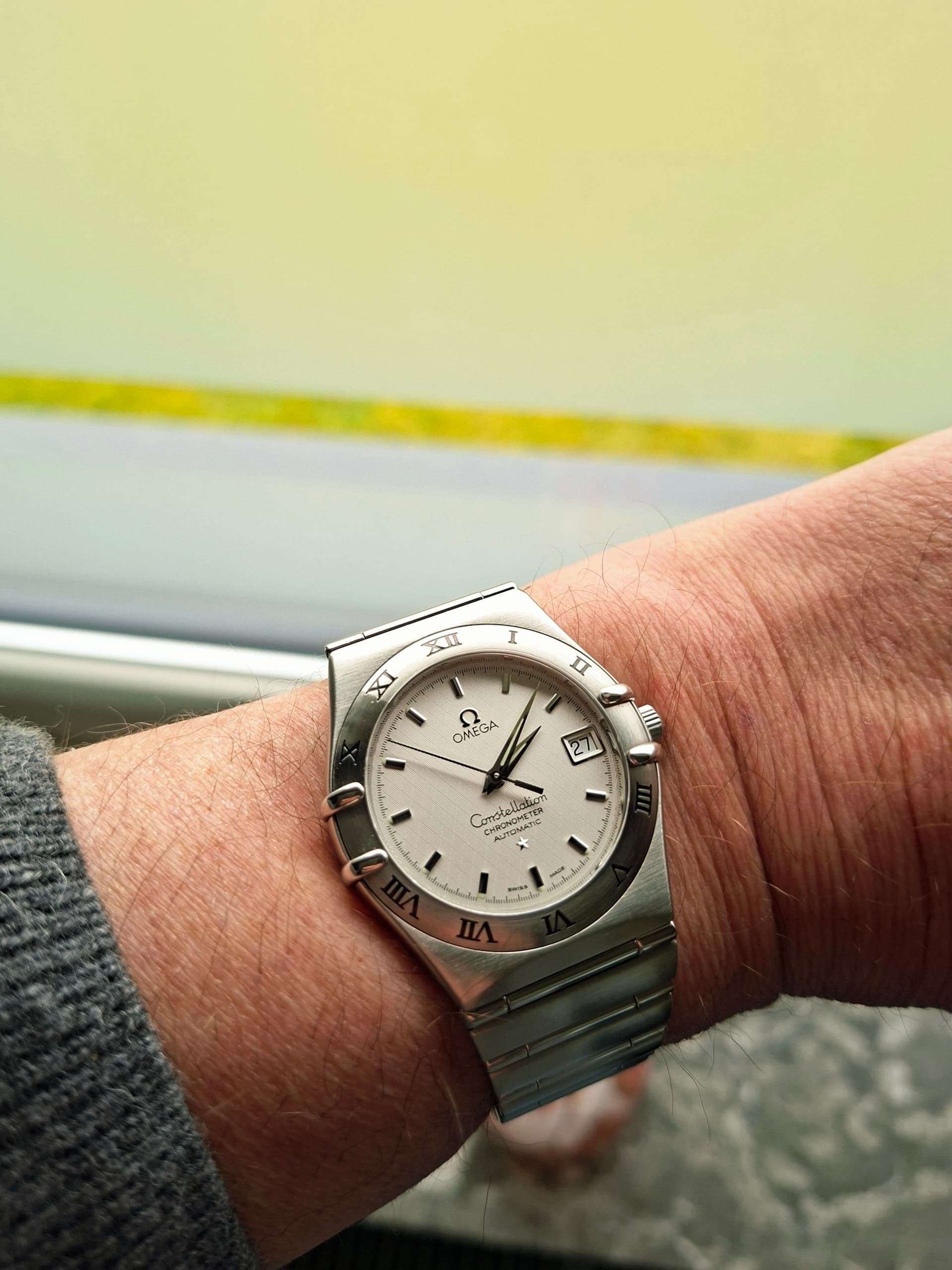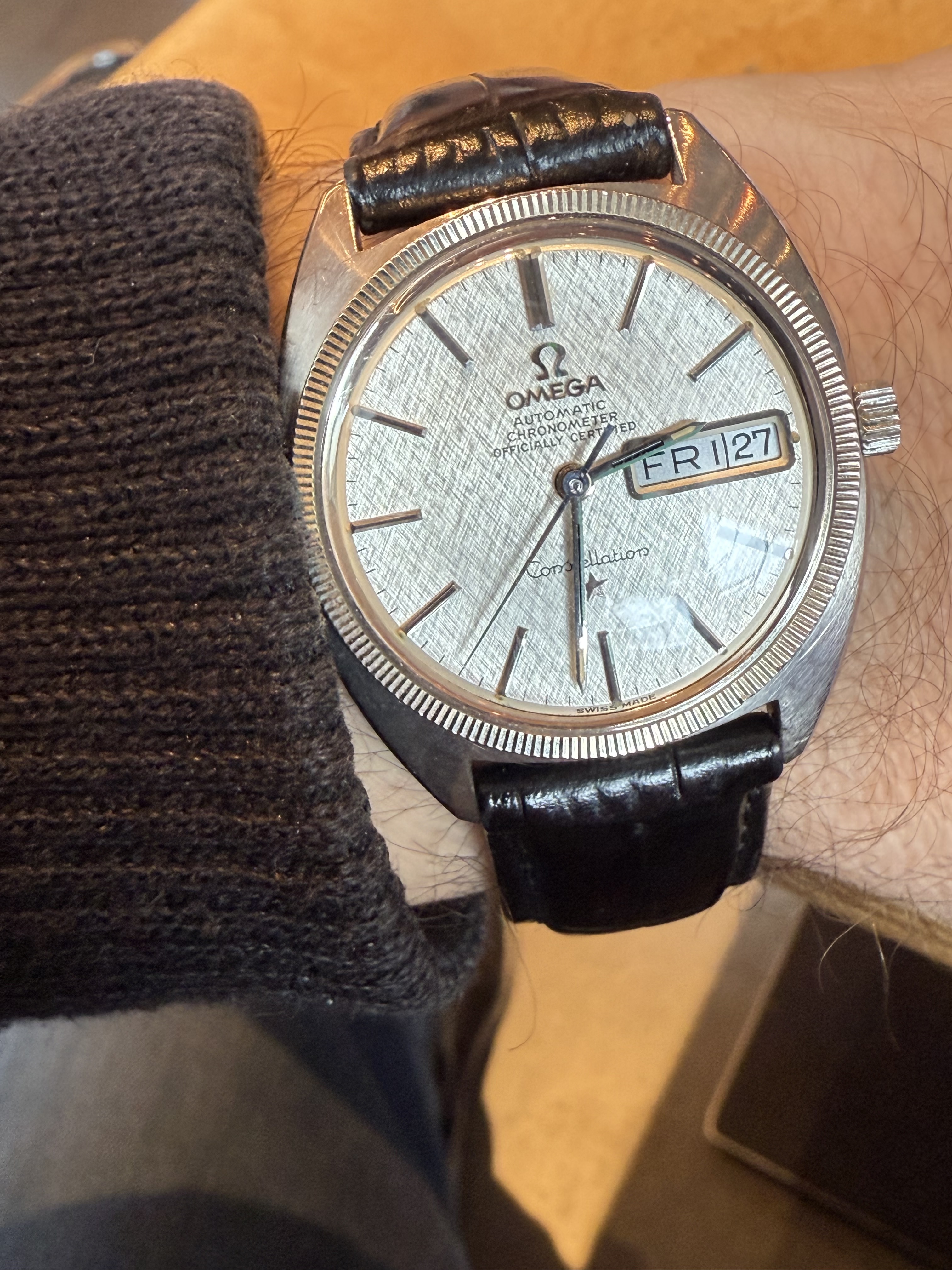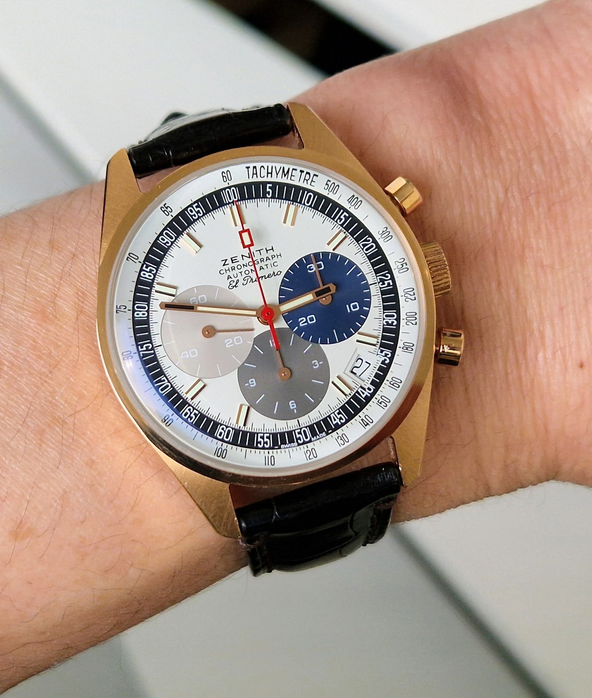 En de gebolde rand van het glas, met de gebolde wijzerplaat voor de tachymeterschaal is wat mij betreft het mooiste detail.